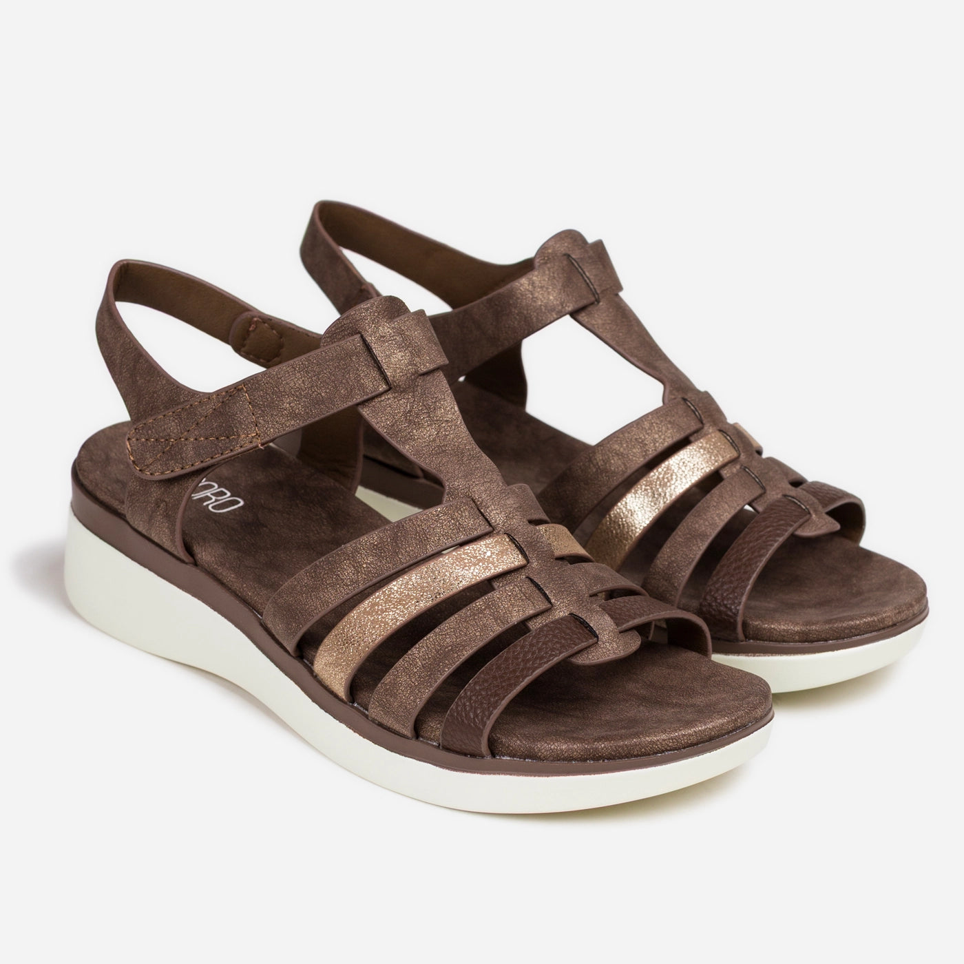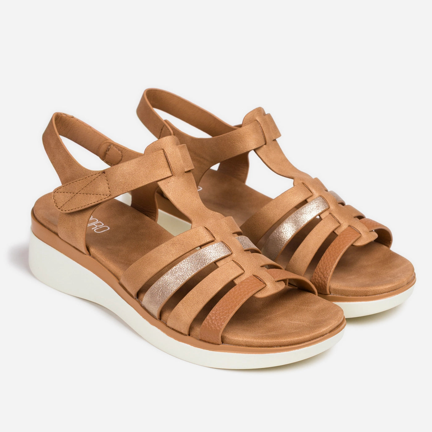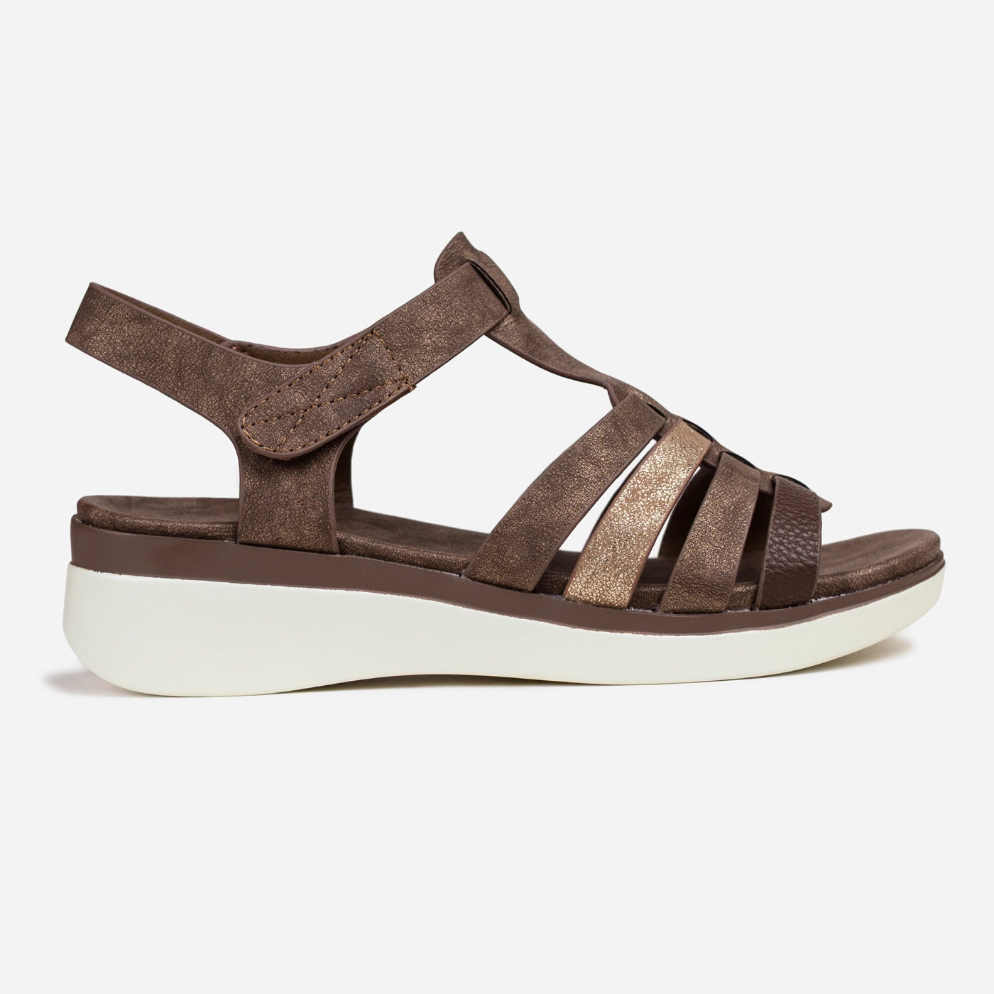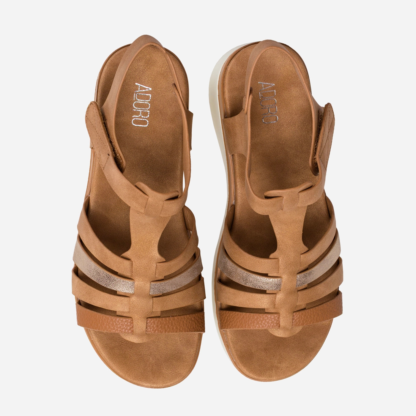- Design: Gladiator-inspired strappy sandal with adjustable hook-and-loop closures
