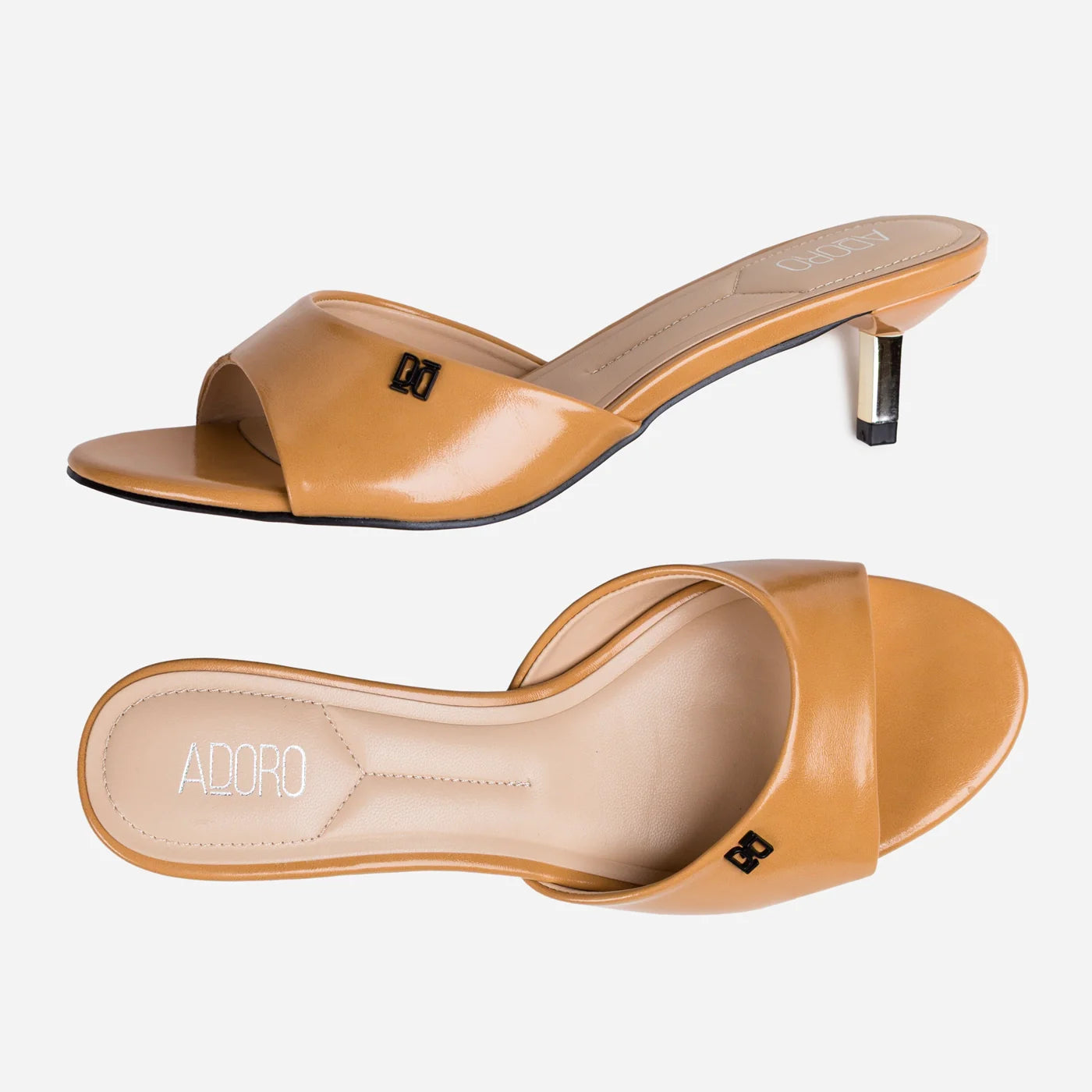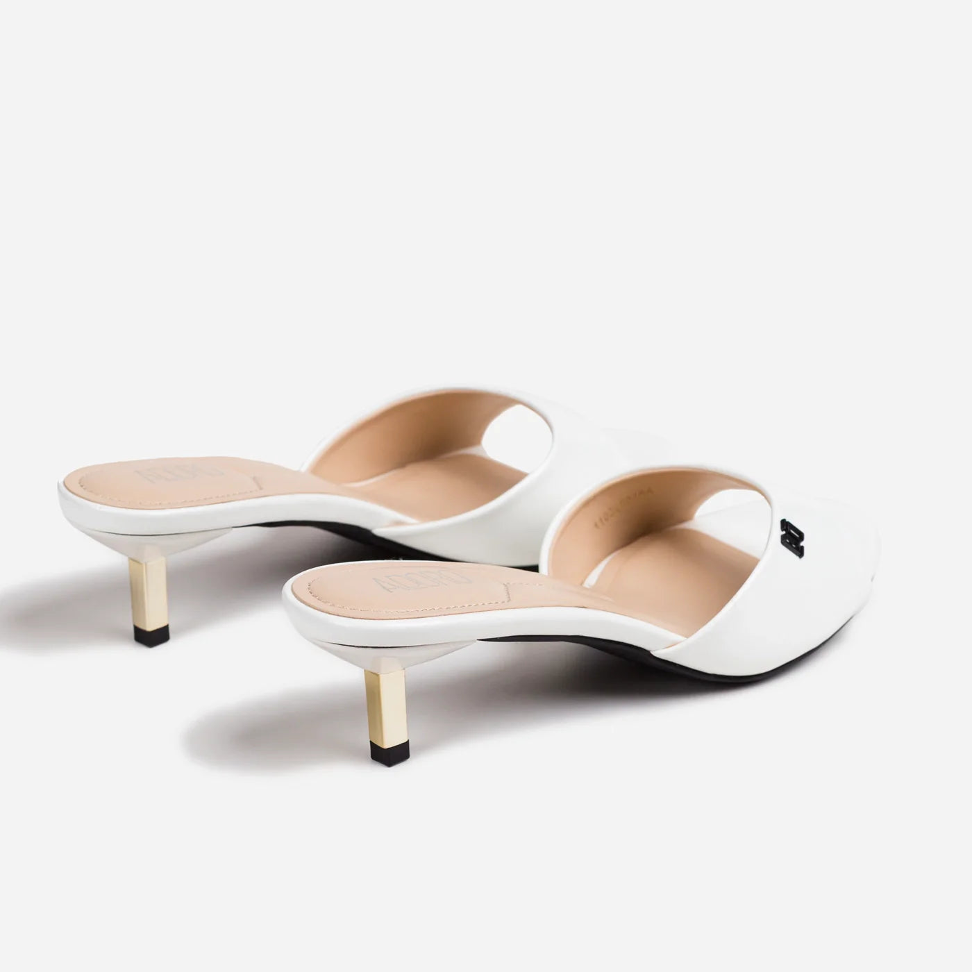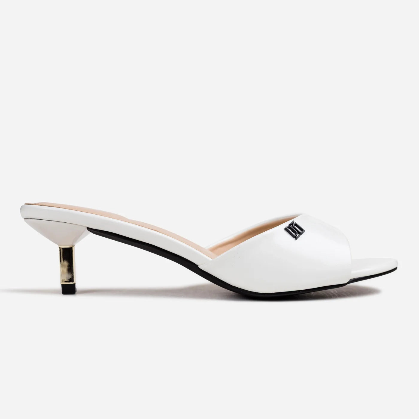 Minimalist sophistication in a sleek kitten heel silhouette. This piece features smooth construction with subtle logo hardware accent creating refined modern appeal. The slip-on design offers effortless wear, while the cushioned footbed ensures all-day comfort. Low kitten heel provides subtle elevation with stability and refined walkability.
