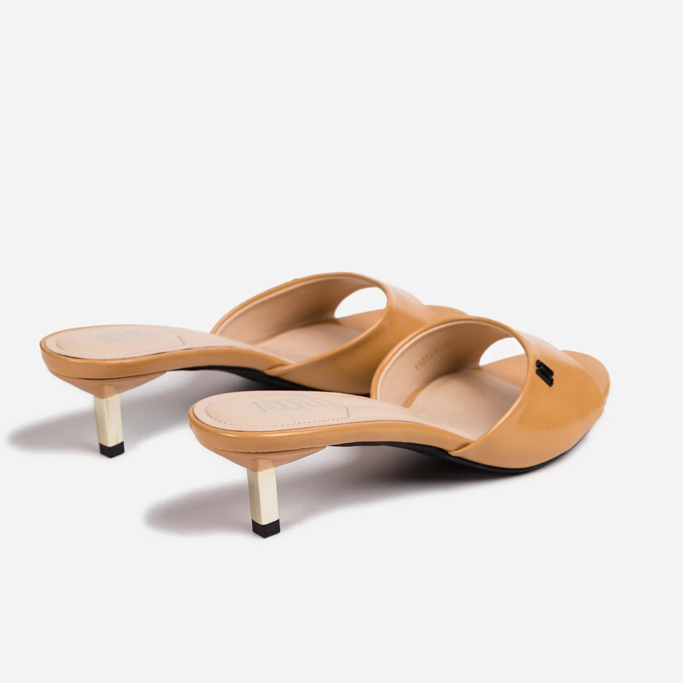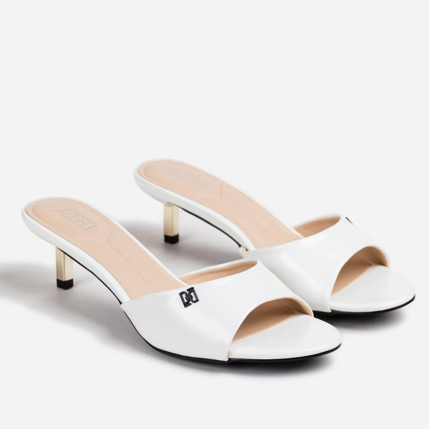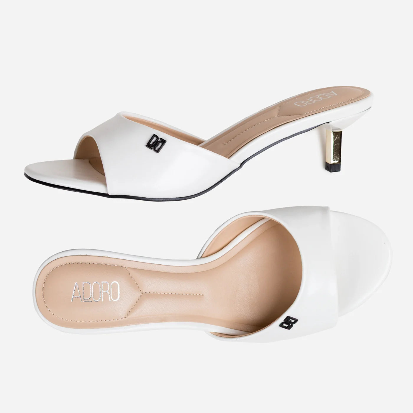 - Design: Minimalist silhouette with logo hardware accent and low kitten heel