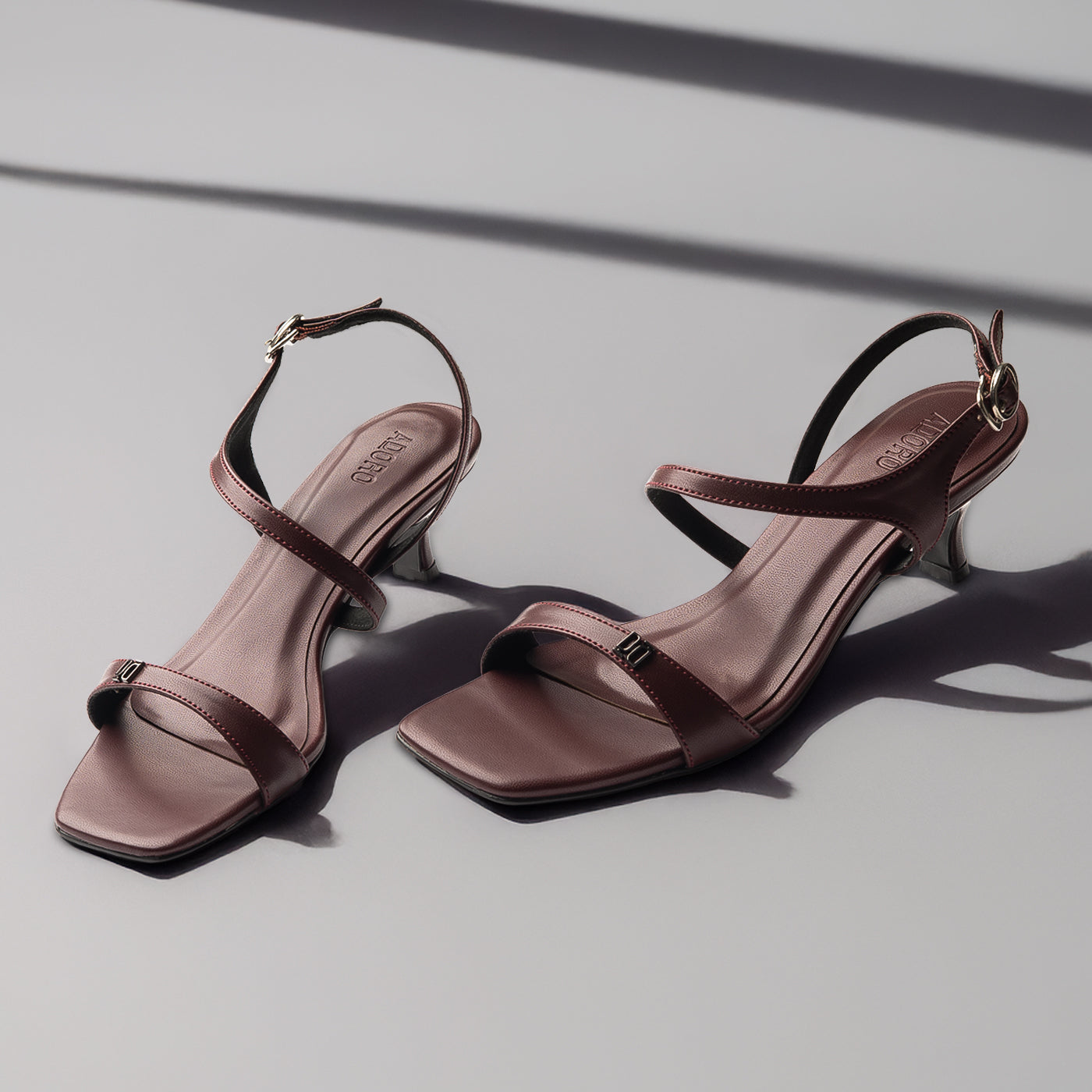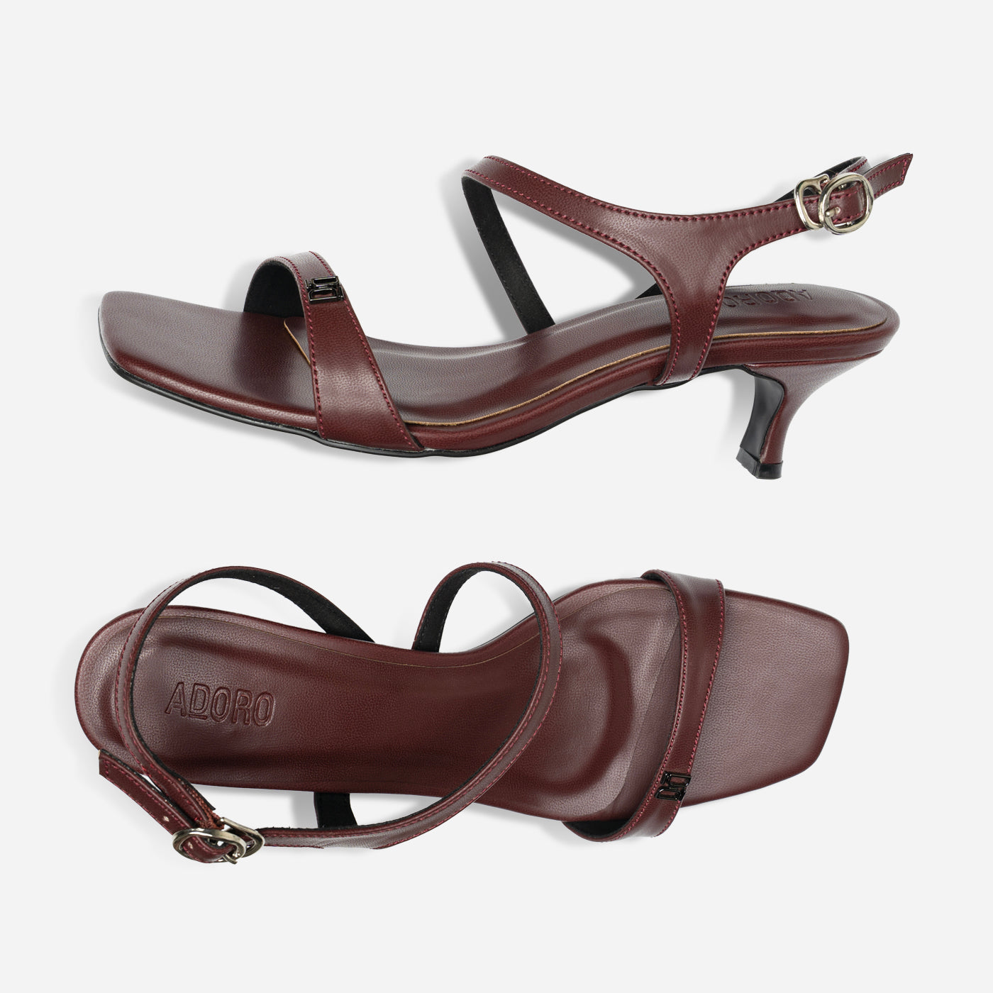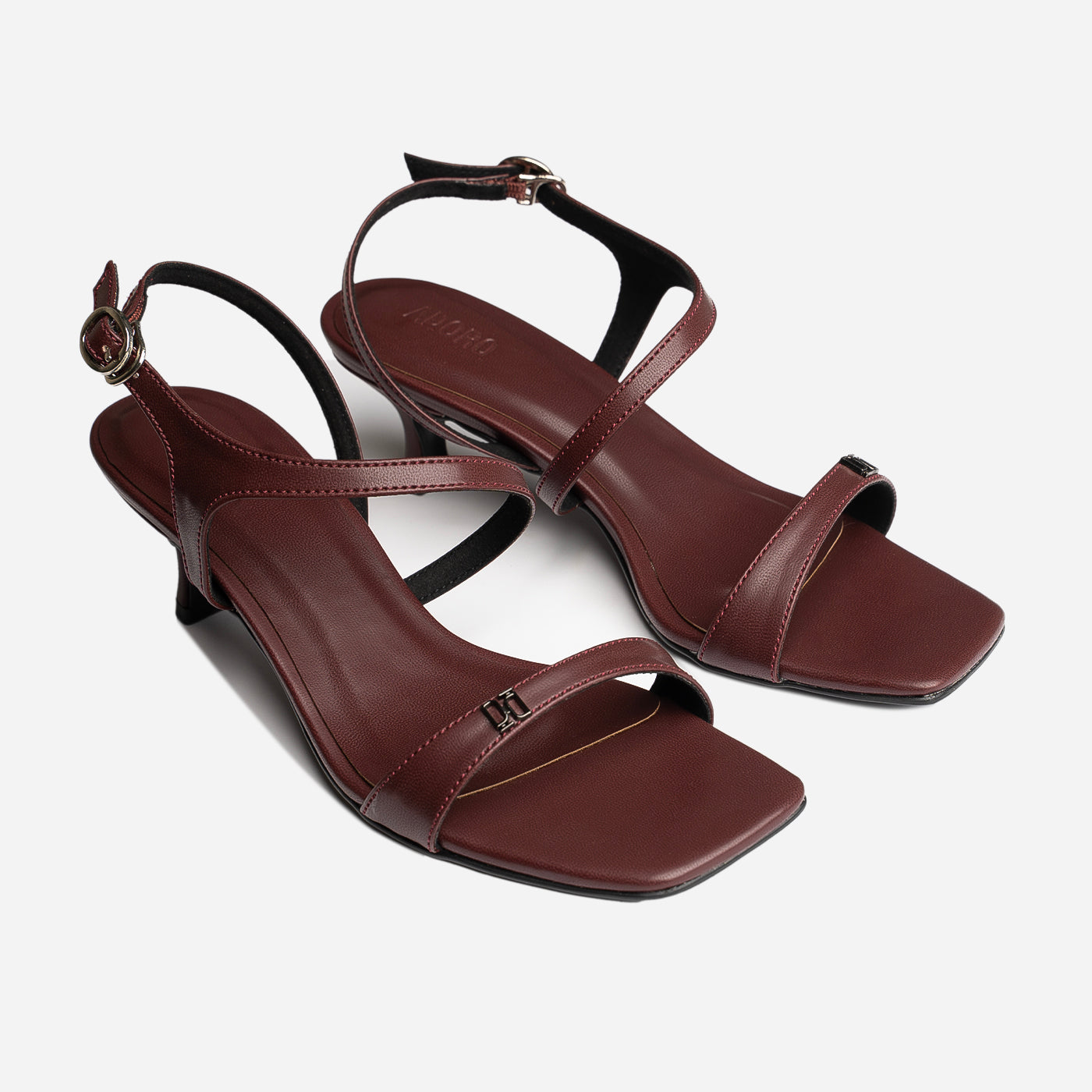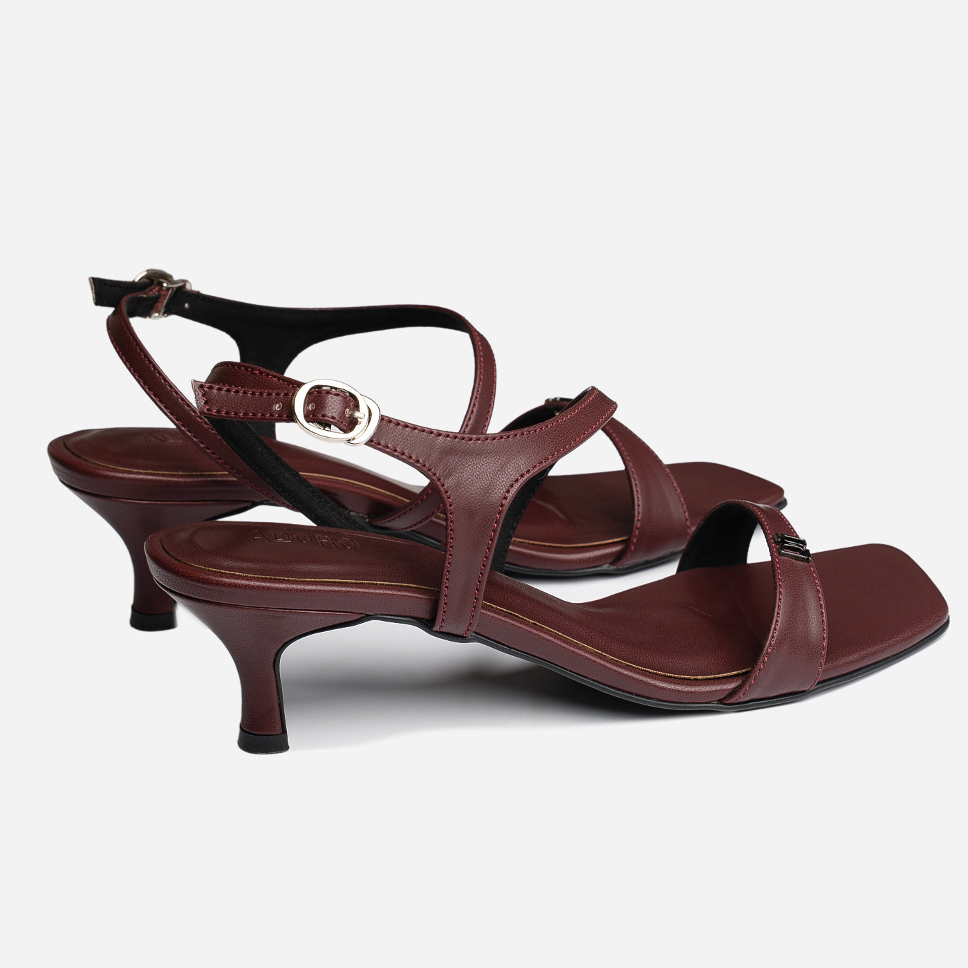 Understated elegance meets everyday versatility these rich burgundy heels are crafted with sleek straps and a modern square-toe silhouette, making them your go-to pair for subtle sophistication. With a sculpted low heel, they offer just the right lift for day-to-night comfort and style.