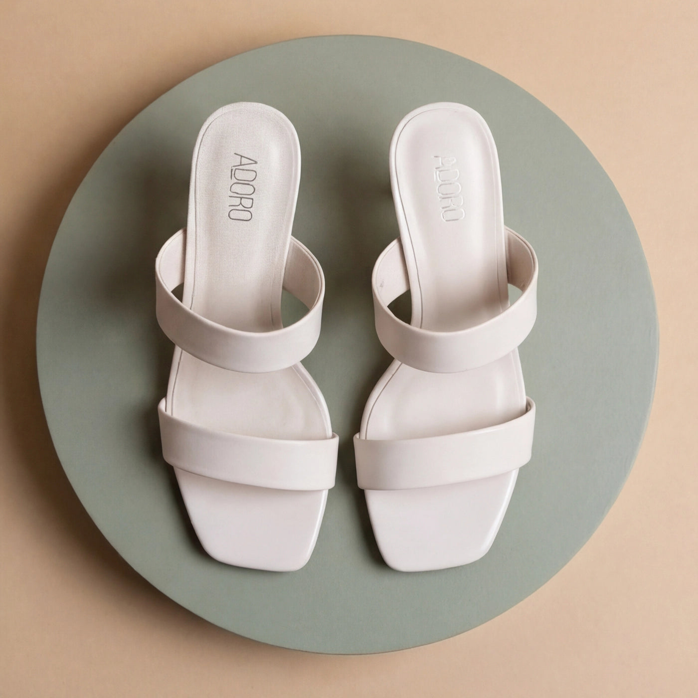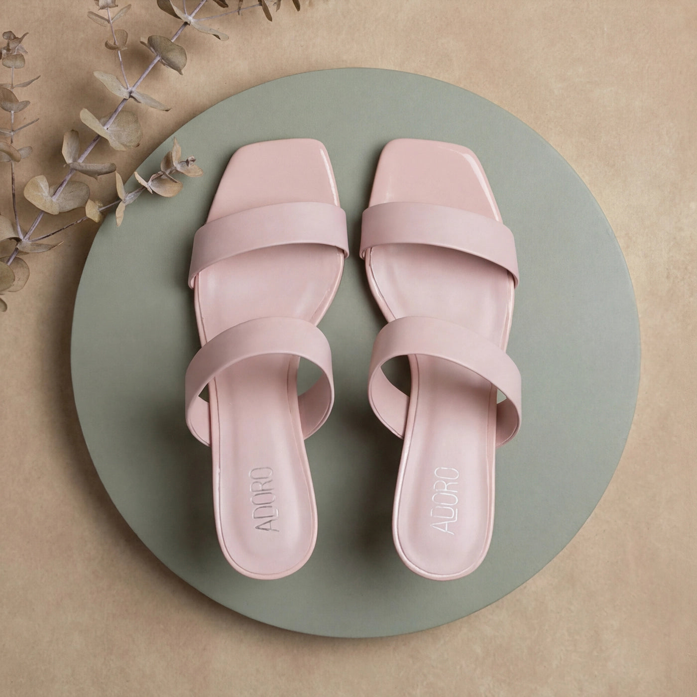 - Design: Minimalist silhouette with dual wide straps and low kitten heel