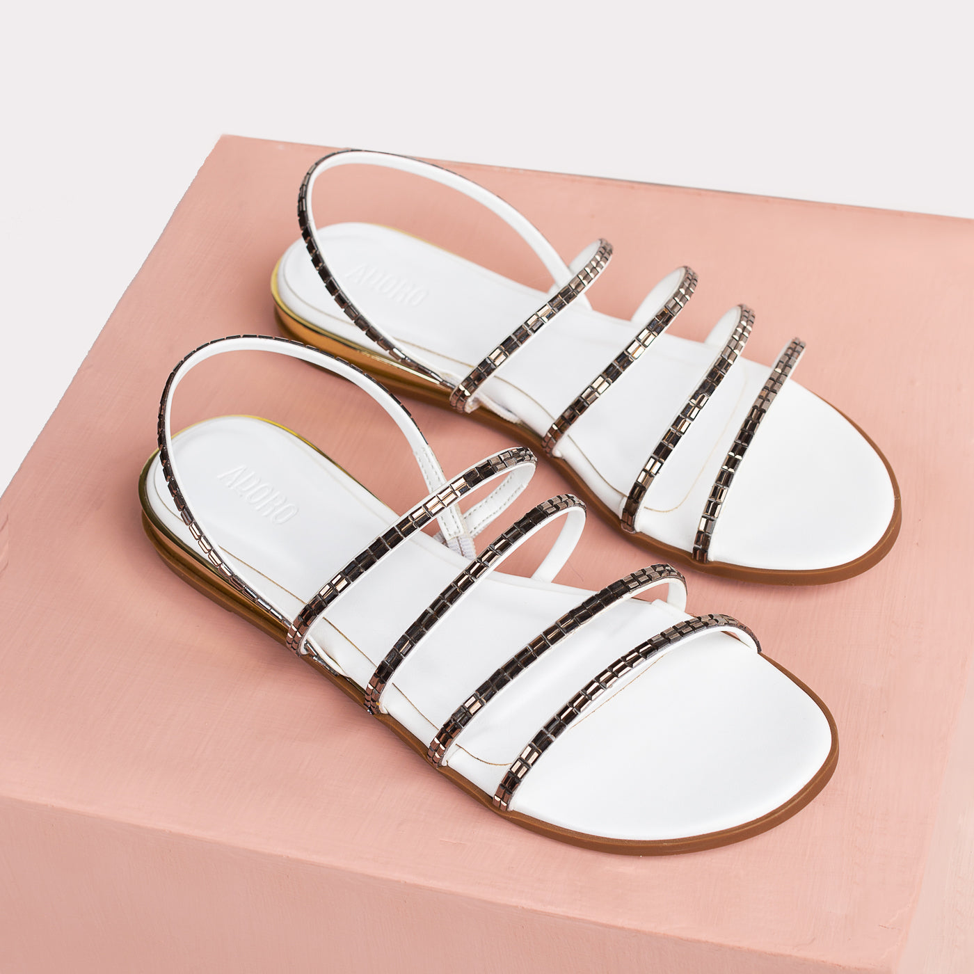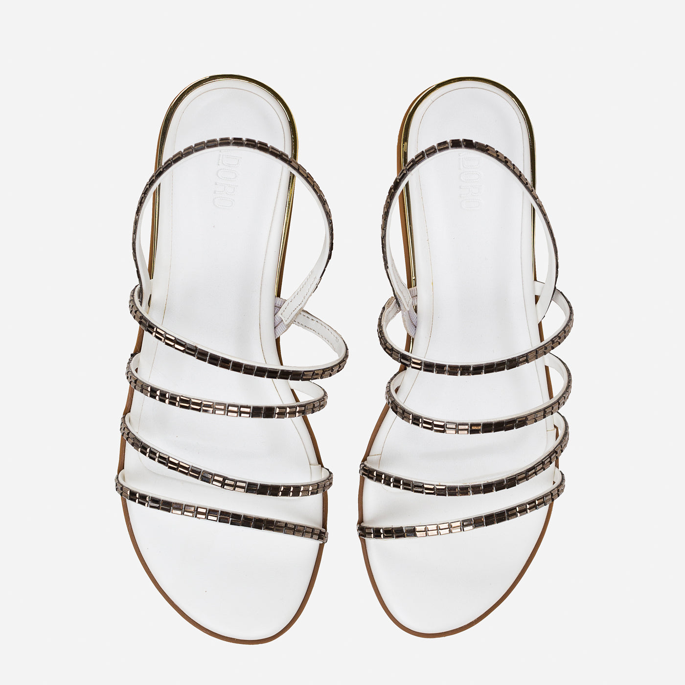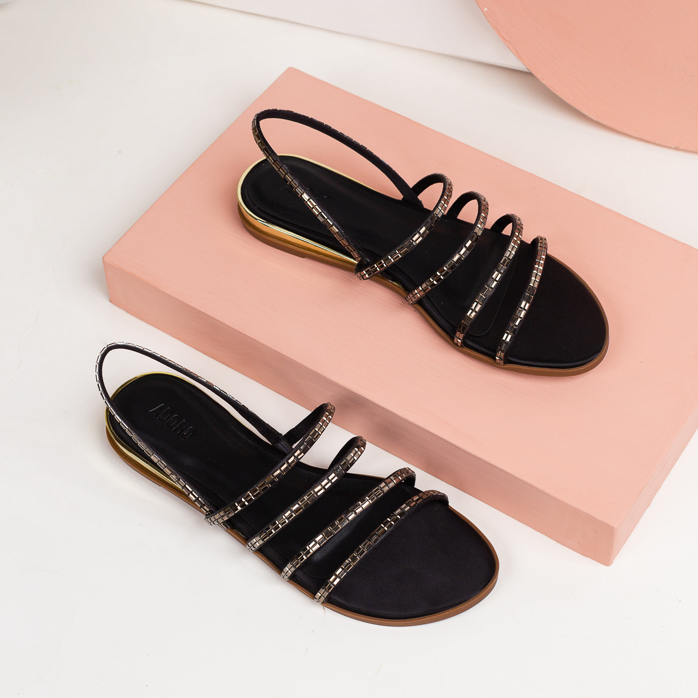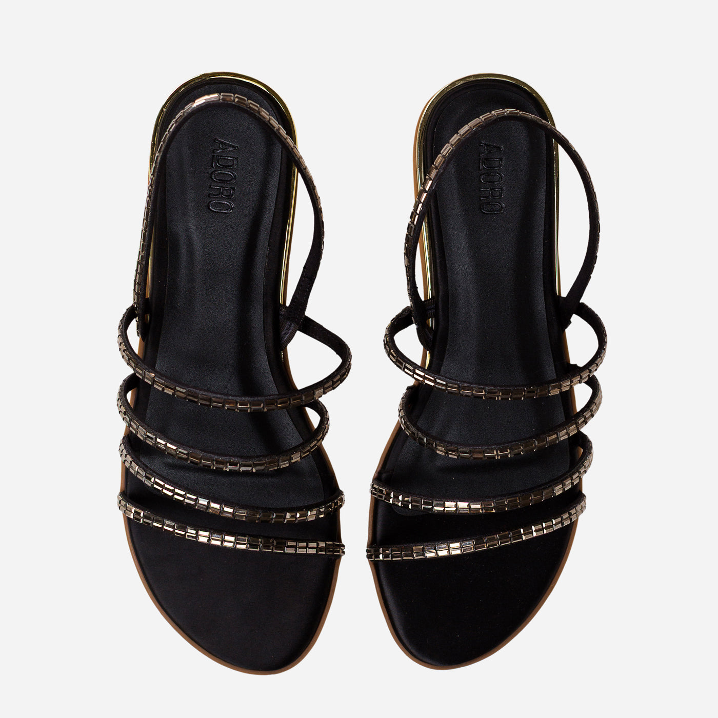 Step into effortless sophistication with Adoro’s Halo Stride flats, designed to add a subtle sparkle to your everyday and evening looks. Crafted with sleek multi-strap detailing, these flats offer a perfect balance of minimalism and elegance. The shimmering accents across the straps create a halo-like glimmer, while the cushioned insole ensures day-to-night comfort. Finished with a polished touch at the heel, these flats are versatile enough to elevate casual outfits or complement chic ensembles, making them a must-have for modern wardrobes.