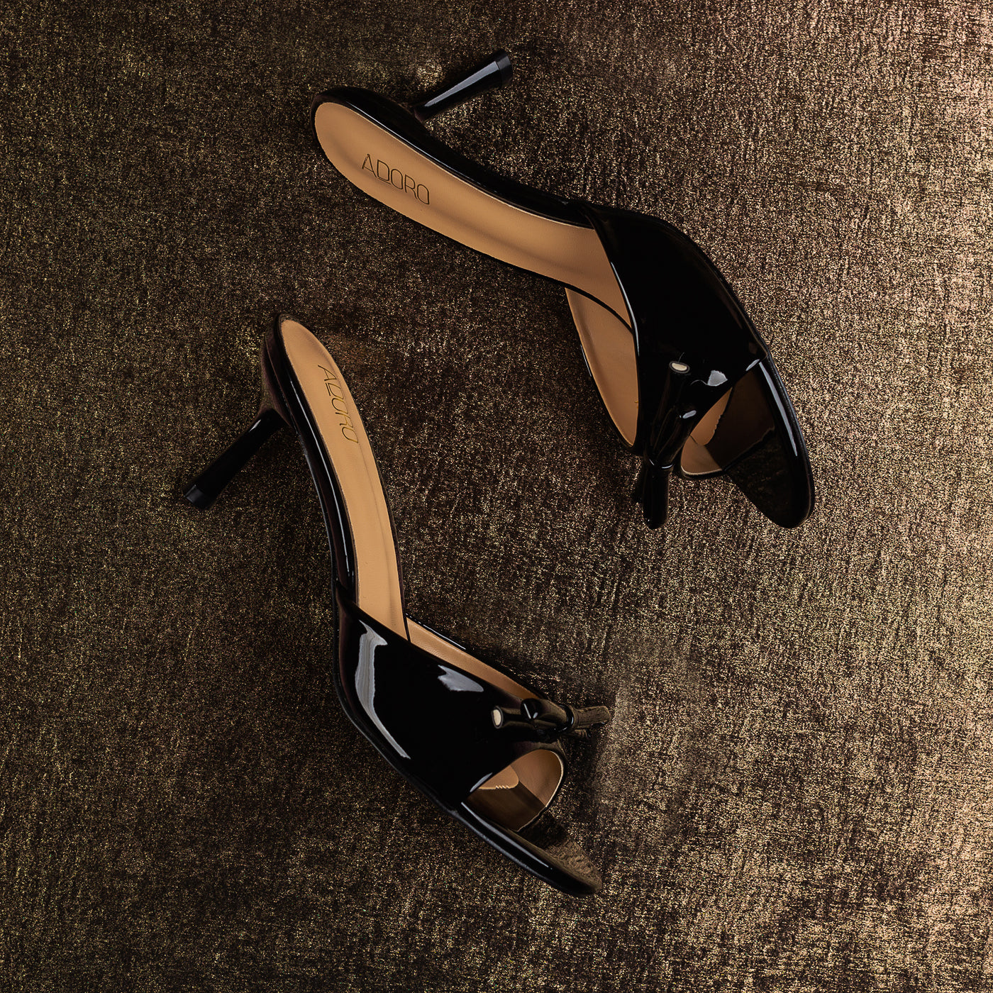 Step into timeless elegance with the Adoro Bow Accent Heeled Sandals. Crafted with a glossy patent finish and a charming knot detail, these sandals bring a refined yet playful touch to any outfit. The sleek stiletto heel adds a graceful lift, while the easy slip-on design ensures everyday comfort with elevated style.