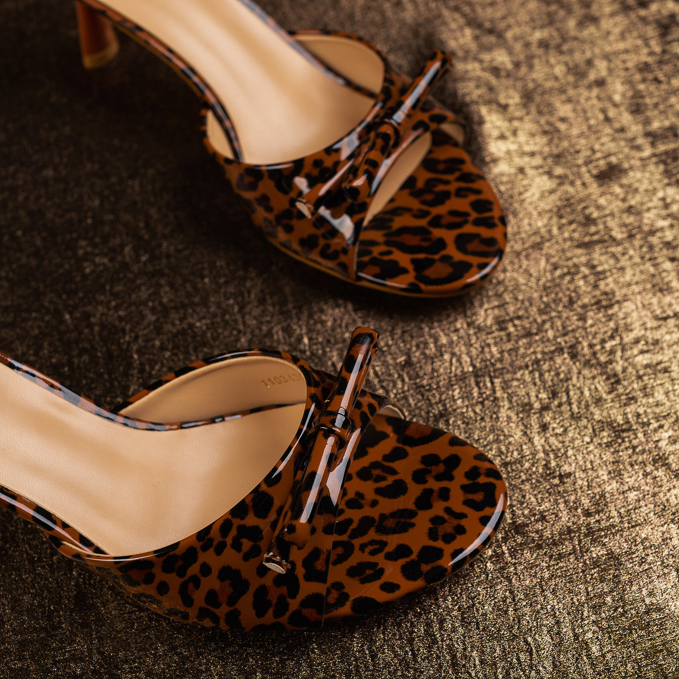 Featuring a shiny patent upper and a stylish bow detail, these sandals offer a blend of simplicity and grace. The slender 2-inch stiletto heel adds a touch of sophistication, while the slip-on design makes them perfect for effortless wear throughout the day or evening.