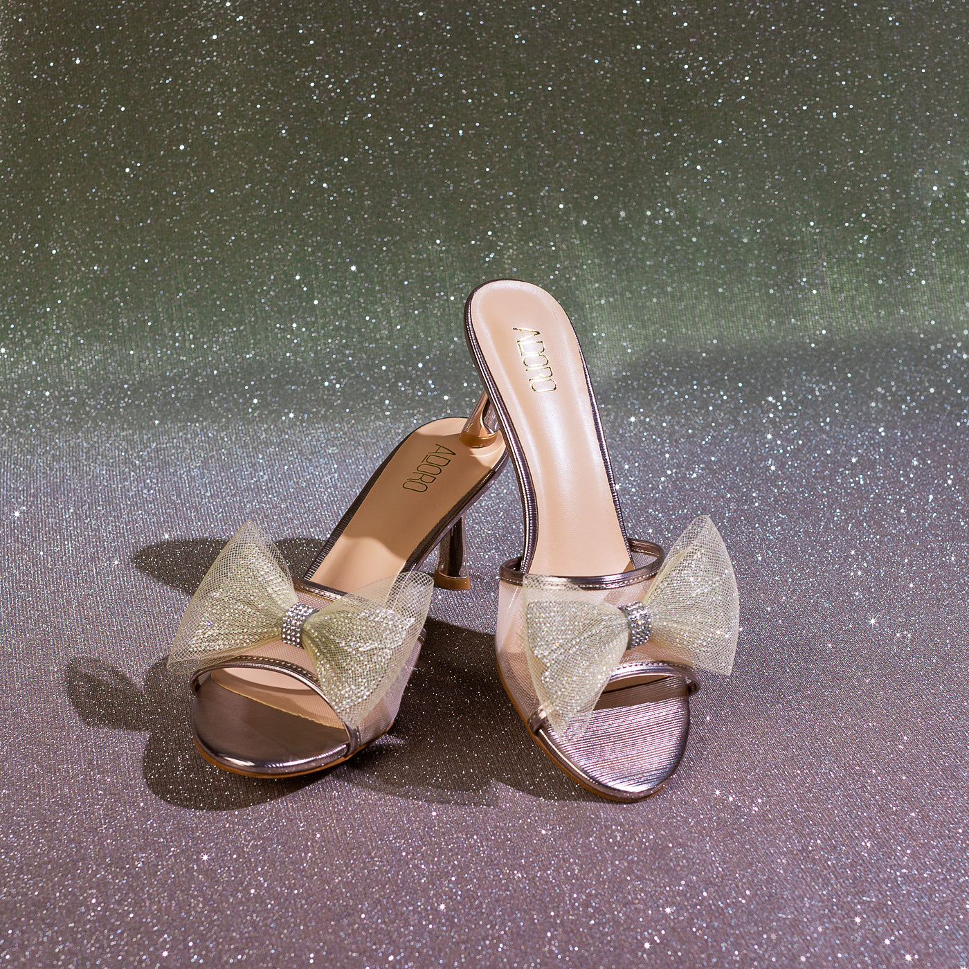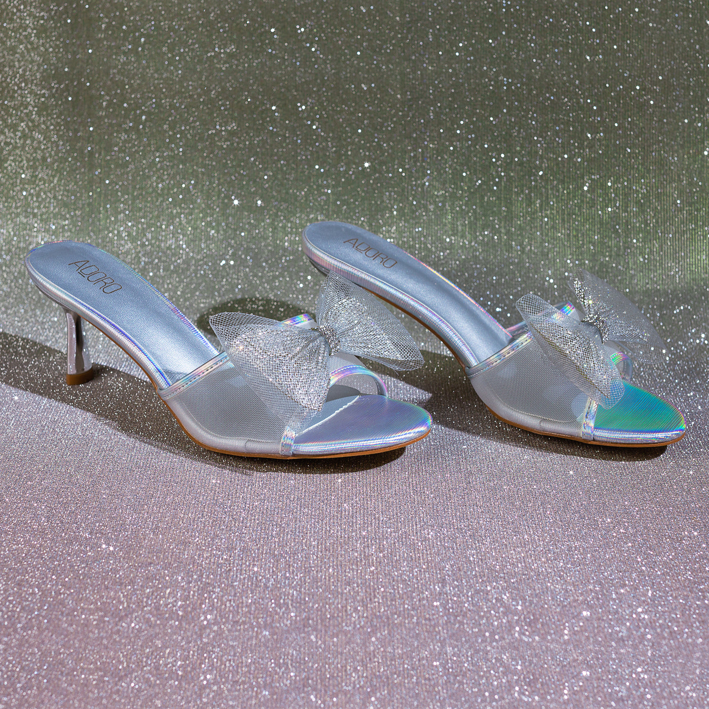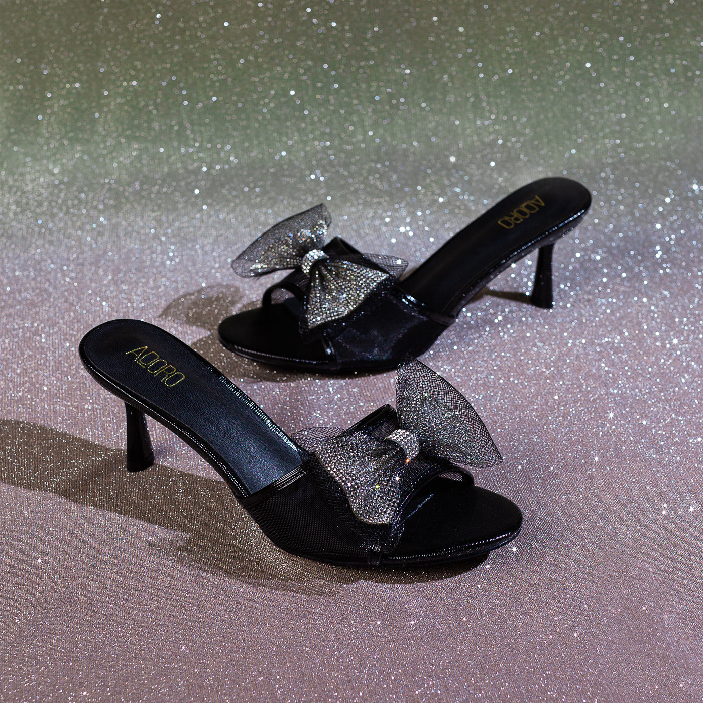 The Adoro Noir Bow Mesh Mule adds a touch of captivating drama to your look. Featuring a sleek mesh finish with a dramatic oversized bow, these mules create a glamorous look. The slender stiletto heel and comfortable slip-on design offer both style and ease.