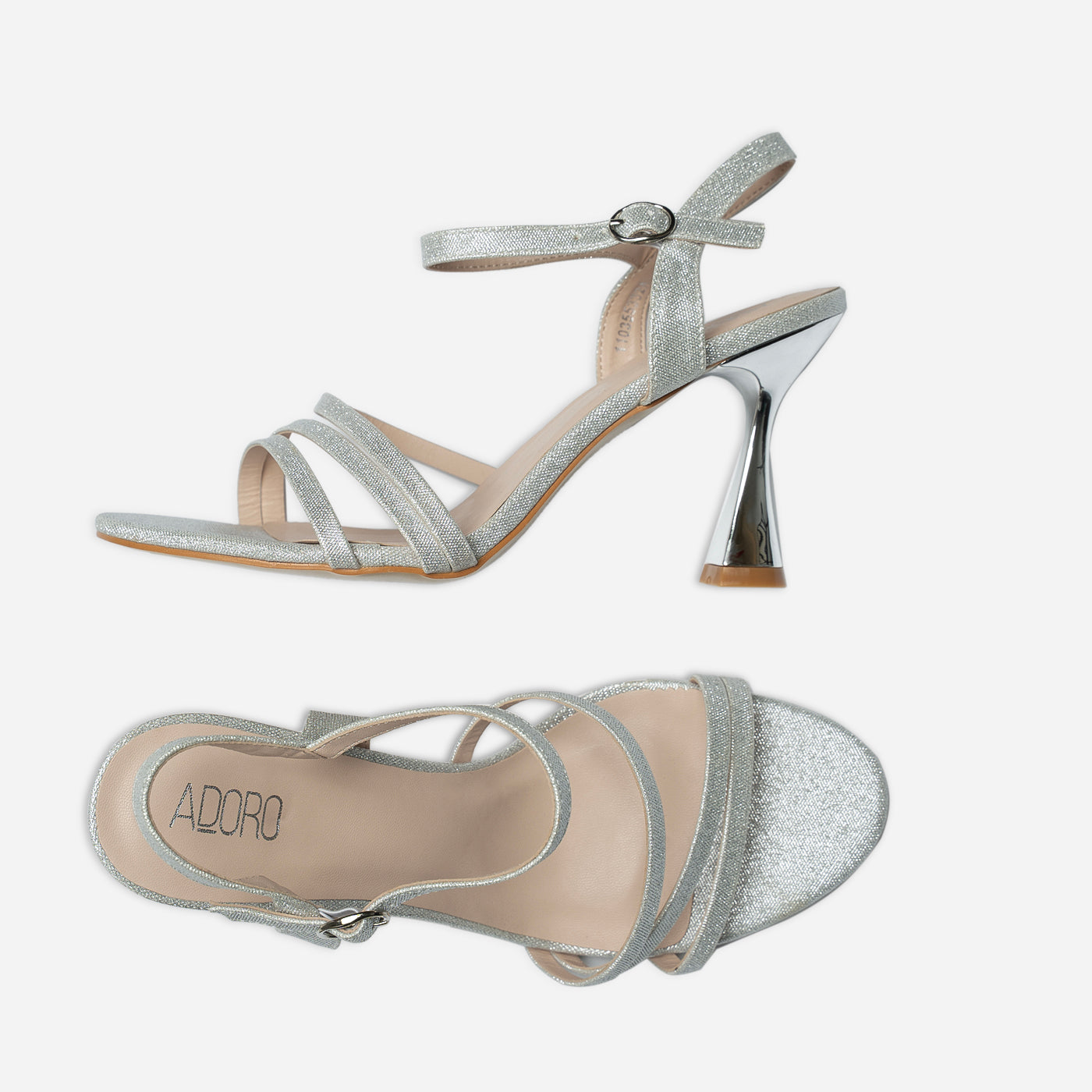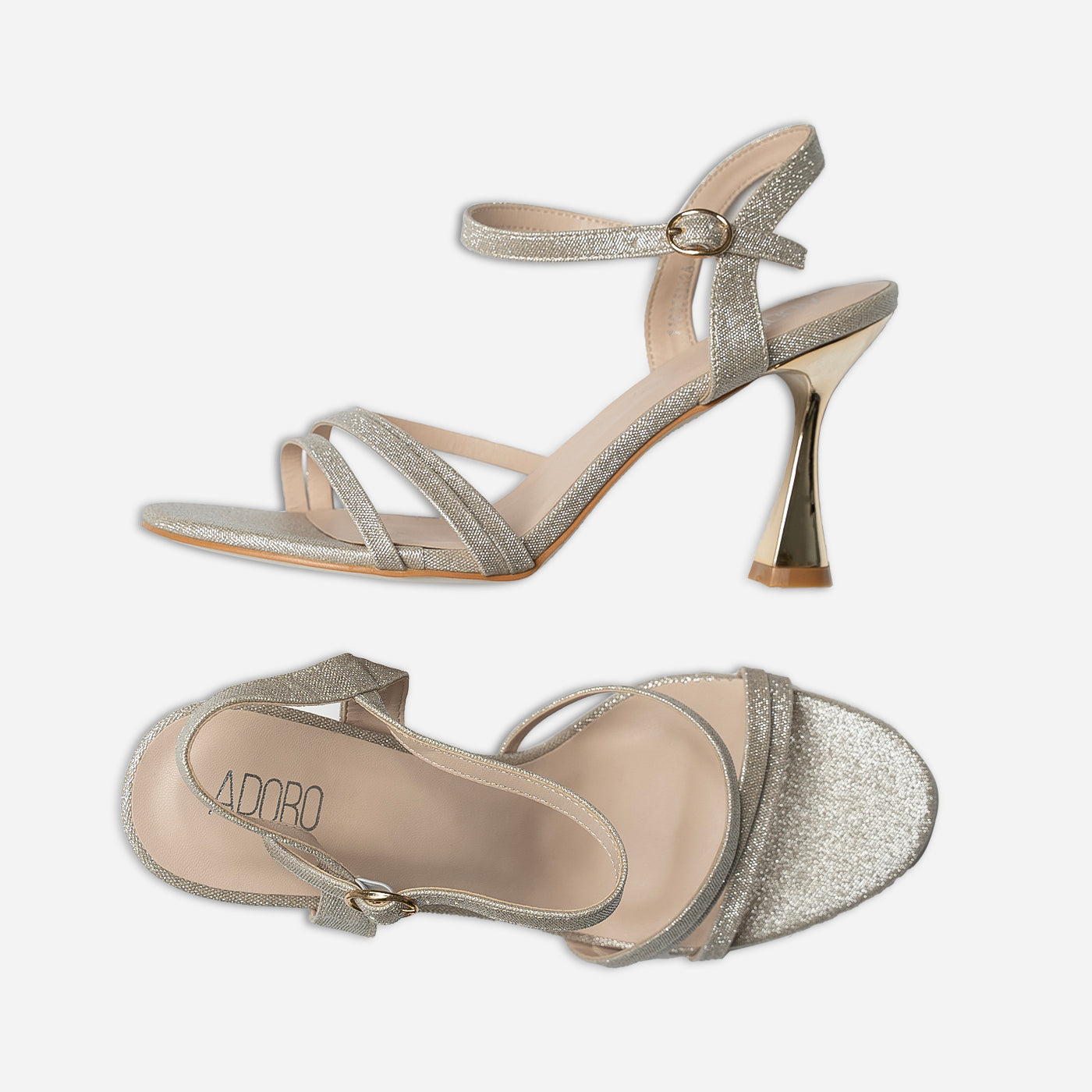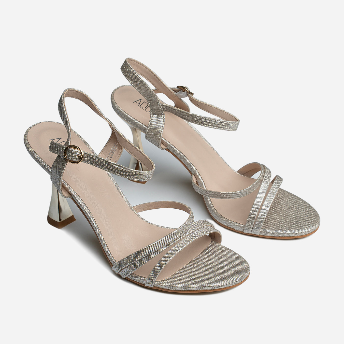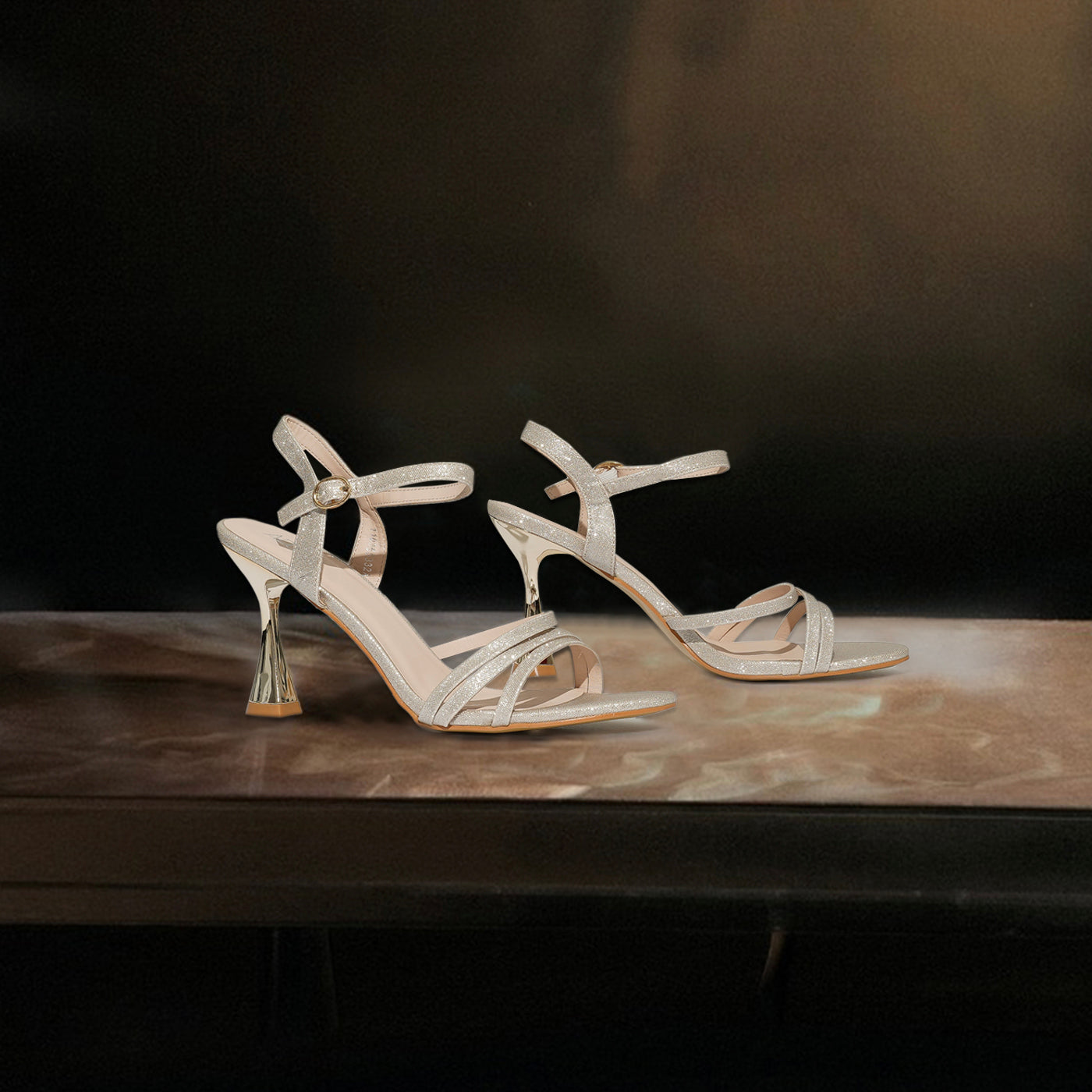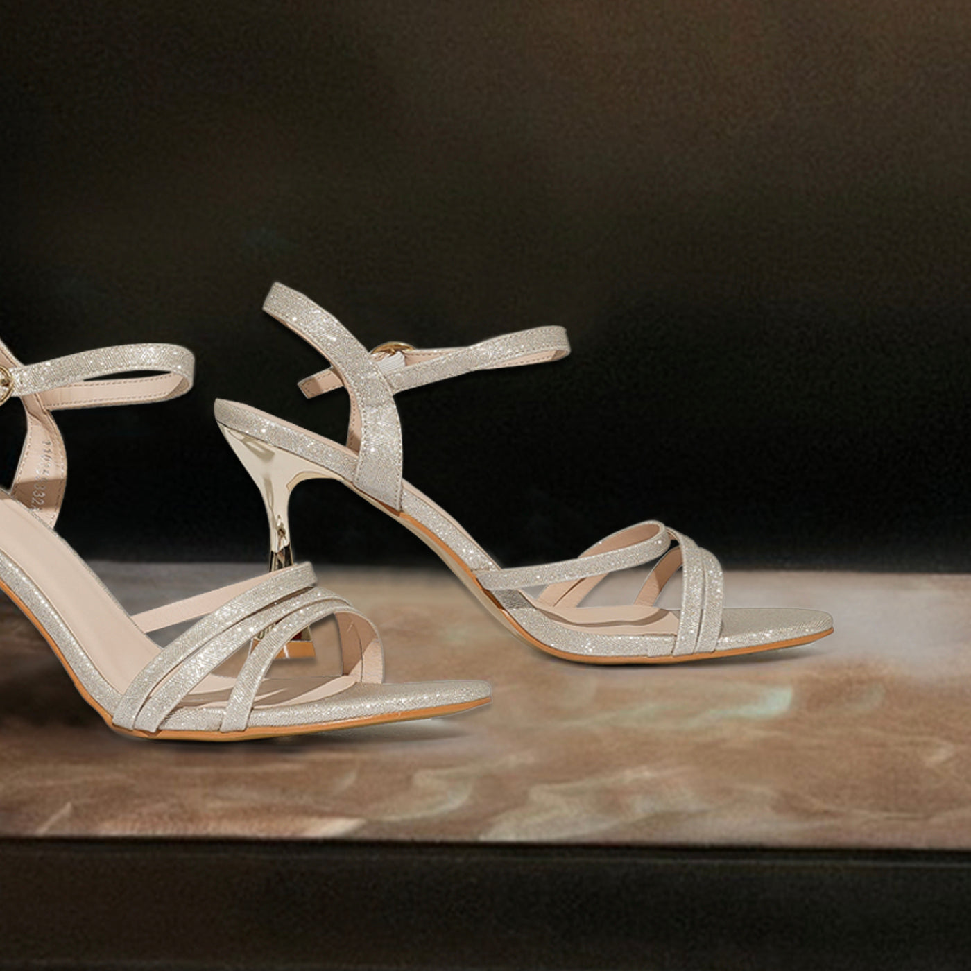 Sleek and radiant, these heels capture the essence of contemporary glamour. Designed with slender glittering straps and a sculpted metallic heel, they create a refined silhouette that shines from every angle. The adjustable ankle strap ensures a secure fit, while the cushioned insole adds comfort for extended wear. Perfect for evening occasions or elegant celebrations, they bring effortless sophistication to every step.