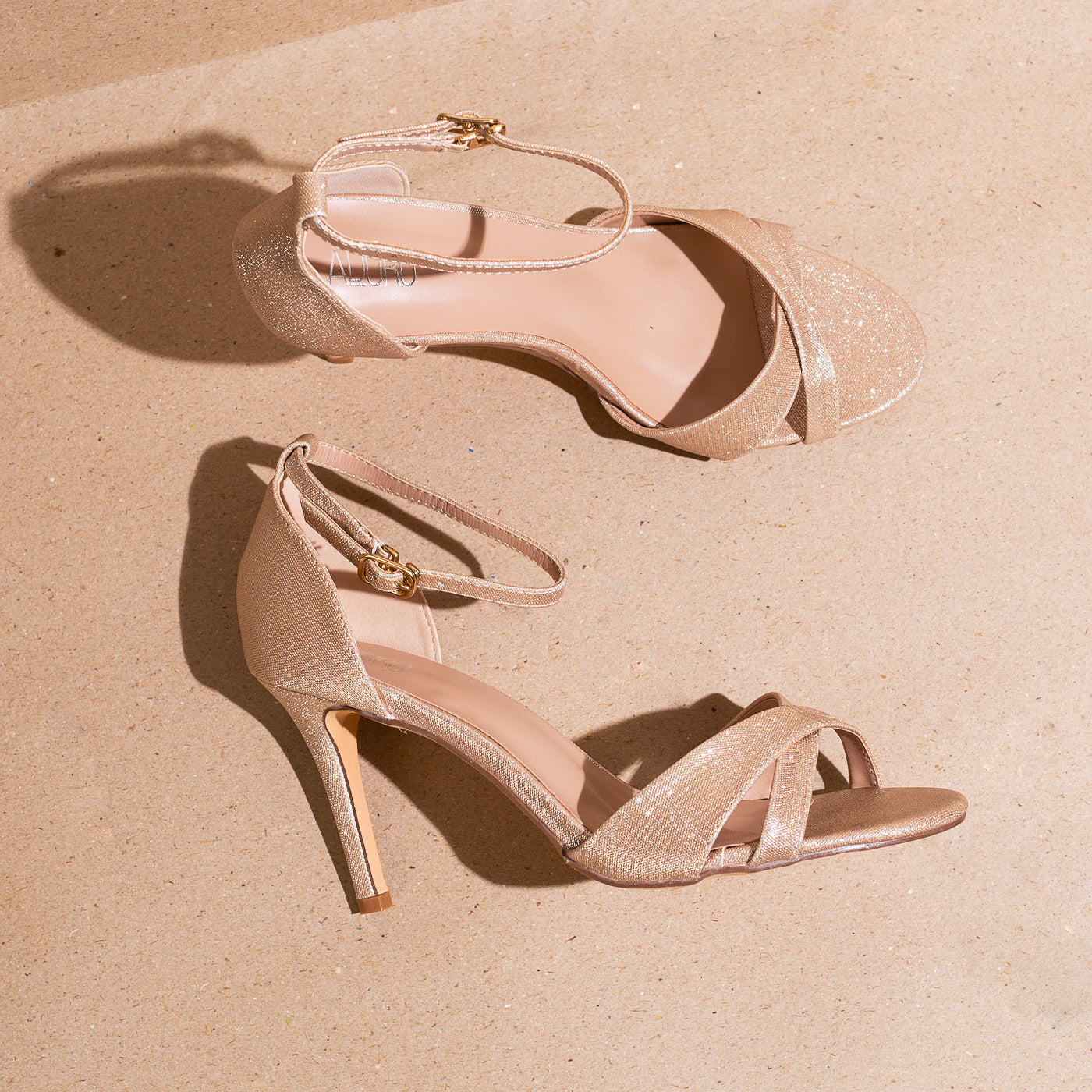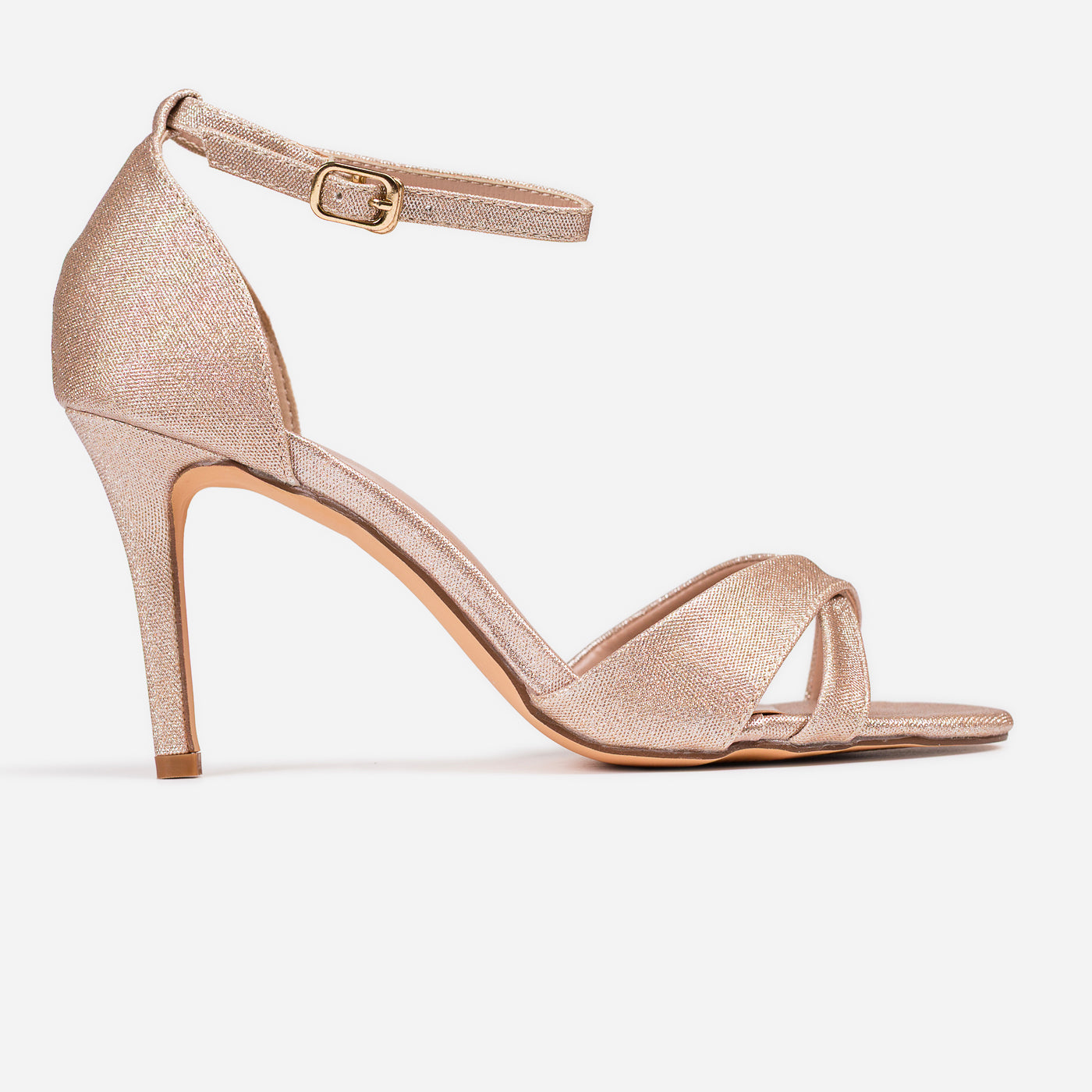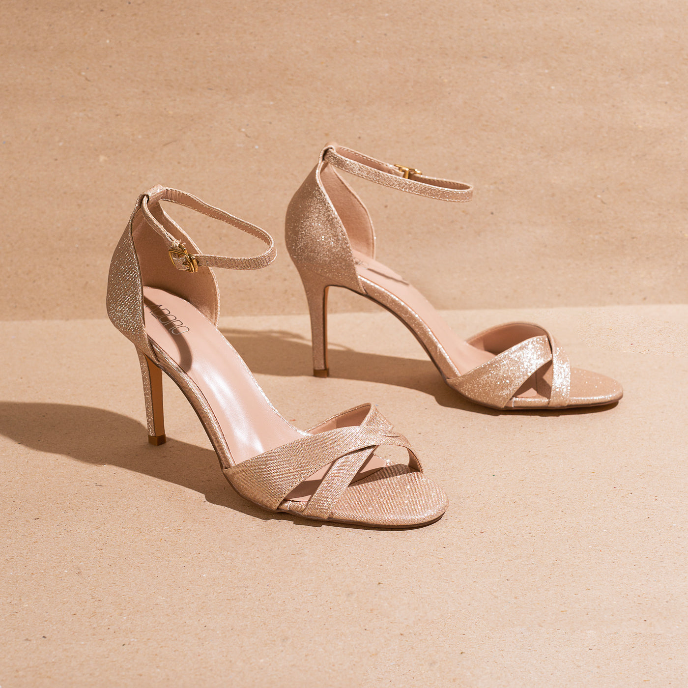 A timeless silhouette with a luminous finish these heels bring refined glamour to every step. The sleek cross-strap design and ankle buckle detail offer a chic, feminine profile perfect for occasions where elegance speaks louder than sparkle.