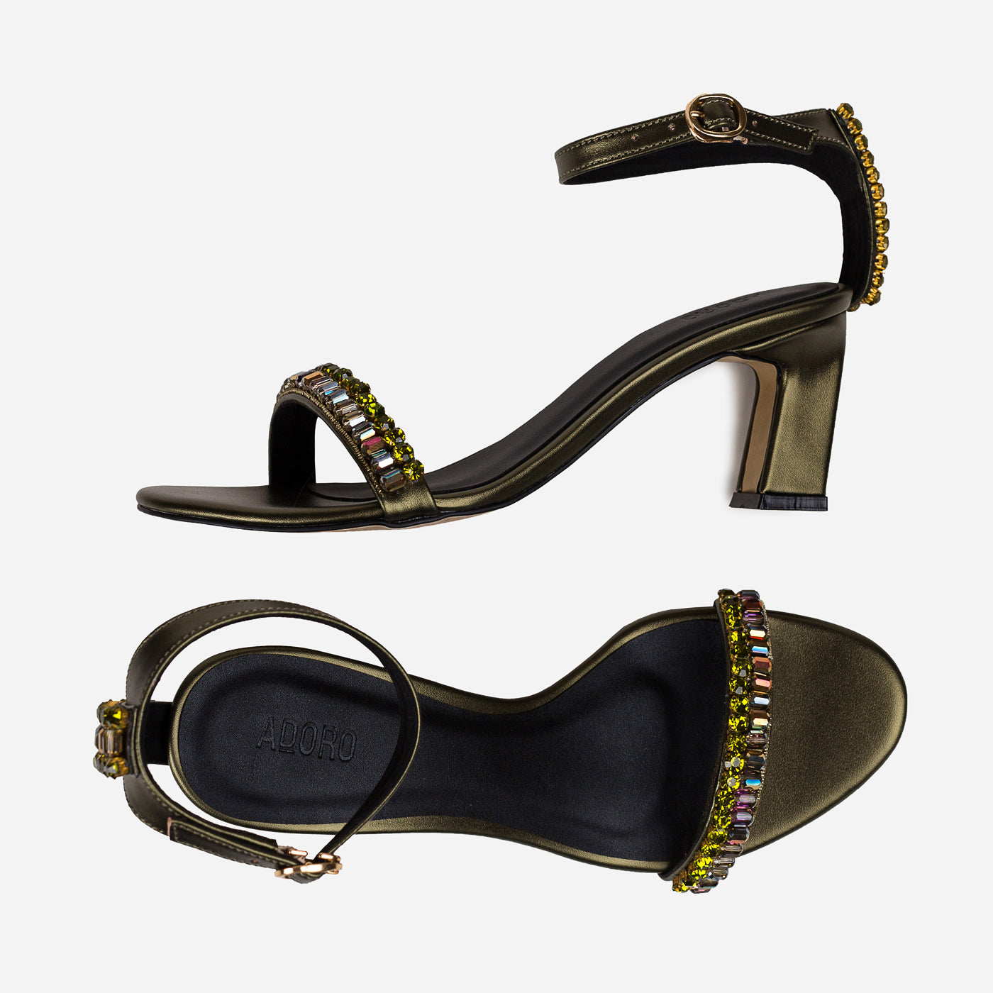 Step into effortless sophistication with Adoro’s Aurora Gleam sandals, crafted to bring glamour and poise to every occasion. Featuring a sleek ankle-strap silhouette, these sandals are elevated with a dazzling band of multi-faceted crystals that shimmer from every angle. The block heel ensures both balance and confidence, making them the perfect fusion of style and wearability. Whether it’s a festive soirée, wedding, or evening party, Aurora Gleam sandals make every step shine with radiant charm.