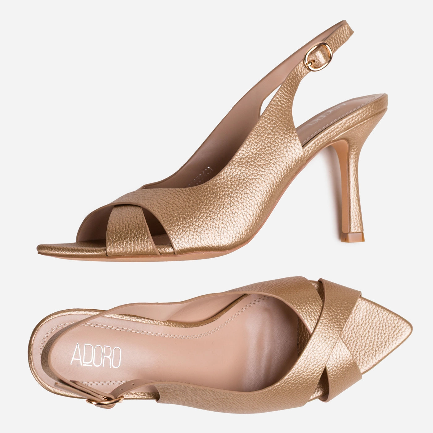 - Design: Crossover toe strap with adjustable slingback and silver-tone hardware