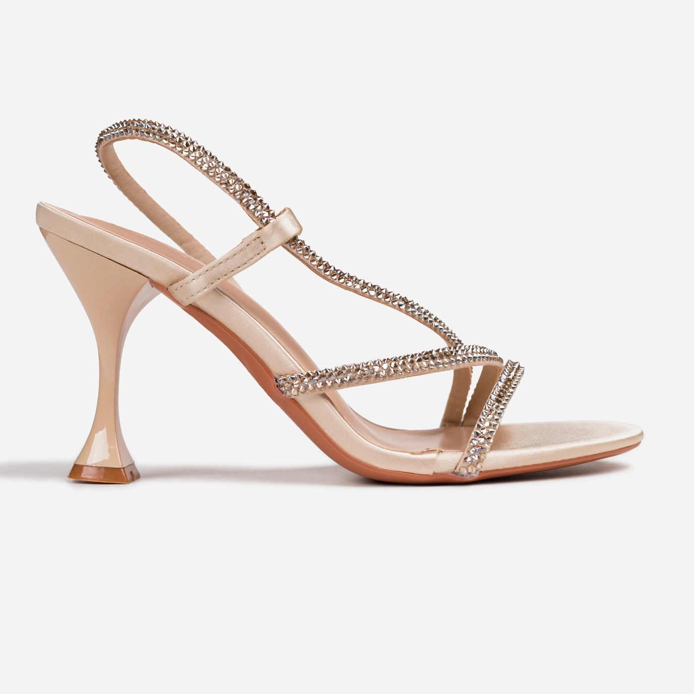 - Design: Strappy slingback with crisscross detail and flared sculptural heel