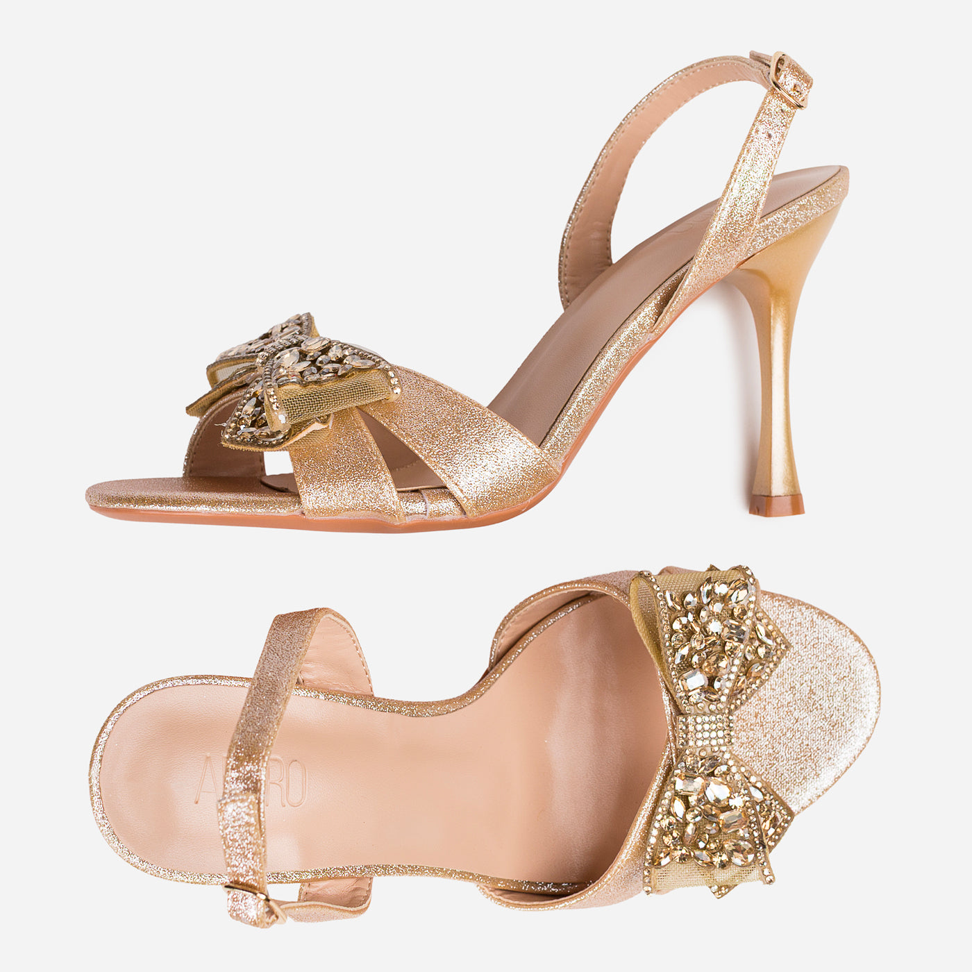 The slim stiletto heel elongates your silhouette, and the soft golden finish brings a warm, luminous glow with every step. Think gala nights, festive celebrations, or any moment that calls for a little extra magic.