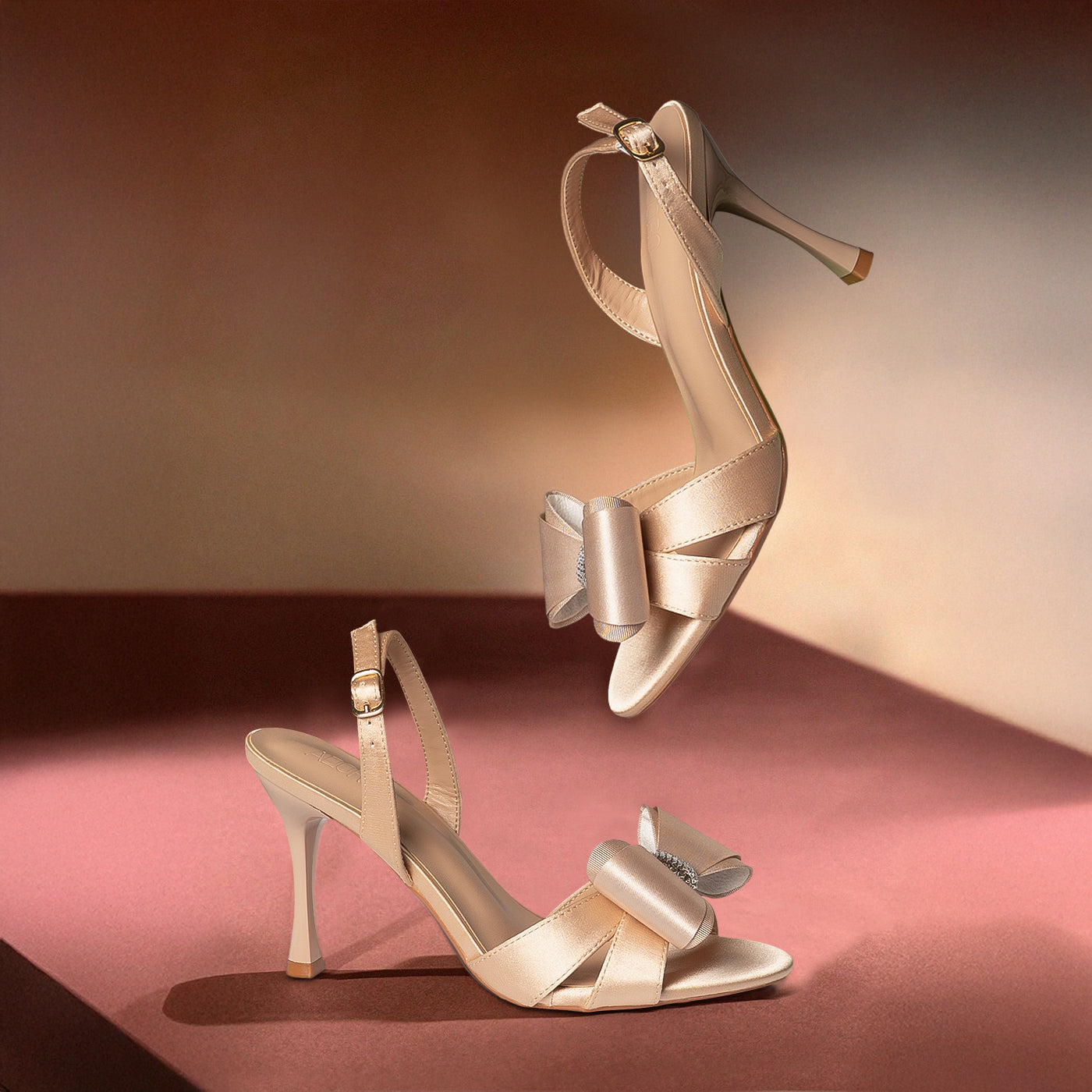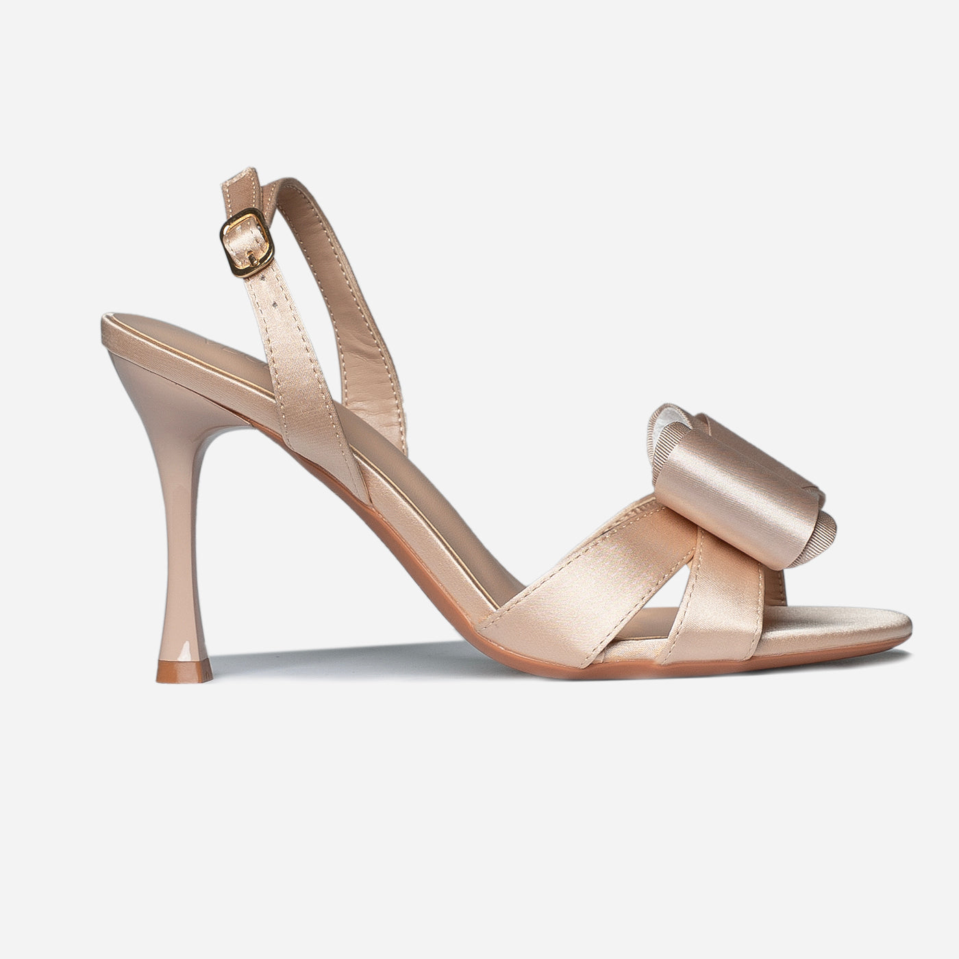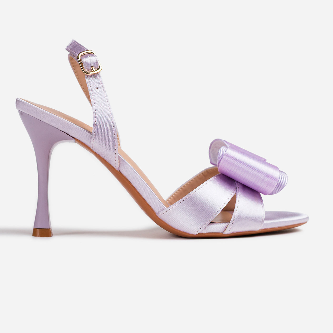 - Design: Open-toe silhouette with statement bow