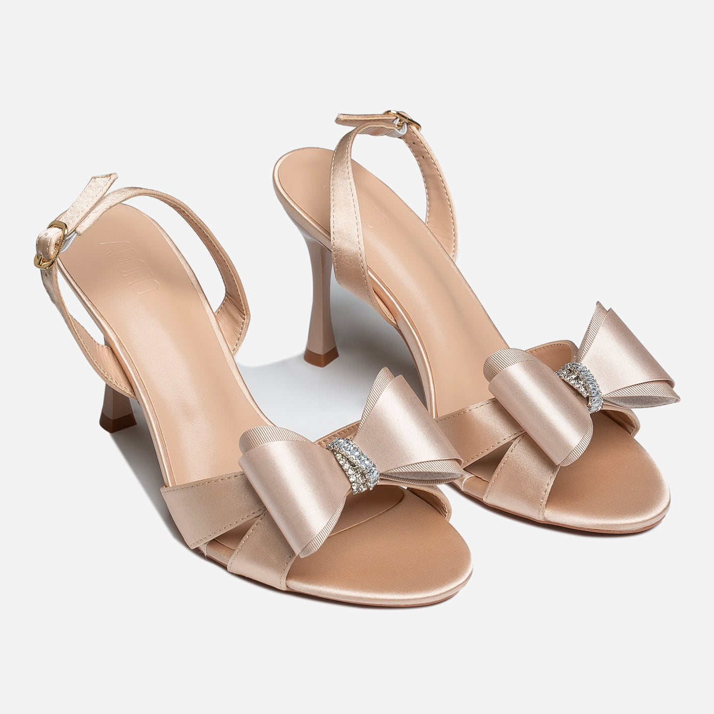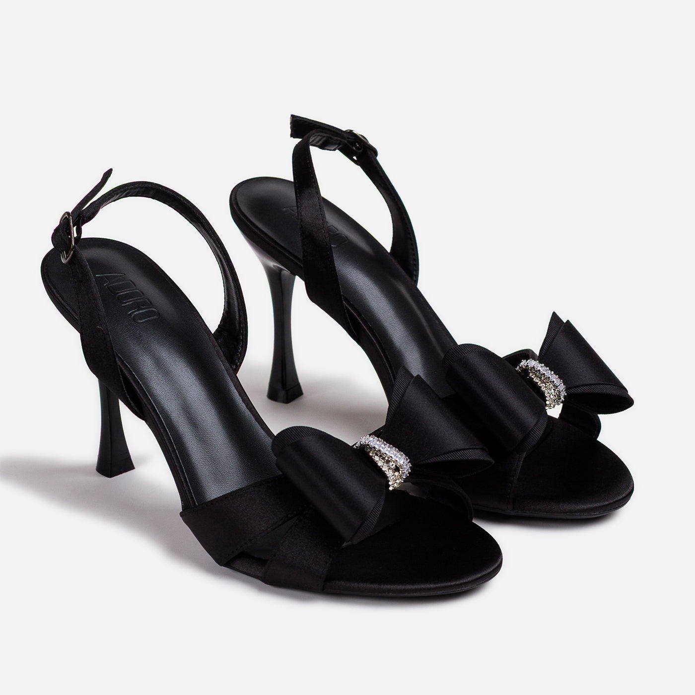 Step into elegance with these Bow Glam heels, designed to bring charm and sophistication to every celebration. Featuring luxurious satin bows adorned with sparkling crystal accents, they offer a romantic and feminine finish. The slender heel and ankle strap provide graceful height and secure comfort, making them perfect for weddings, parties, and glam evenings out.