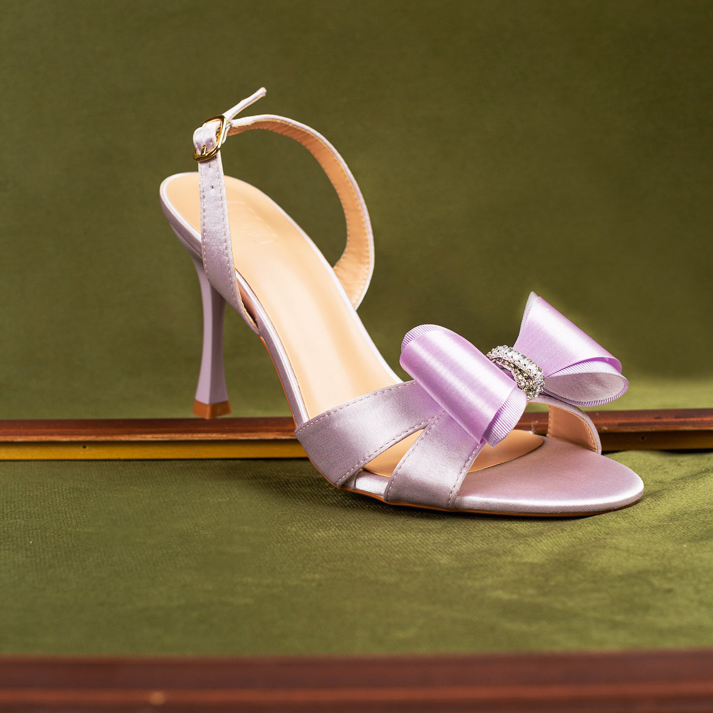 These lilac satin slingback heels are a dream in pastel elegance. The radiant bow delicately structured and adorned with a crystal-studded centerpiece captures a sense of refined glamour. The satin finish shimmers softly with every step, while the graceful open-toe silhouette and slender heel add a touch of modern allure.