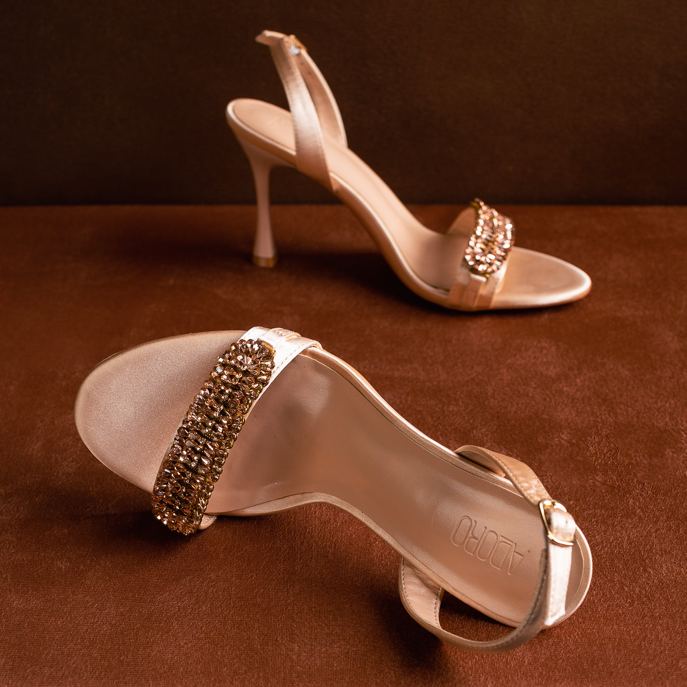 - Material: Satin-look upper with jewel embellishments