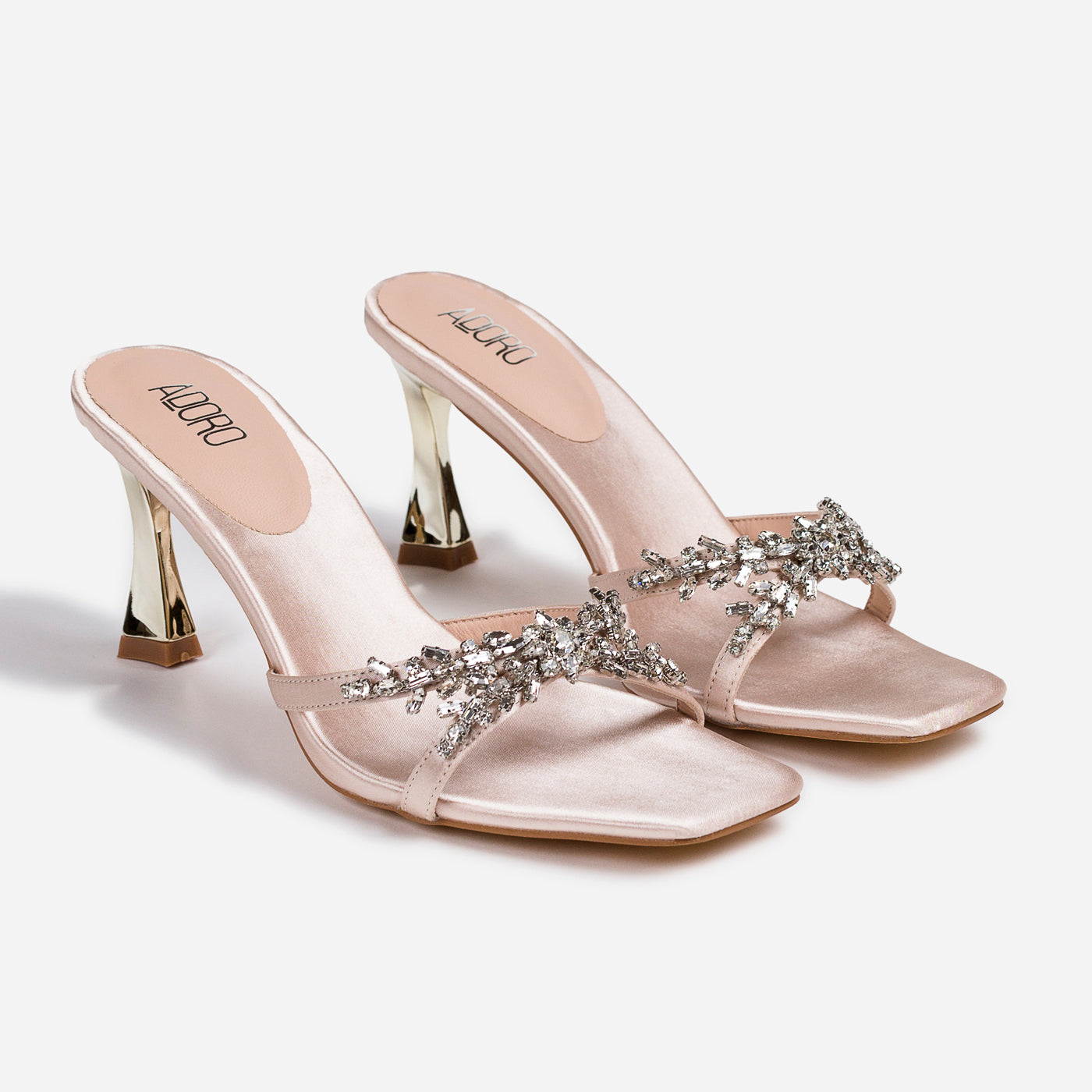 Twilight Gleam defines refined sophistication with a hint of glamour. Designed with a smooth satin upper, it features intricate embellishments that add subtle sparkle to your evening look. The slip-on silhouette ensures effortless wear, while the sculpted heel adds a modern edge. Perfect for dinners, formal gatherings, or festive occasions, this pair brings together grace and statement style.