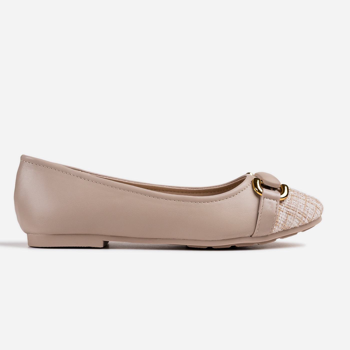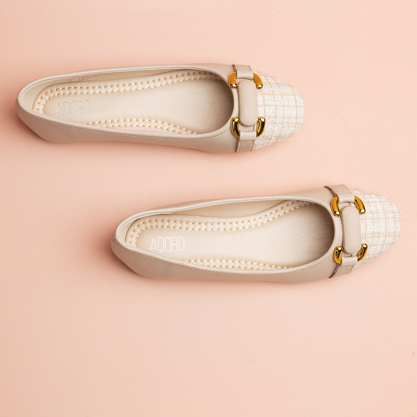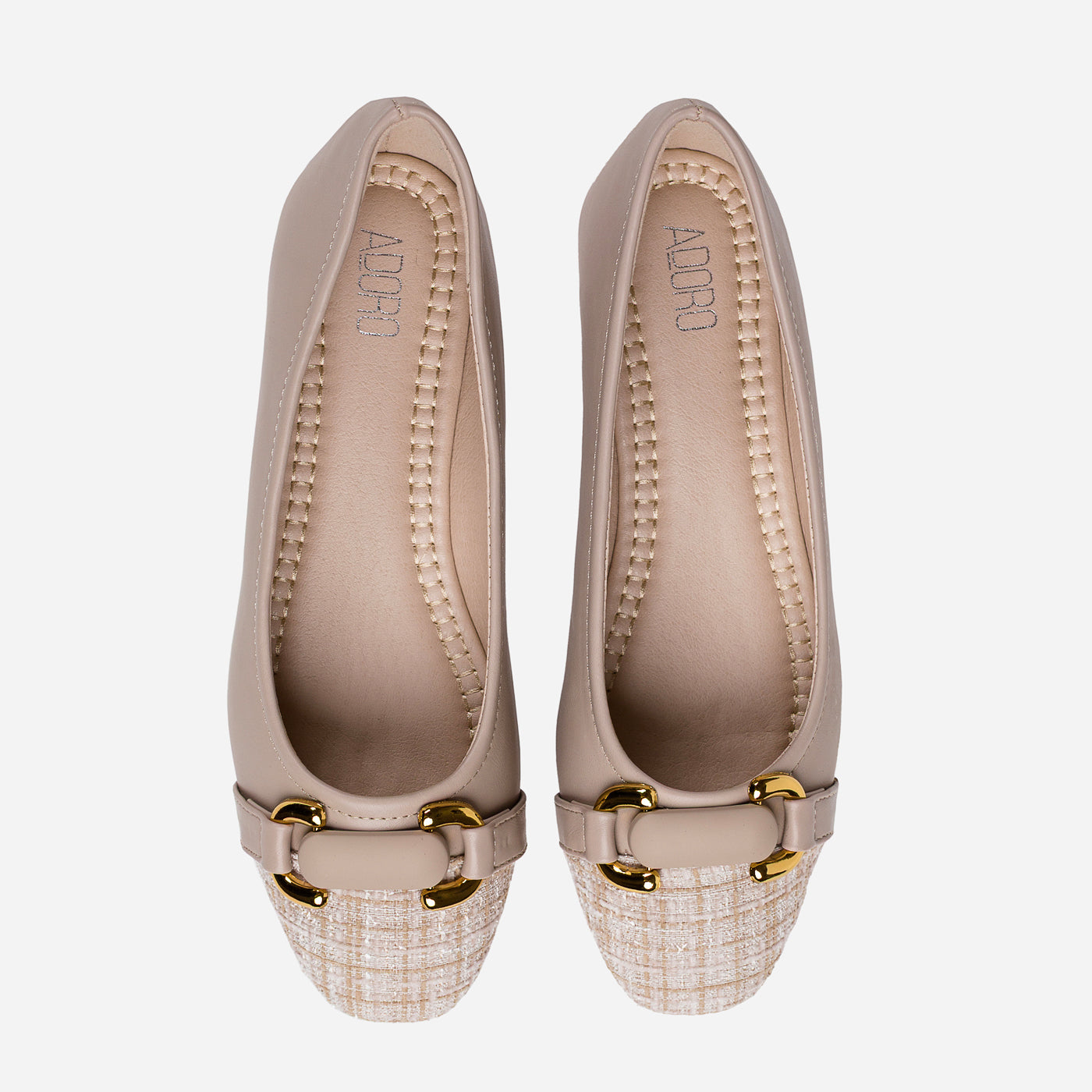 Featuring a chic tweed toe accent and polished gold-tone hardware, this pair blends timeless charm with contemporary style. The smooth beige finish adds a warm, feminine touch, making it perfect for workdays, brunch dates, and everything in between. Crafted with a cushioned insole and a sleek low-profile design, these shoes offer effortless comfort without compromising on elegance. A subtle square toe and luxe detailing elevate any outfit from tailored pants to flowy dresses. Classic texture meets modern elegance for the woman who loves subtle luxury.