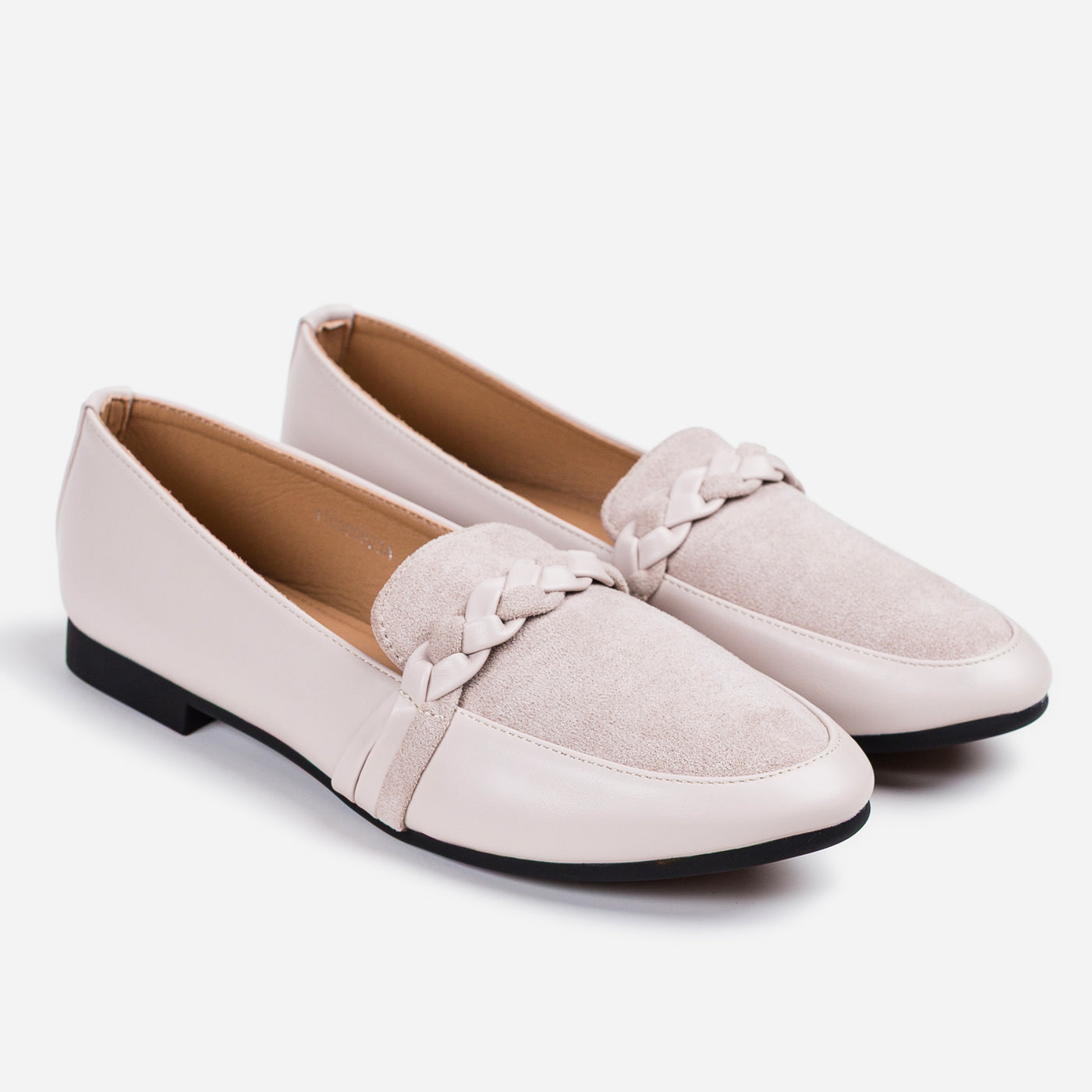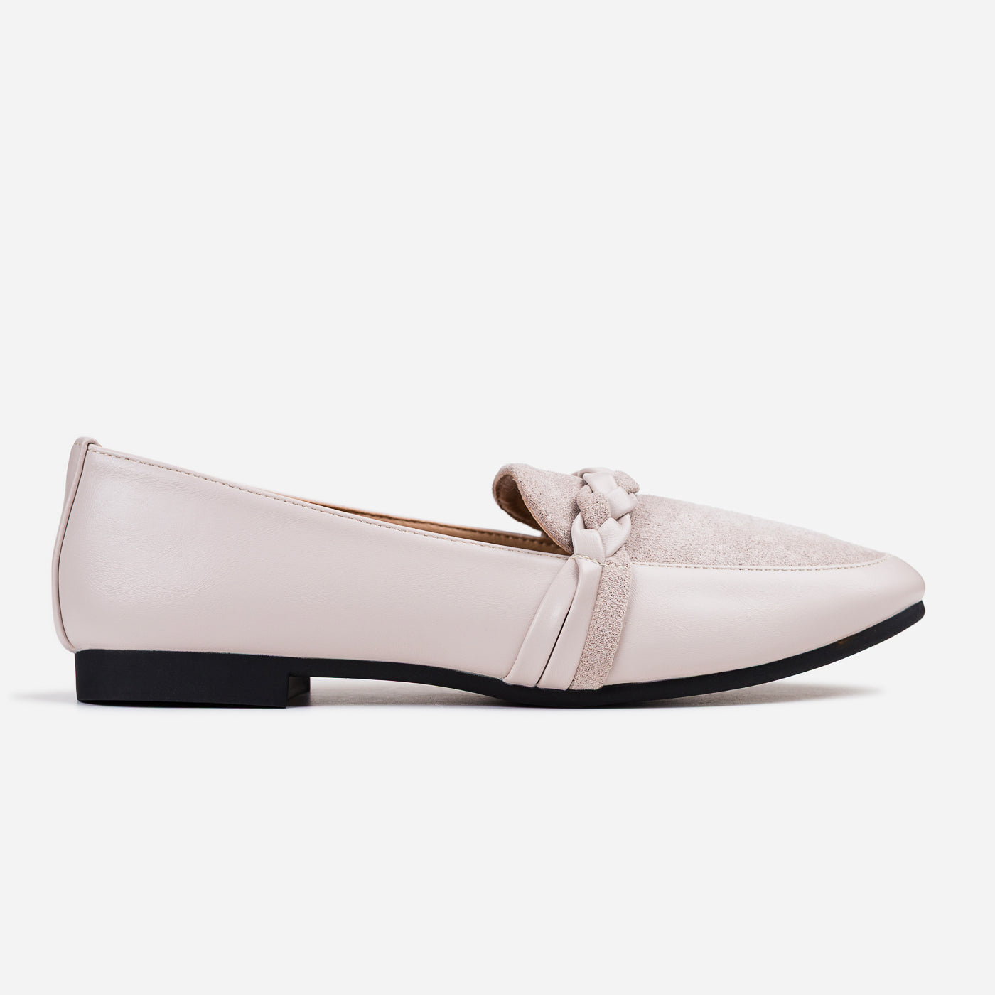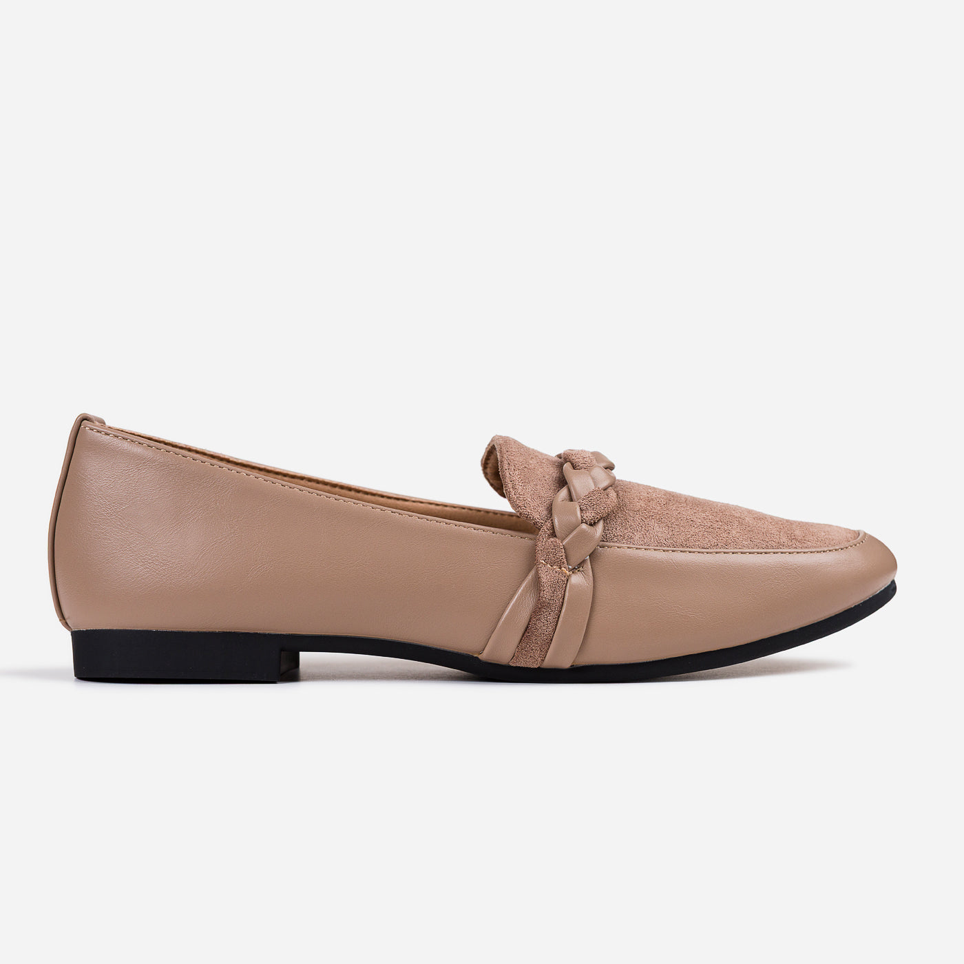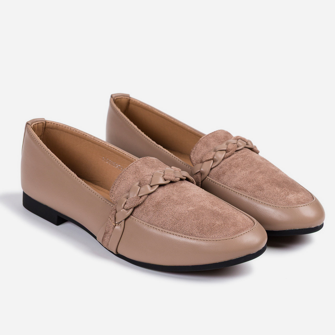 These braided-detail loafers bring a perfect blend of elegance and everyday ease. The smooth faux leather paired with the velvety suede panel creates a beautiful contrast, stylish, and effortlessly chic.