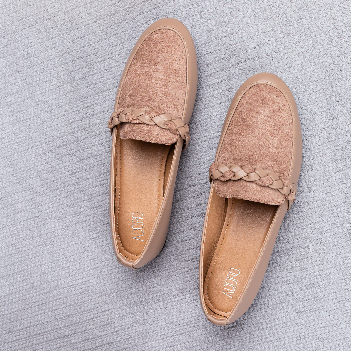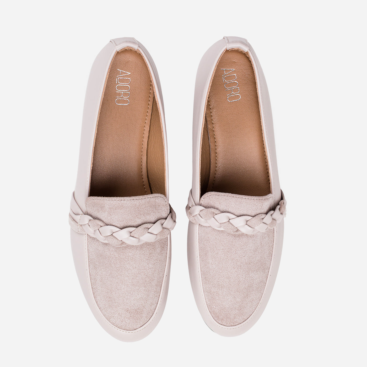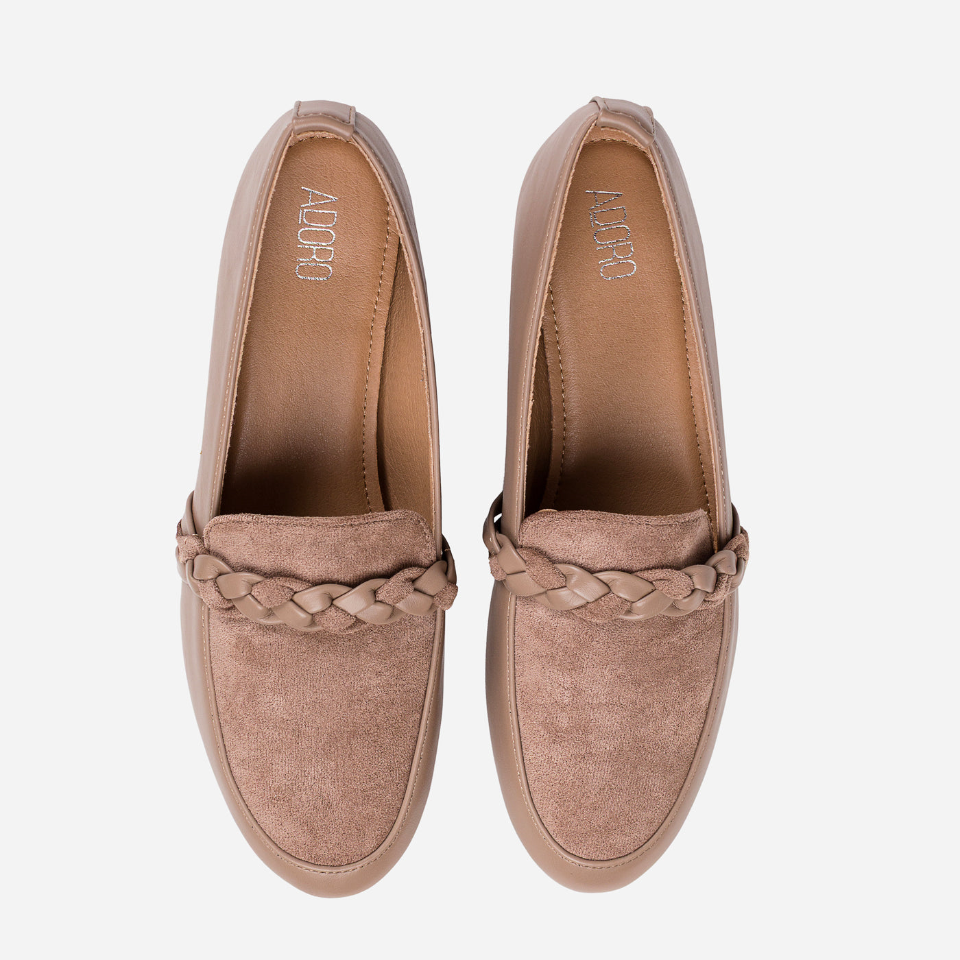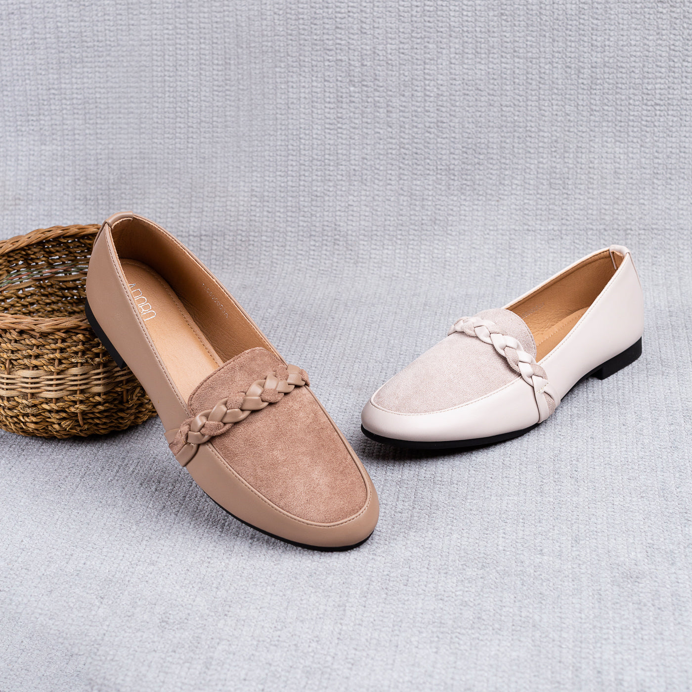 These braided-detail loafers bring a perfect blend of elegance and everyday ease. The smooth faux leather paired with the velvety suede panel creates a beautiful contrast, stylish, and effortlessly chic.