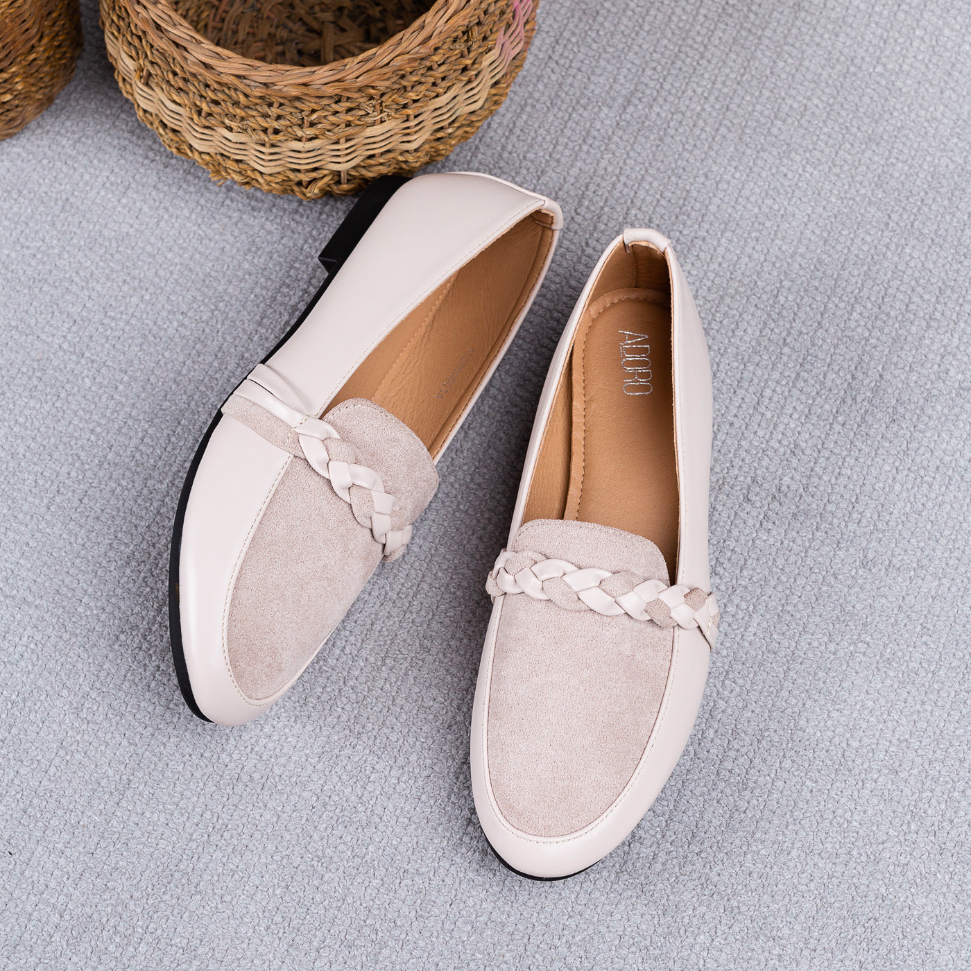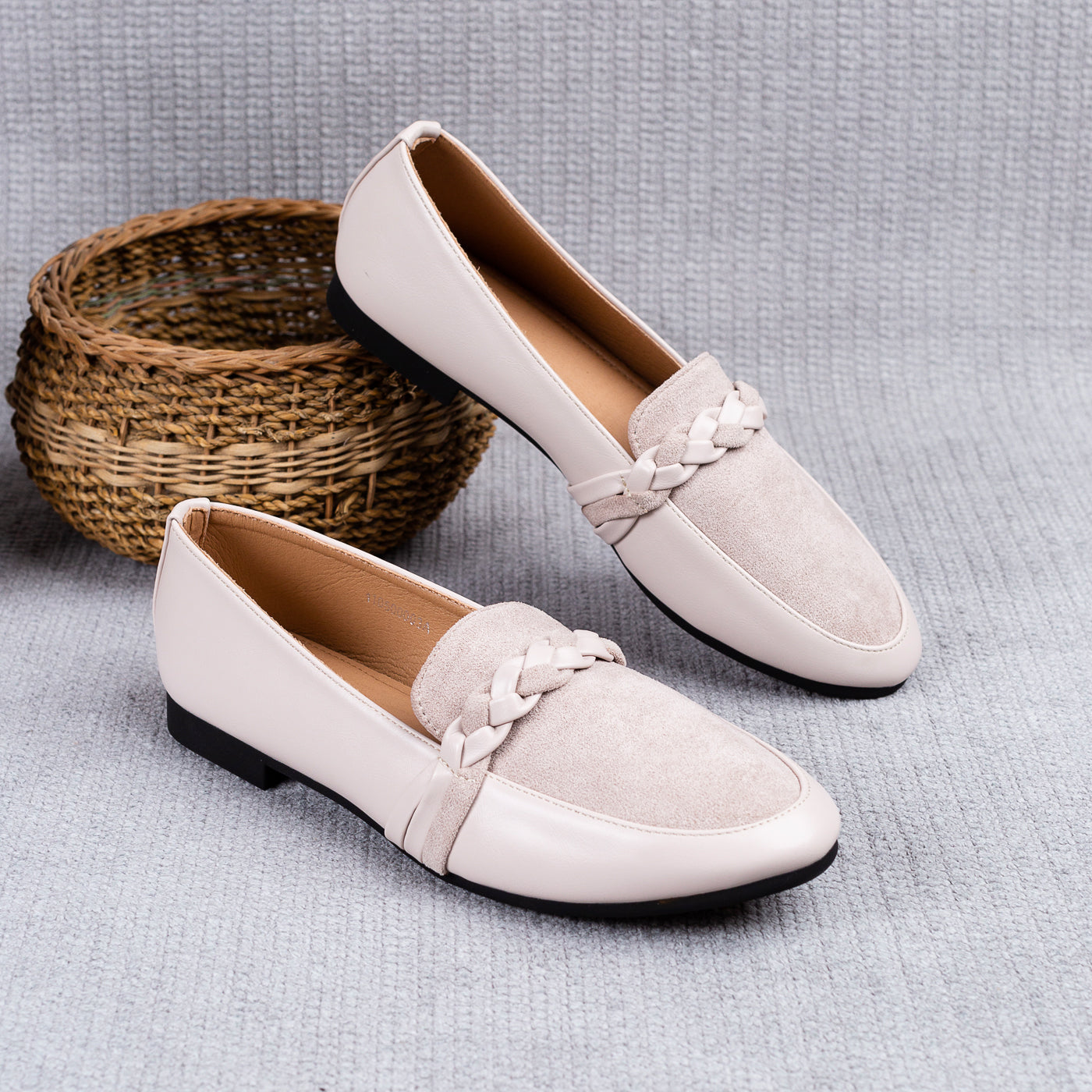 These beige braided-detail loafers are the perfect blend of chic style and everyday comfort. The smooth finish pairs beautifully with the velvety suede front, while the woven braid adds a touch of crafted elegance. Soft, neutral, and refined they’re the kind of shoes that elevate your outfit without even trying.