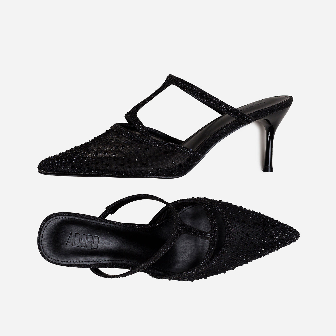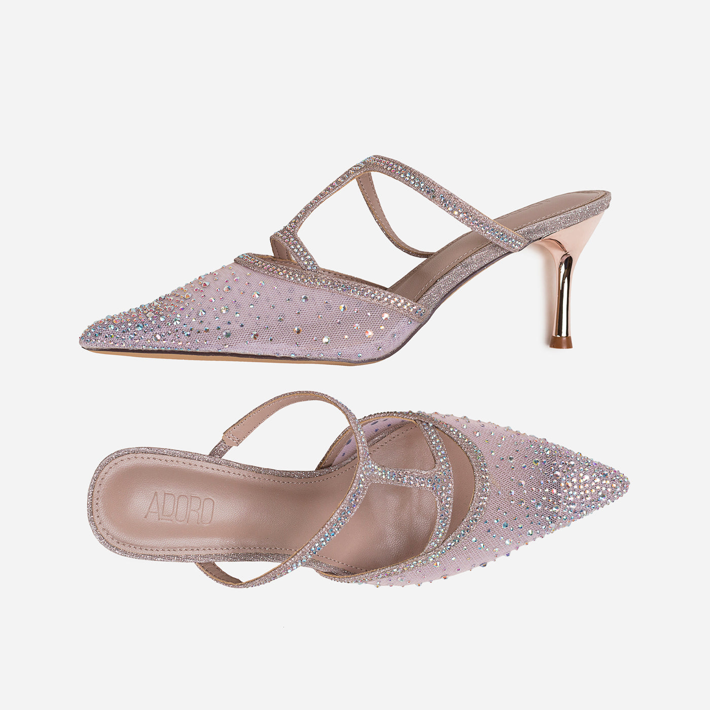 Adoro’s Moonlit Muse pumps embody subtle luxury with a touch of celestial sparkle. Designed with a sleek pointed toe and refined dual straps, these pumps bring a graceful silhouette to every step. The mesh upper is delicately set with shimmering crystals that reflect light like stars in the night sky, creating a radiant finish. A slim stiletto heel adds height and poise, while the cushioned footbed keeps comfort in focus. Whether paired with an evening gown, cocktail dress, or festive attire, Moonlit Muse is the ultimate choice for women who desire elegance with a modern, luminous edge.