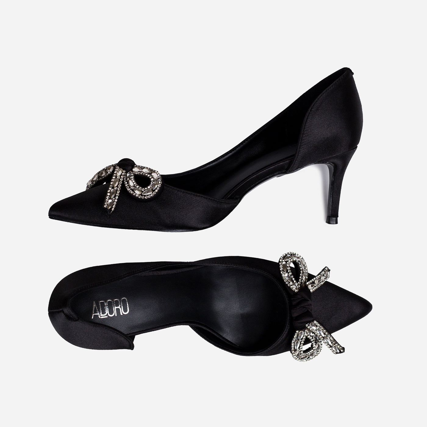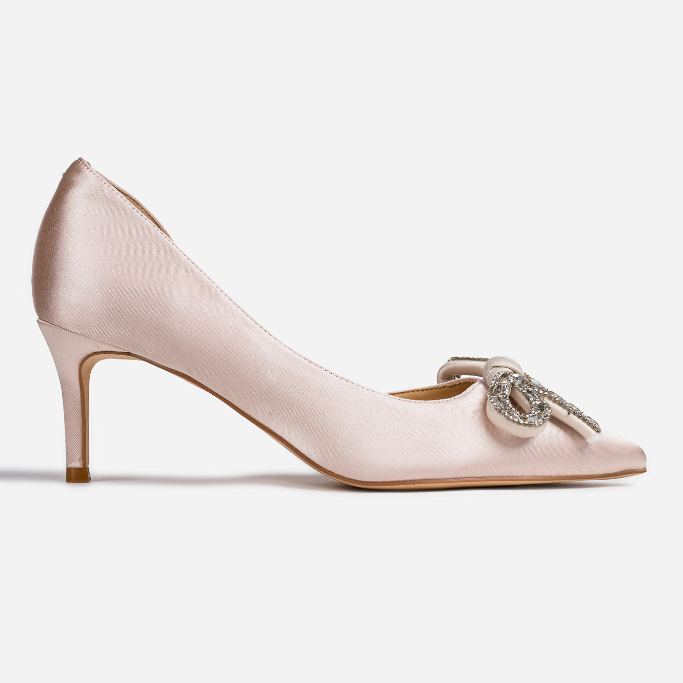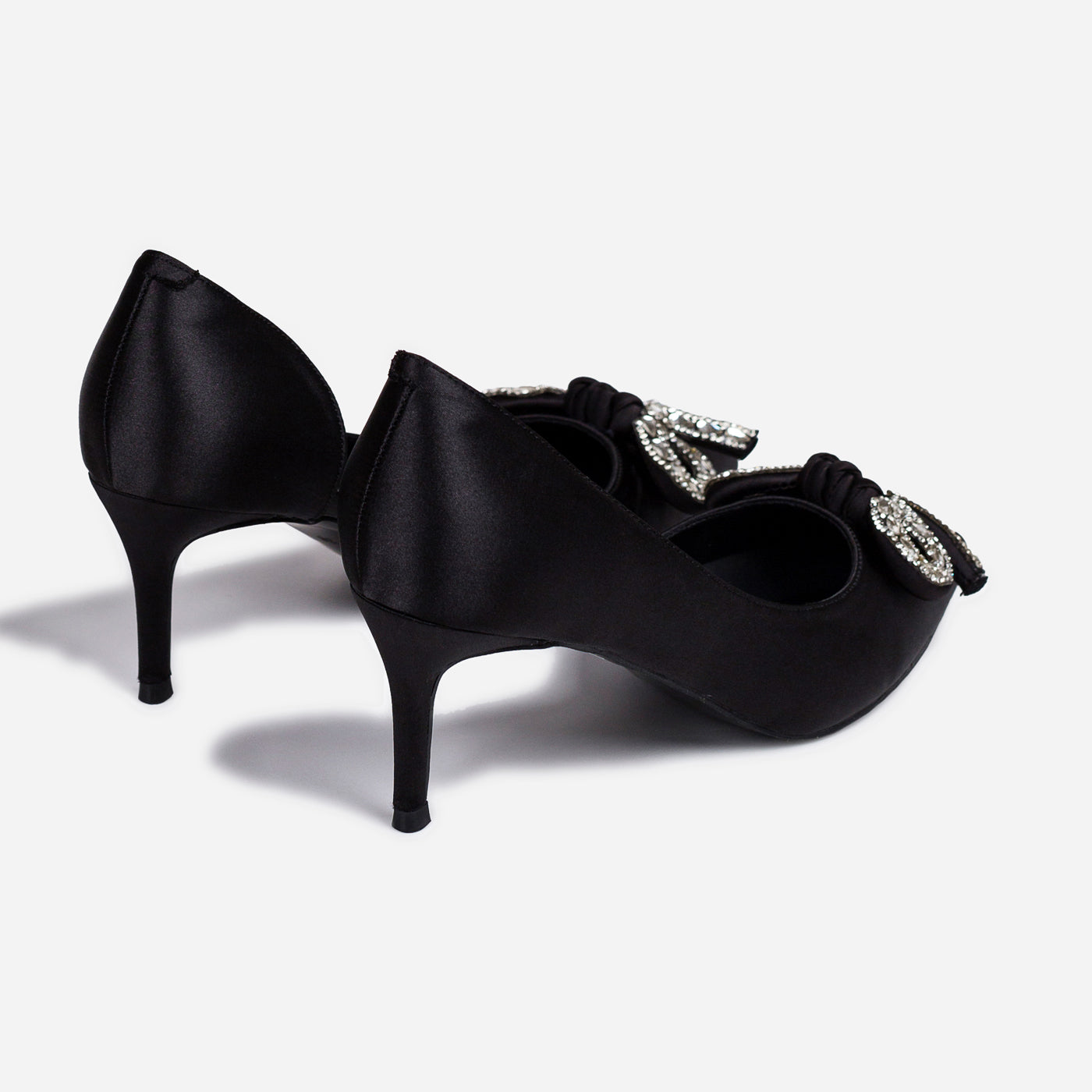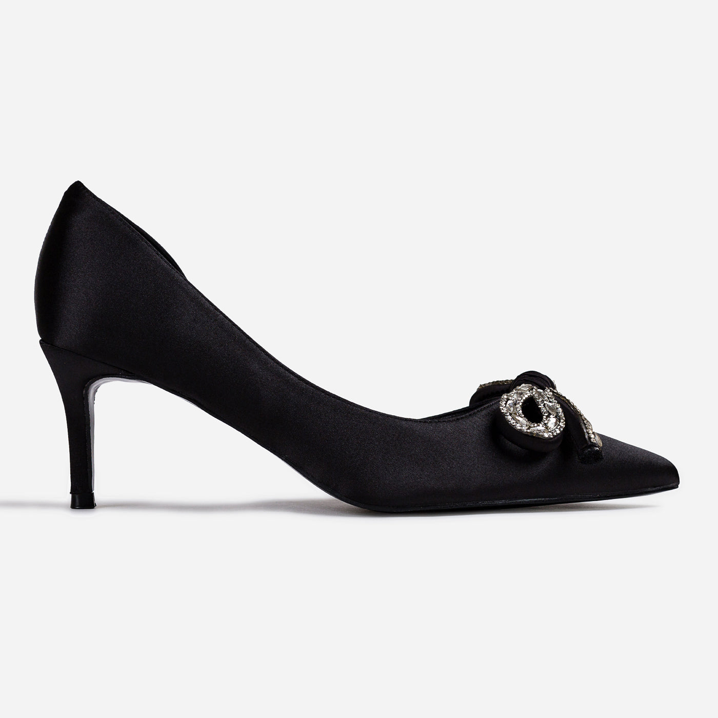 Grace Loop embodies timeless sophistication with a contemporary edge. Crafted from smooth satin, this design features a pointed toe and a delicately embellished bow that adds understated glamour. The mid stiletto heel ensures comfort without compromising elegance, making it perfect for formal occasions, festive gatherings, or evening events. With its sleek silhouette and graceful detailing, Grace Loop becomes the ultimate statement piece for the modern woman.