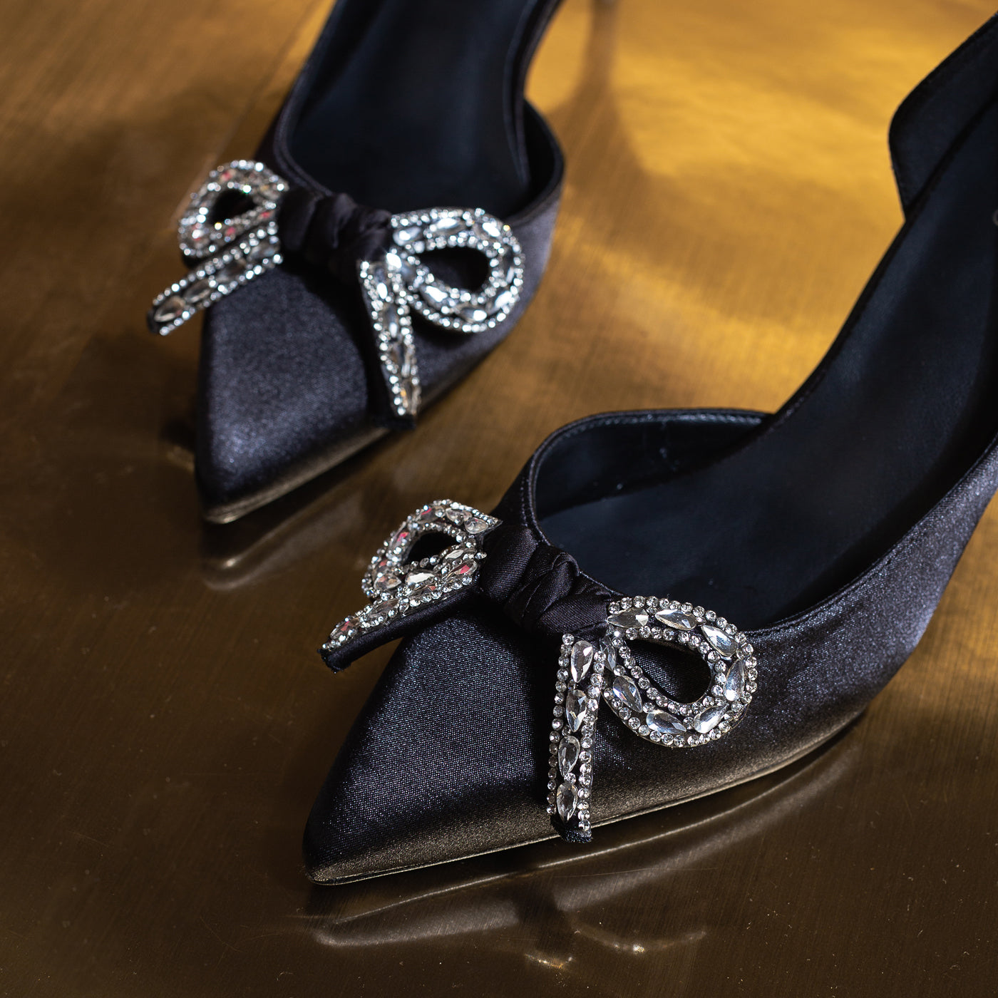 - Finish: Satin with Crystal Bow Accent