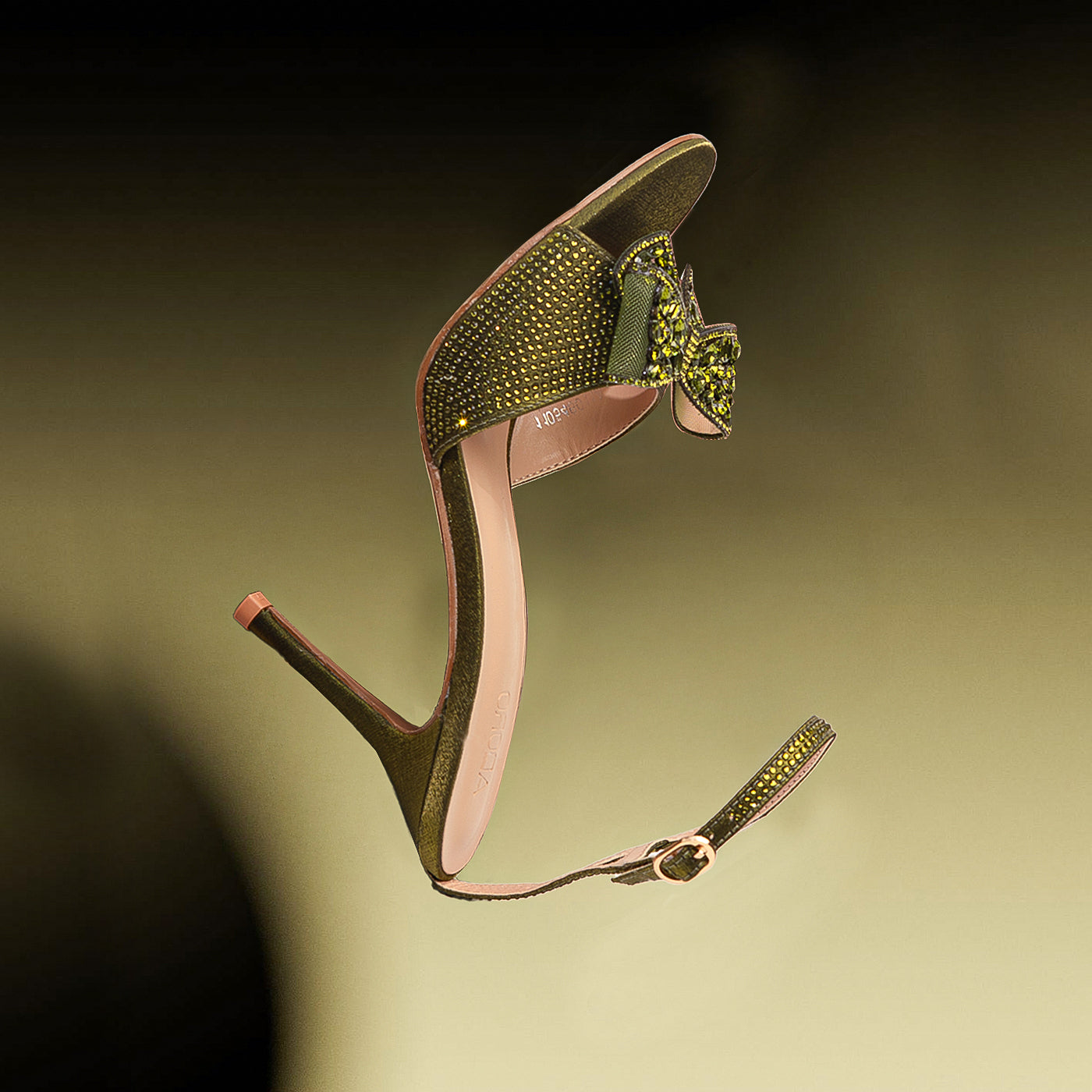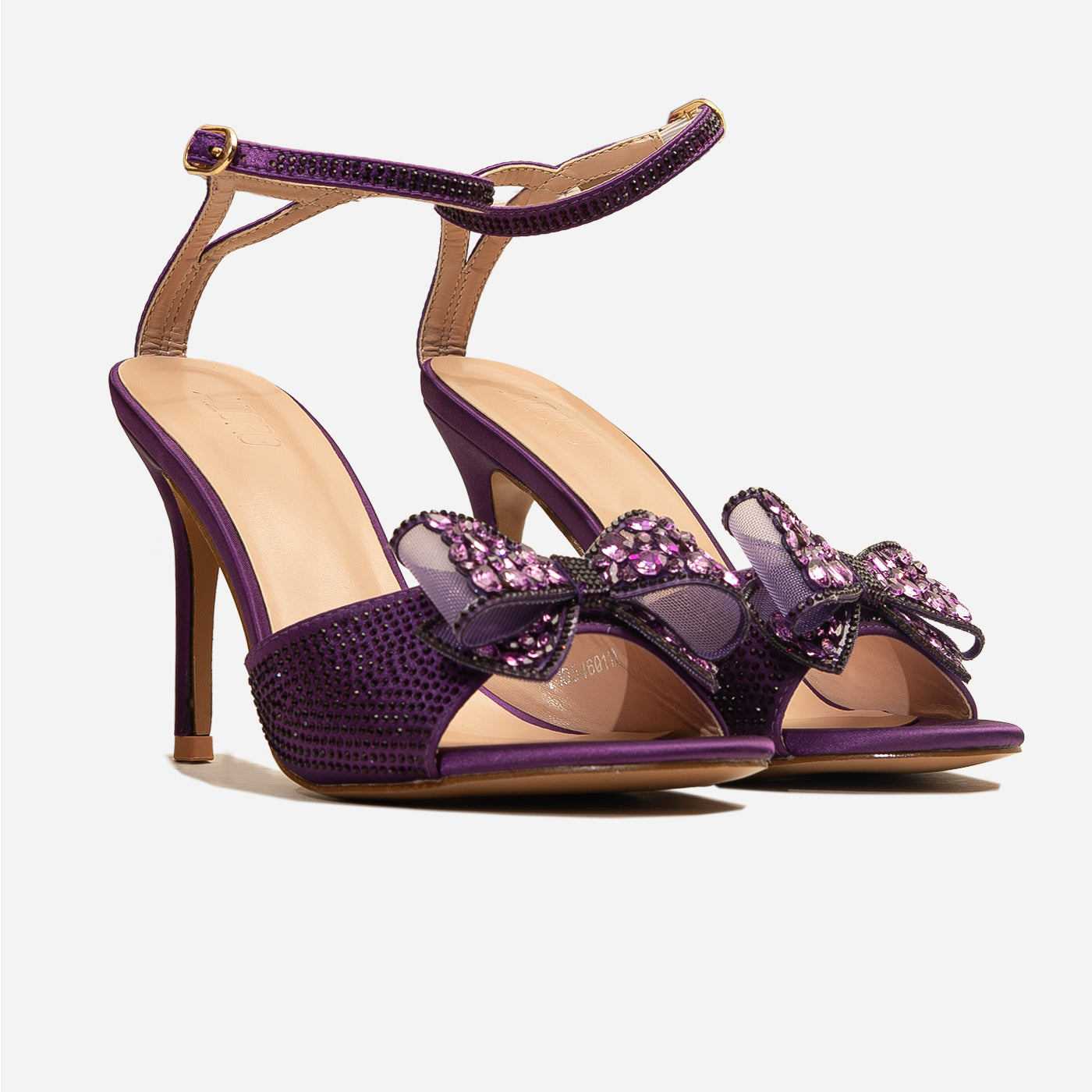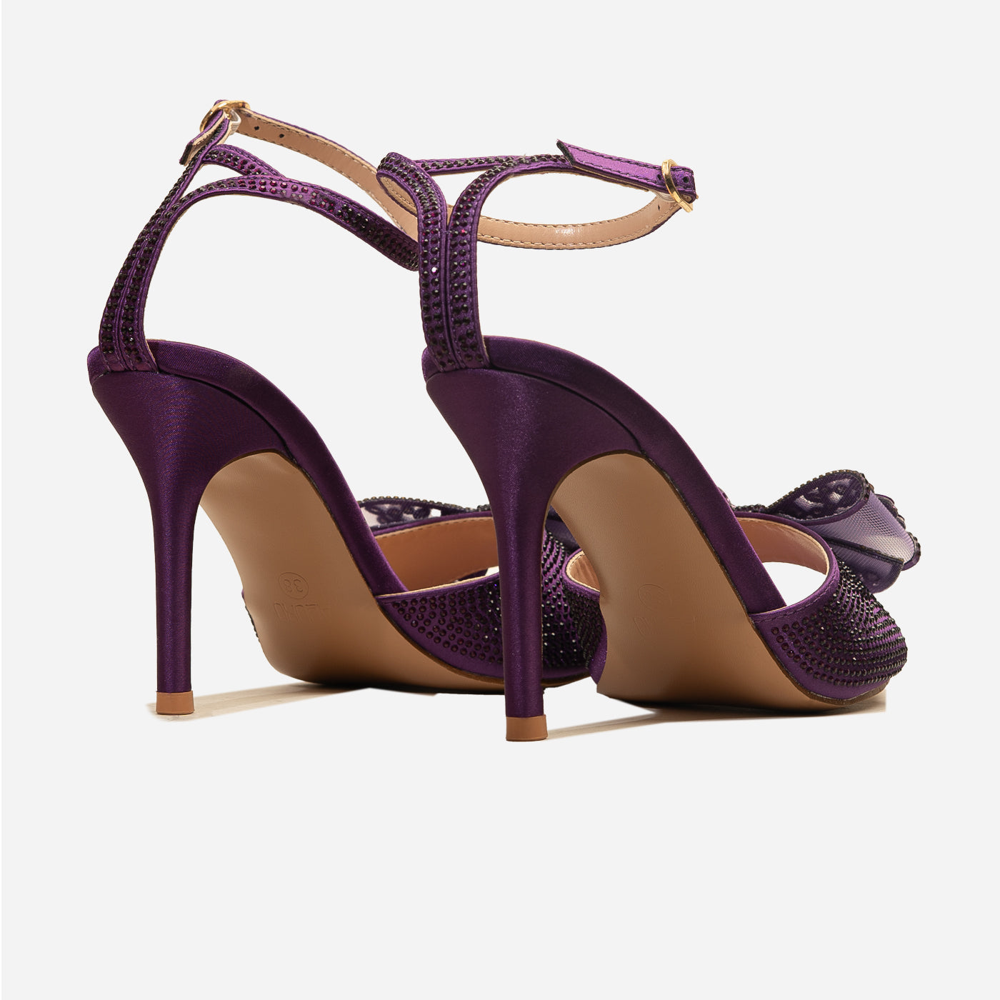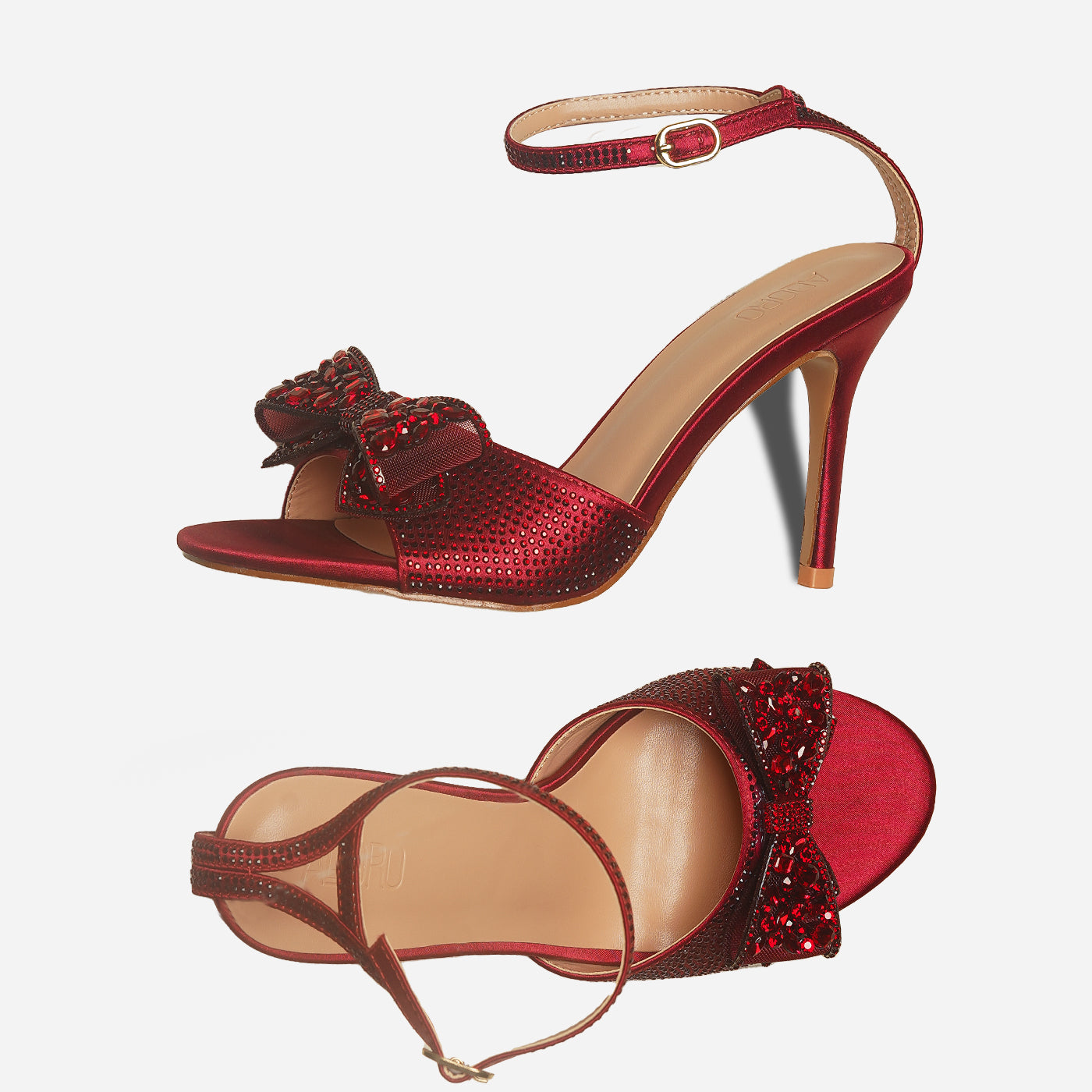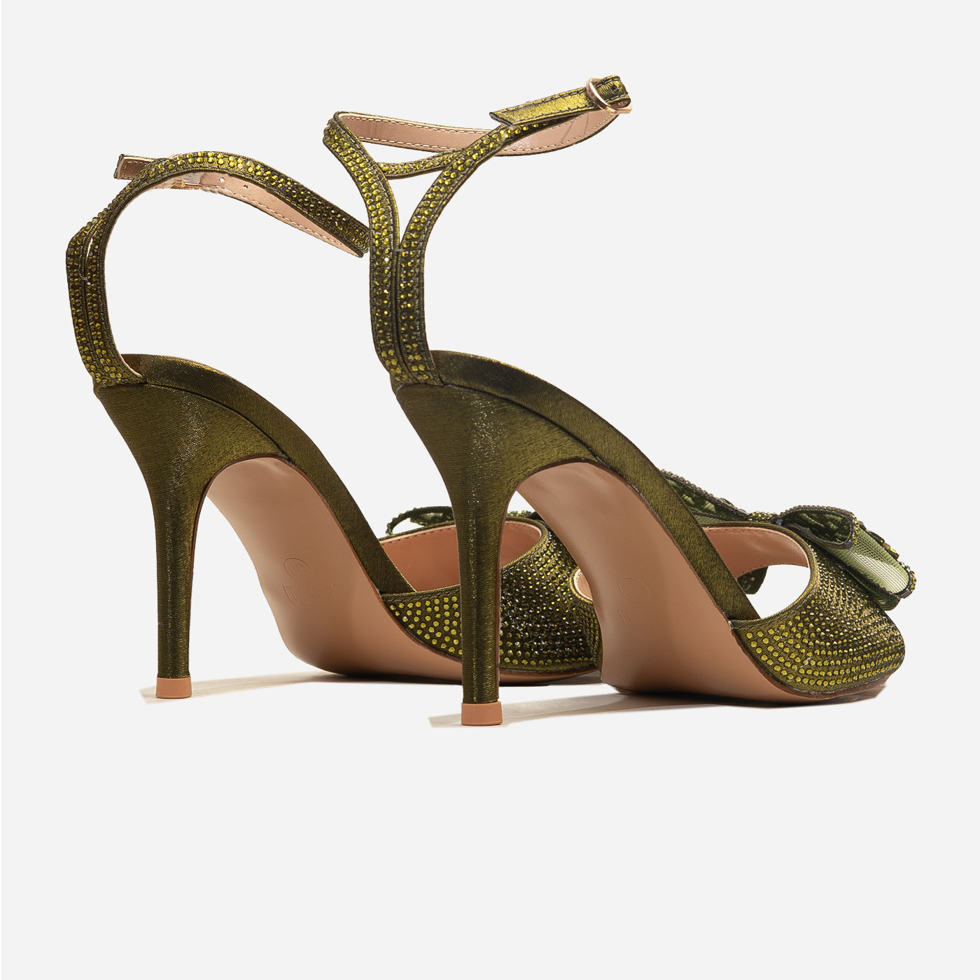 Embrace ultimate elegance with the Adoro "Noir Elegance" Party Sandals. Featuring a black glitter upper and a stunning crystal-adorned bow, these heels exude after-dark sophistication. The high stiletto heel provides a graceful lift, and the ankle strap ensures a comfortable and secure fit for all your Lahore celebrations.