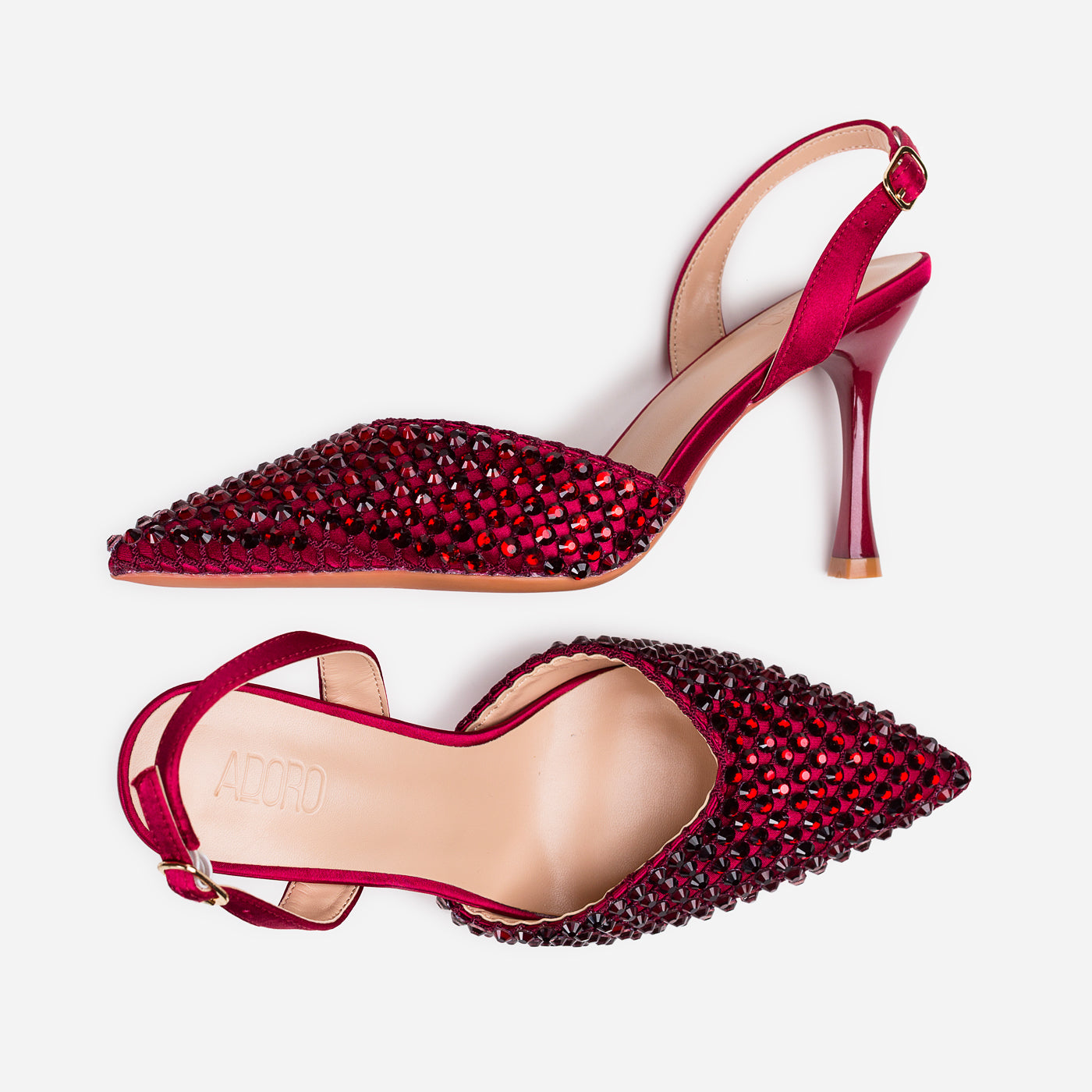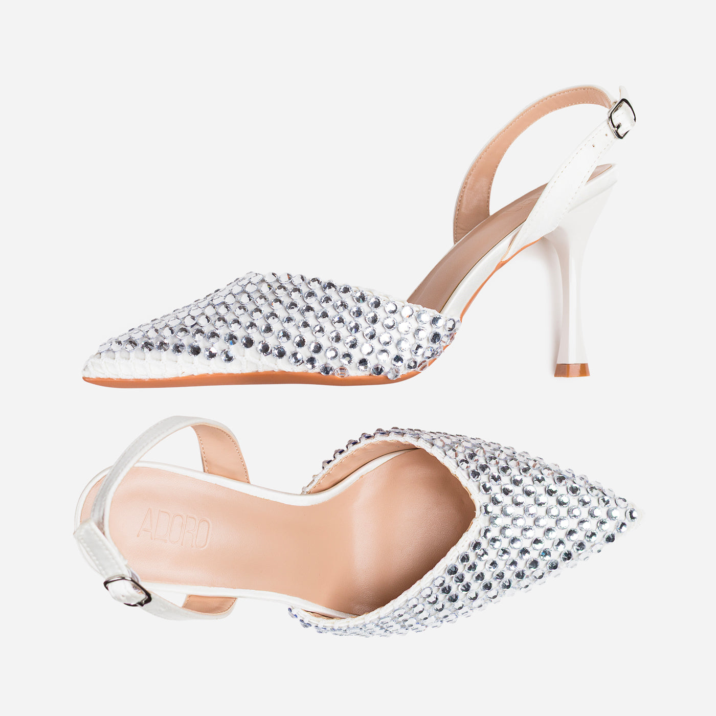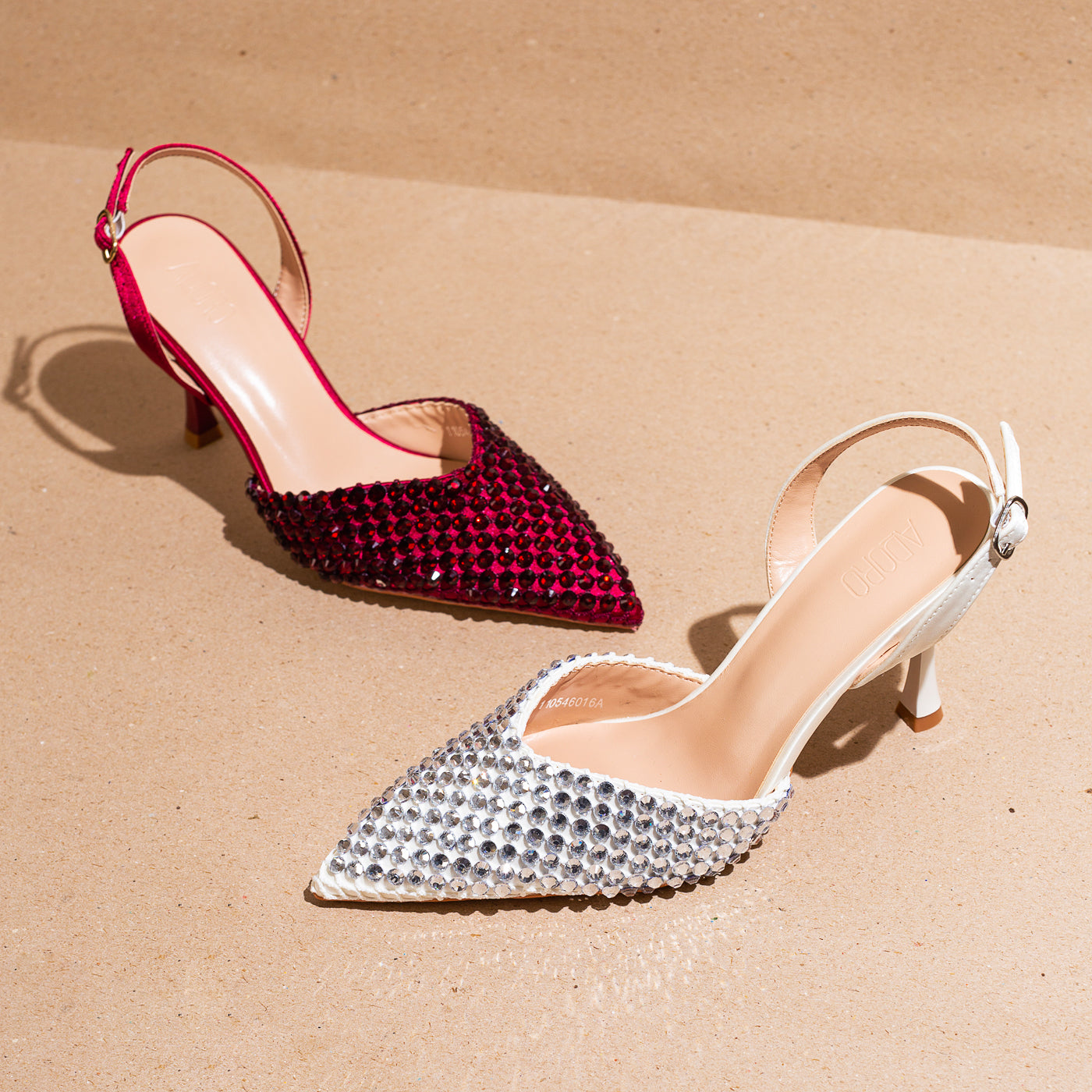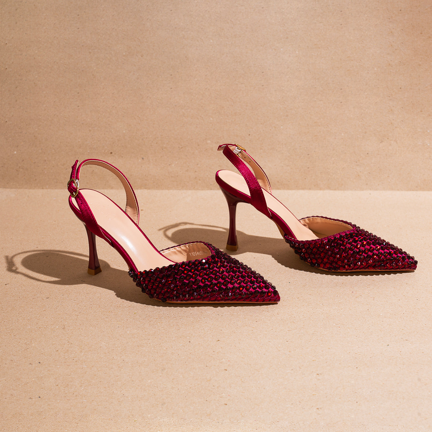 Classic elegance with modern sparkle these heels feature a sleek silhouette adorned with dazzling crystal embellishments, adding instant glamour to every step. Perfectly sculpted for evenings that call for sophistication and shine.