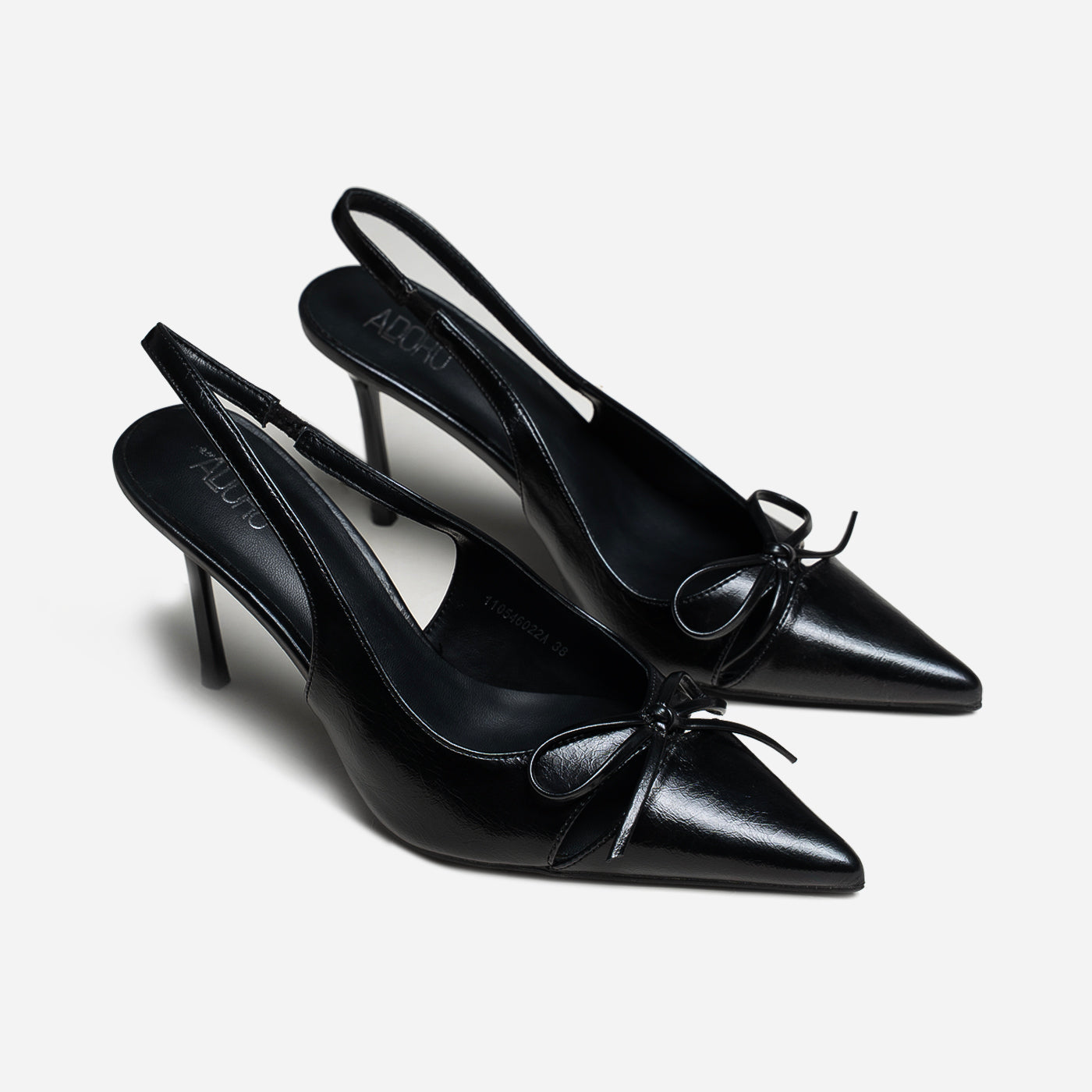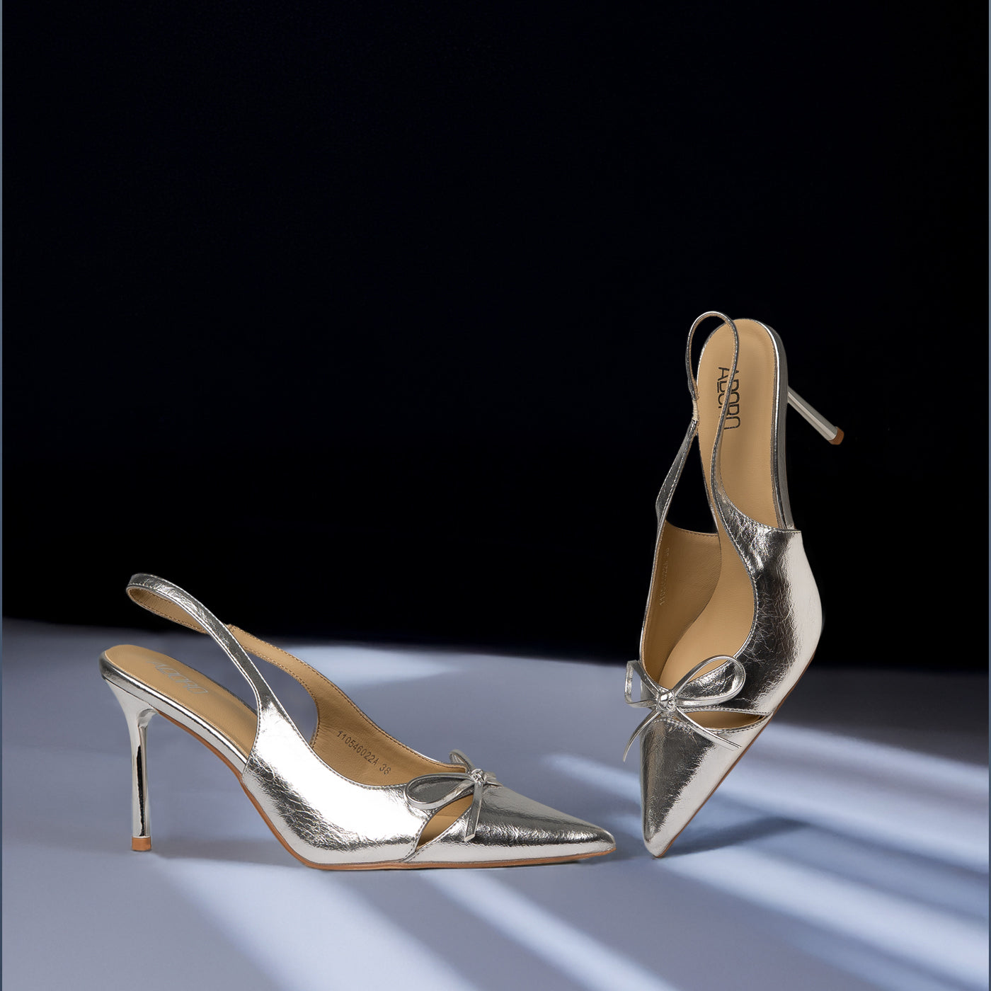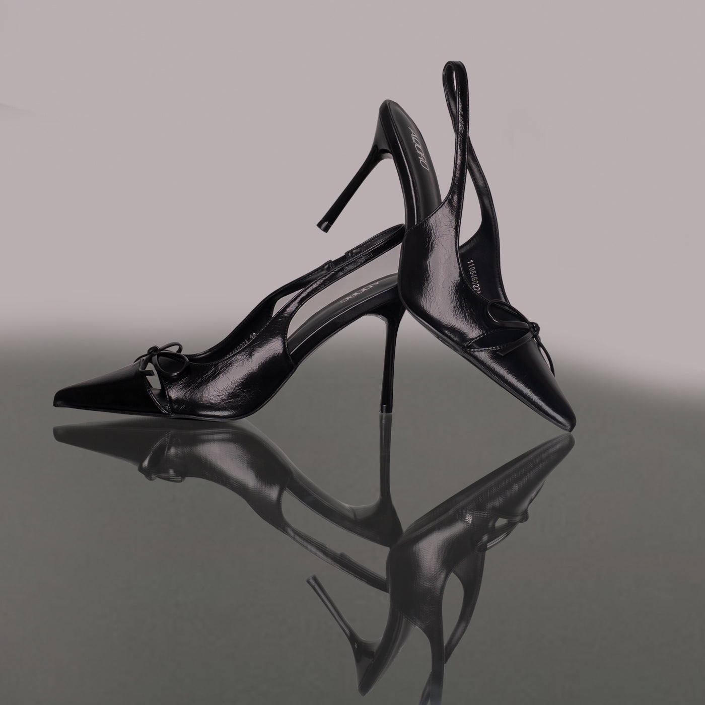 A timeless silhouette meets subtle charm these sleek slingback heels feature a delicate front bow and a polished pointed toe for a look that's quietly captivating. Sophisticated and versatile, they're the perfect pair for evenings out, formal dinners, or elevating everyday chic.
