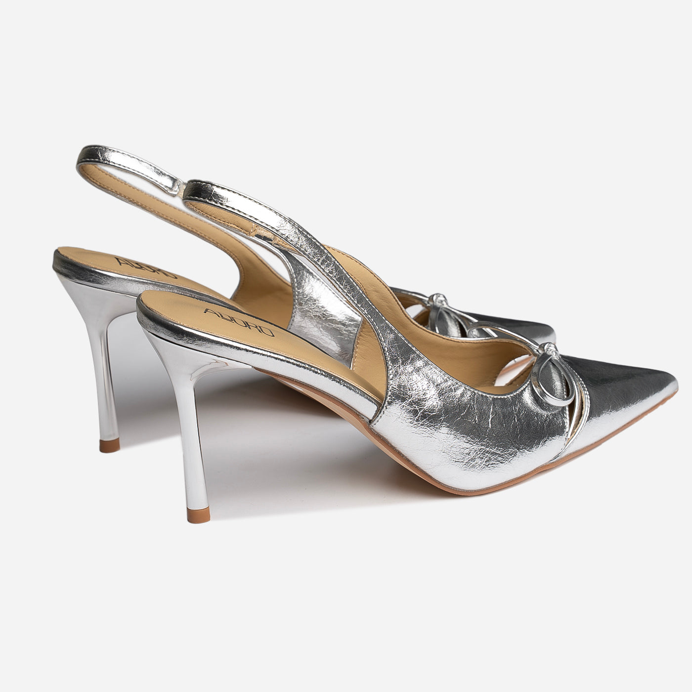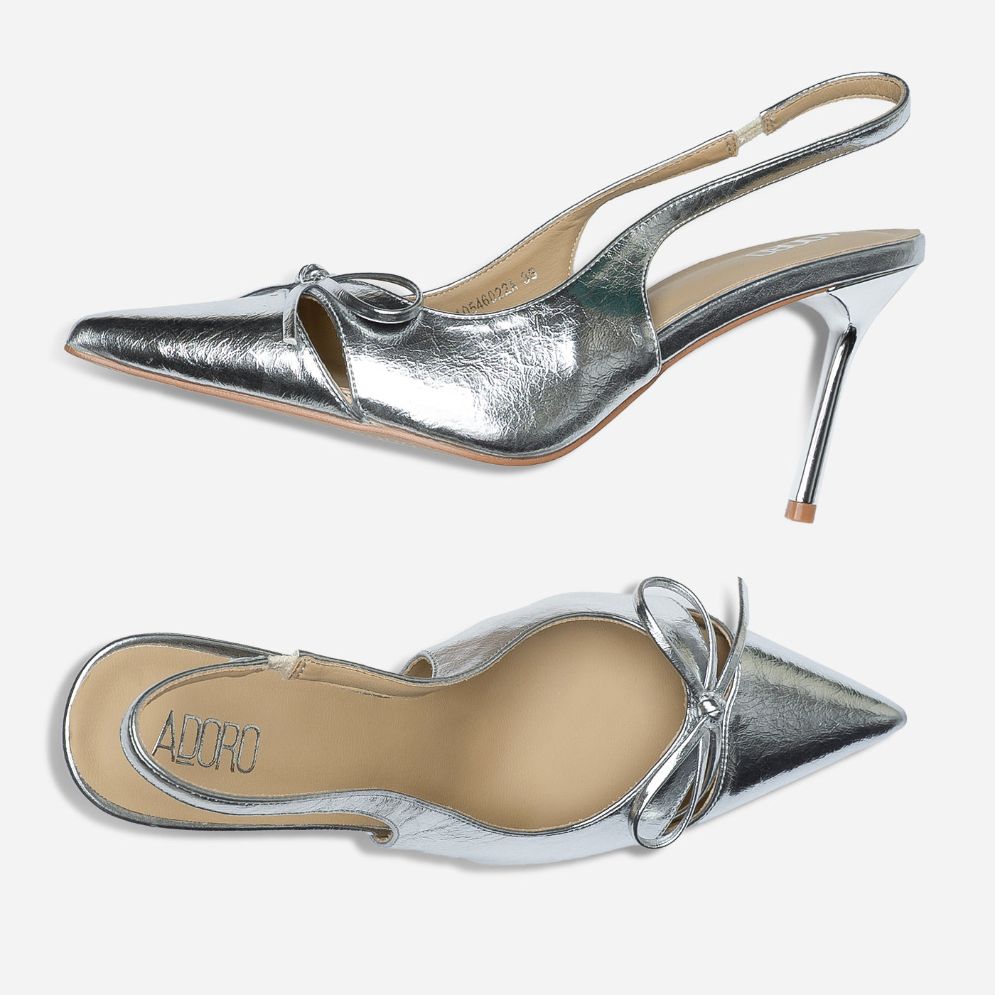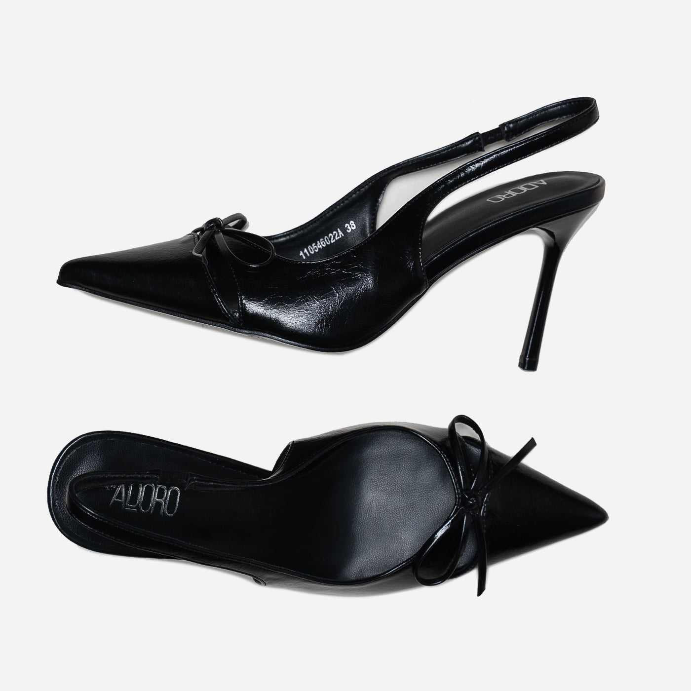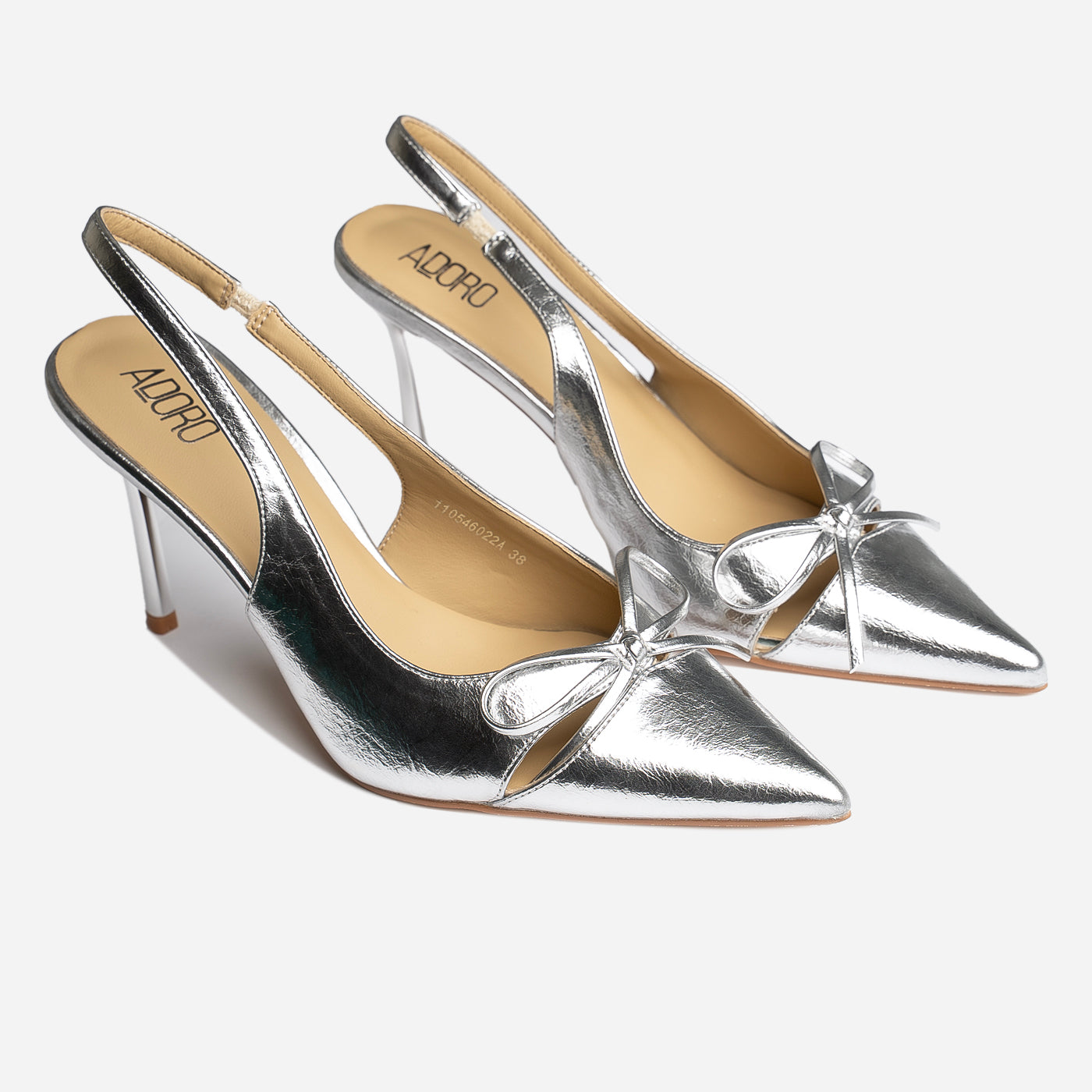 A timeless silhouette meets subtle charm these sleek slingback heels feature a delicate front bow and a polished pointed toe for a look that's quietly captivating. Sophisticated and versatile, they're the perfect pair for evenings out, formal dinners, or elevating everyday chic.