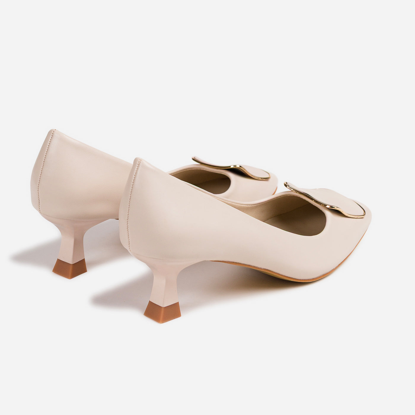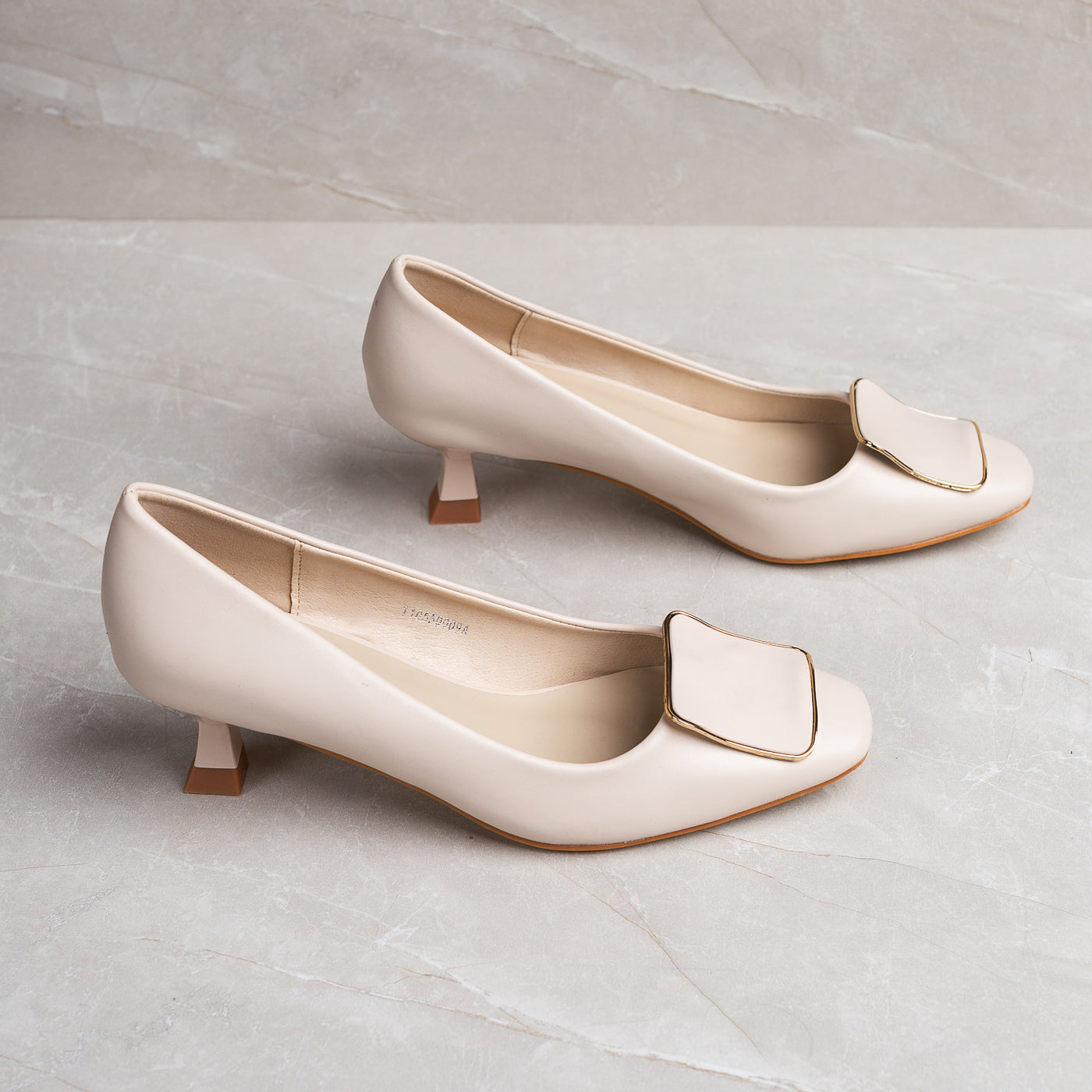 These heel pumps bring a whisper of sophistication to every step refined, feminine, and timeless. The sculpted buckle detail adds a touch of modern artistry, while the gentle curved heel offers comfort without compromising style.