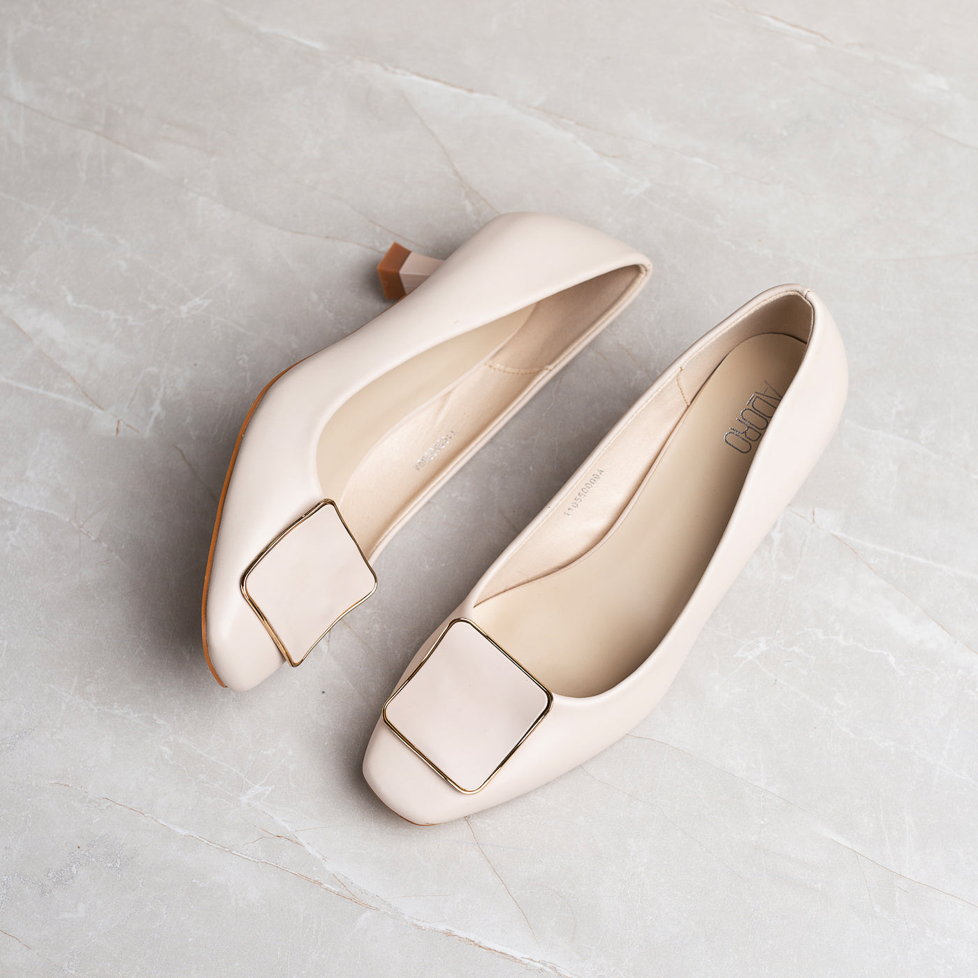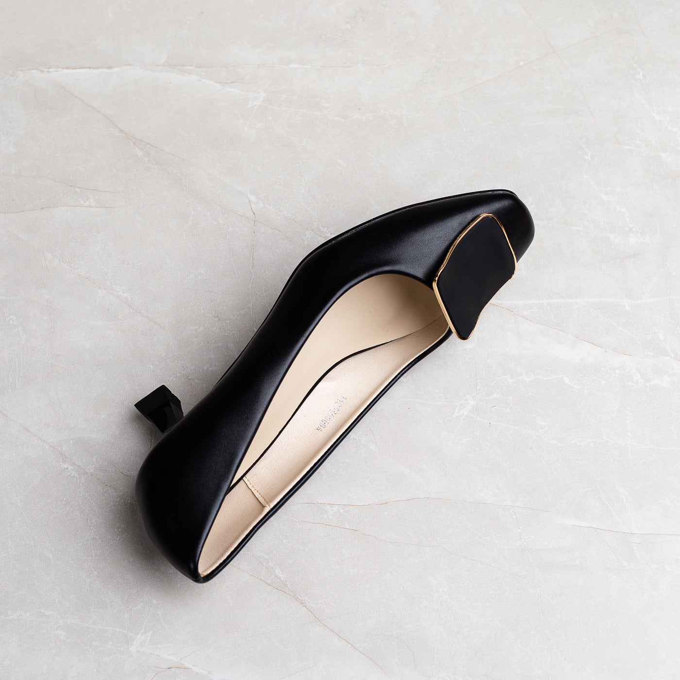 These block-heeled pumps embody refined simplicity, smooth contours, a sculpted silhouette, and a bold square buckle that adds just the right touch of modern polish. Feminine yet grounded, they offer understated luxury that transitions from boardroom poise to evening charm with effortless grace.