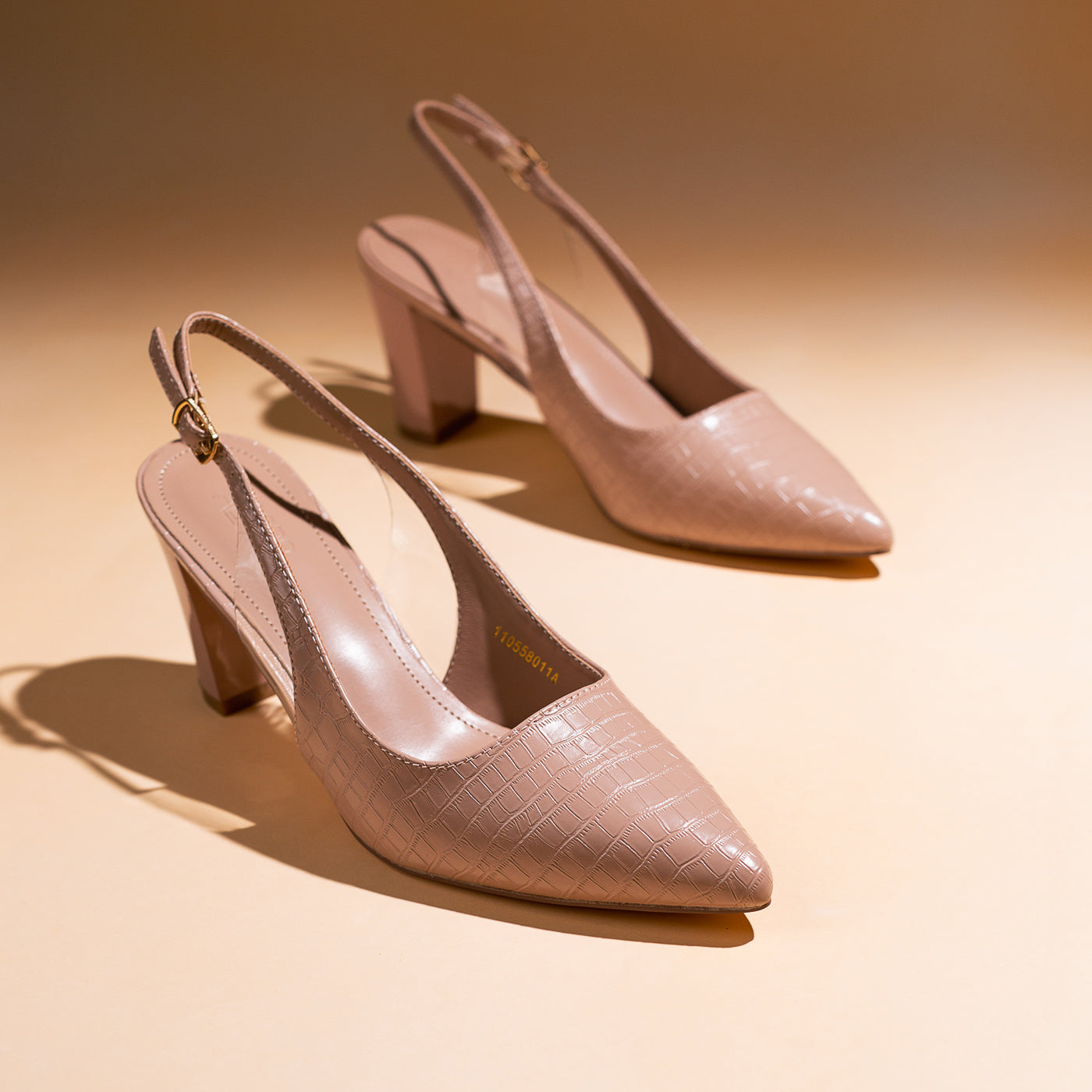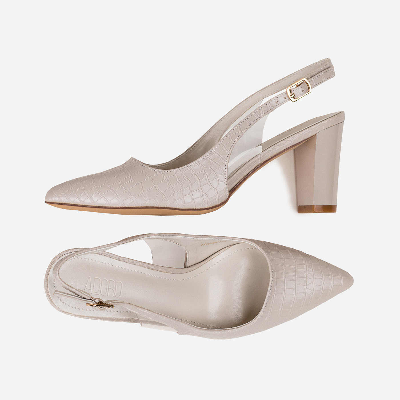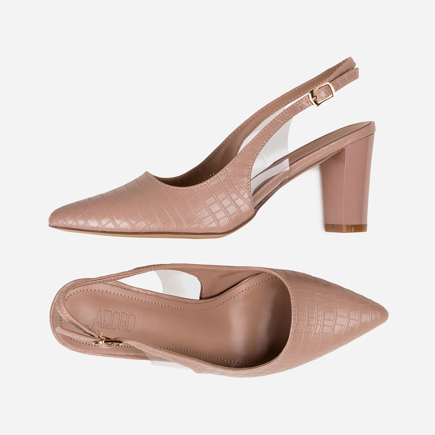 Step into sophistication with Adoro’s Urban Sleek pumps, crafted for modern elegance and everyday confidence. Featuring a pointed toe and slingback strap, these pumps combine timeless style with a structured silhouette. The croc-textured upper adds a touch of refinement, while the sturdy block heel ensures both comfort and stability. Perfect for office wear, dinners, or semi-formal events, these pumps are a versatile choice for the contemporary woman who values understated style with a polished edge.