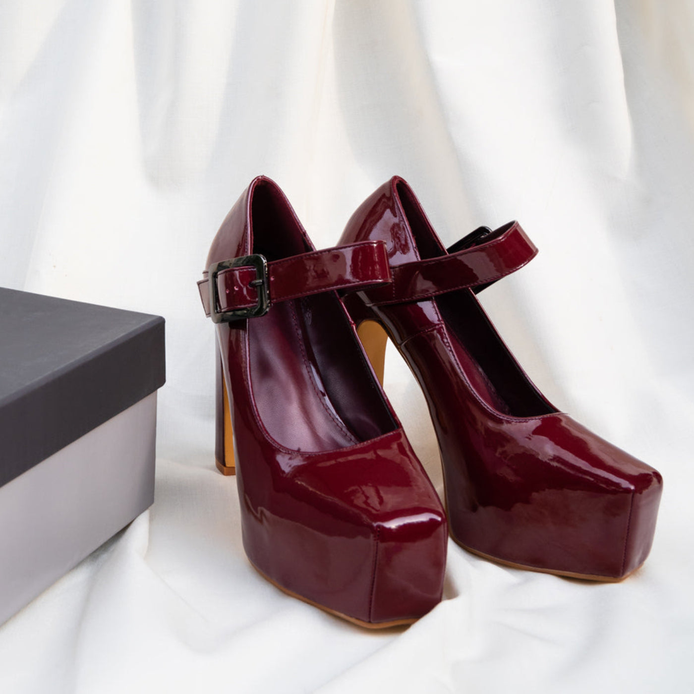 Introducing our statement-making 5-Inch Curved Block Heel Pump with Platform Sole – a perfect blend of modern style, comfort, and versatility. The upper of these pumps is meticulously crafted from synthetic patent material, providing a sleek and polished appearance that demands attention. The close seam detailing on the square toe shape ensures a proper and flattering fit, giving your feet a refined silhouette. Designed for both style and stability, the 5-inch curved block heel adds height and allure, while the platform sole provides a comfortable and supportive foundation for all-day wear. The unique curvature of the heel adds a contemporary touch, making these pumps a standout choice for any occasion. For added convenience and a touch of edgy flair, a buckle strap is elegantly attached, not only ensuring a secure fit but also contributing to the overall aesthetic appeal. This detail not only enhances the grip but also adds a chic and modern element to the pump.