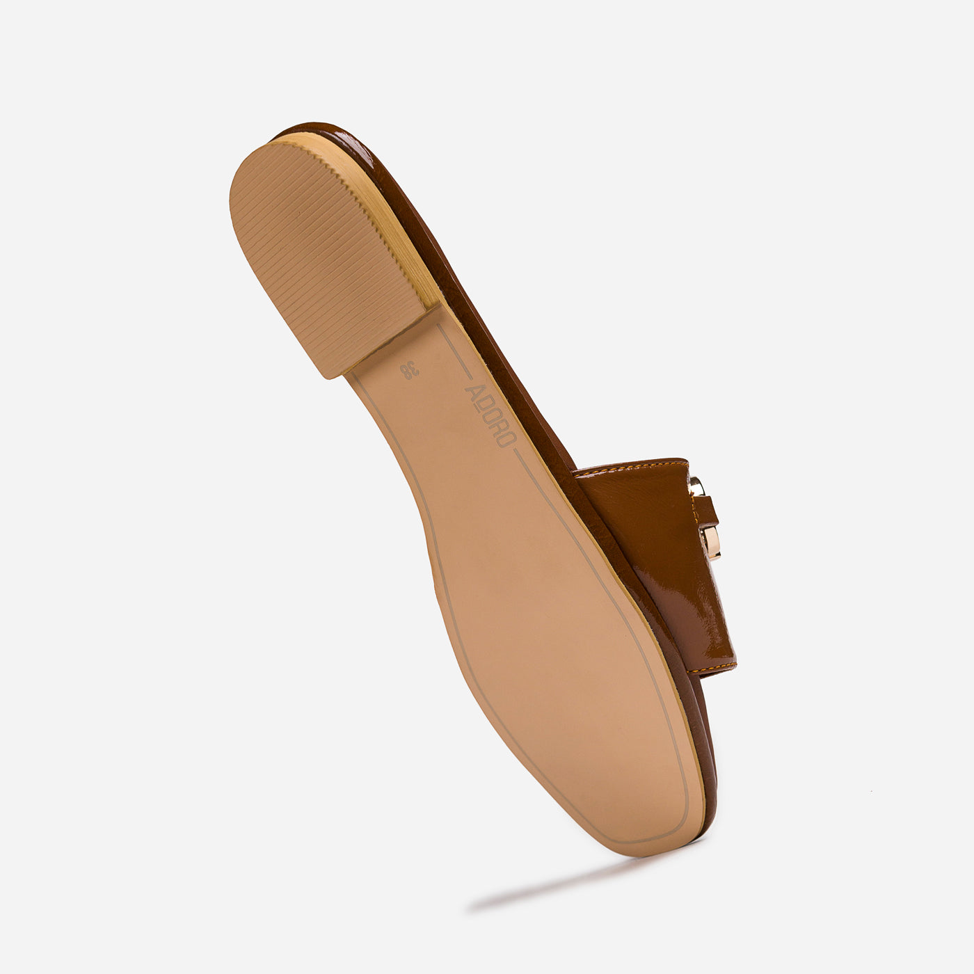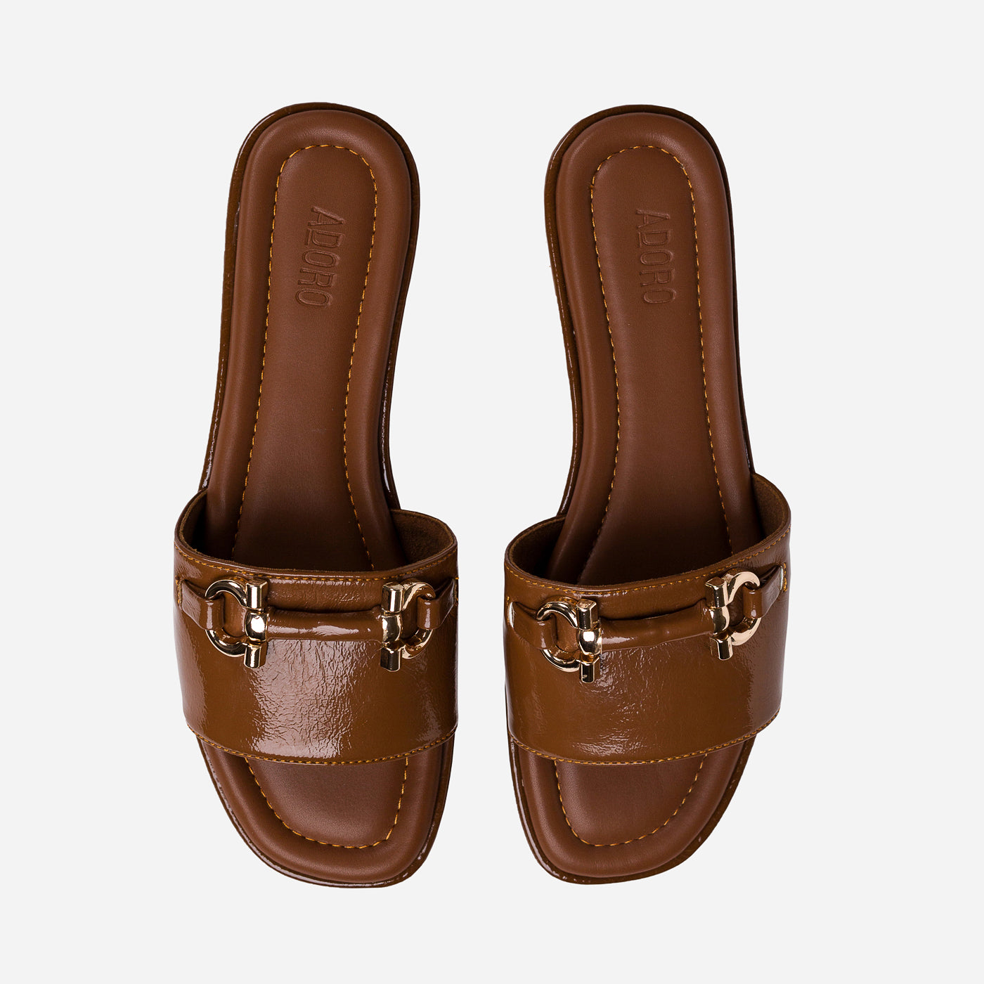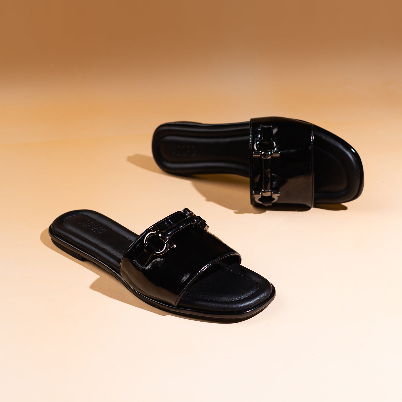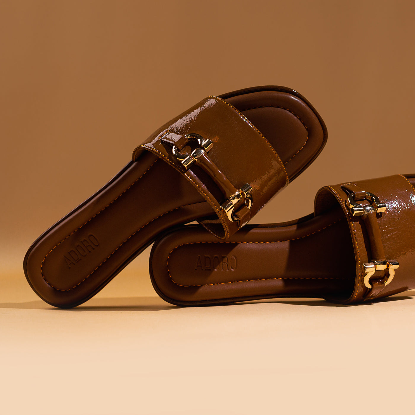 Modern ease meets timeless polish in the Urban Gloss slide. Sculpted from rich patent leather in a deep mocha hue, its sleek silhouette exudes quiet confidence. The gold-tone horse-bit detail gleams against the high-shine finish, lending a touch of equestrian chic to contemporary minimalism. With plush cushioning and clean architectural lines, this piece transitions seamlessly from sunlit strolls to elegant evenings. Urban Gloss — where luxury rests in simplicity, and sophistication walks with ease.