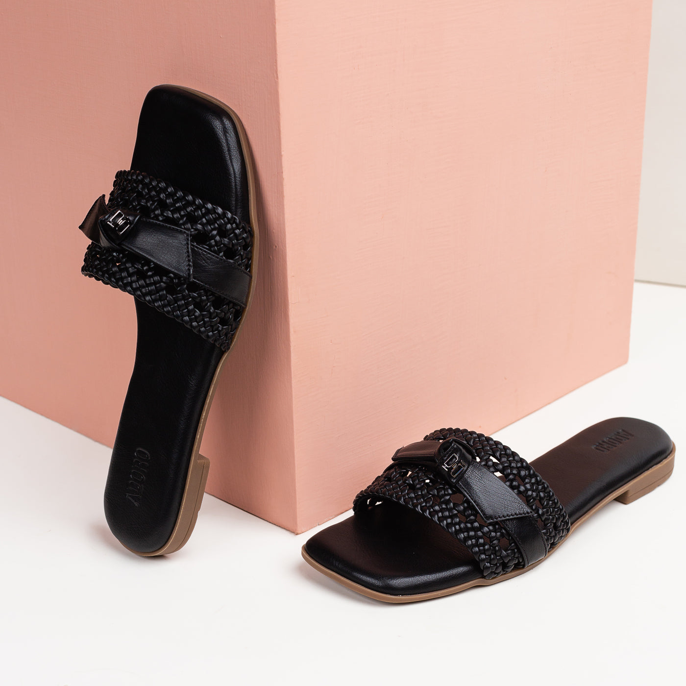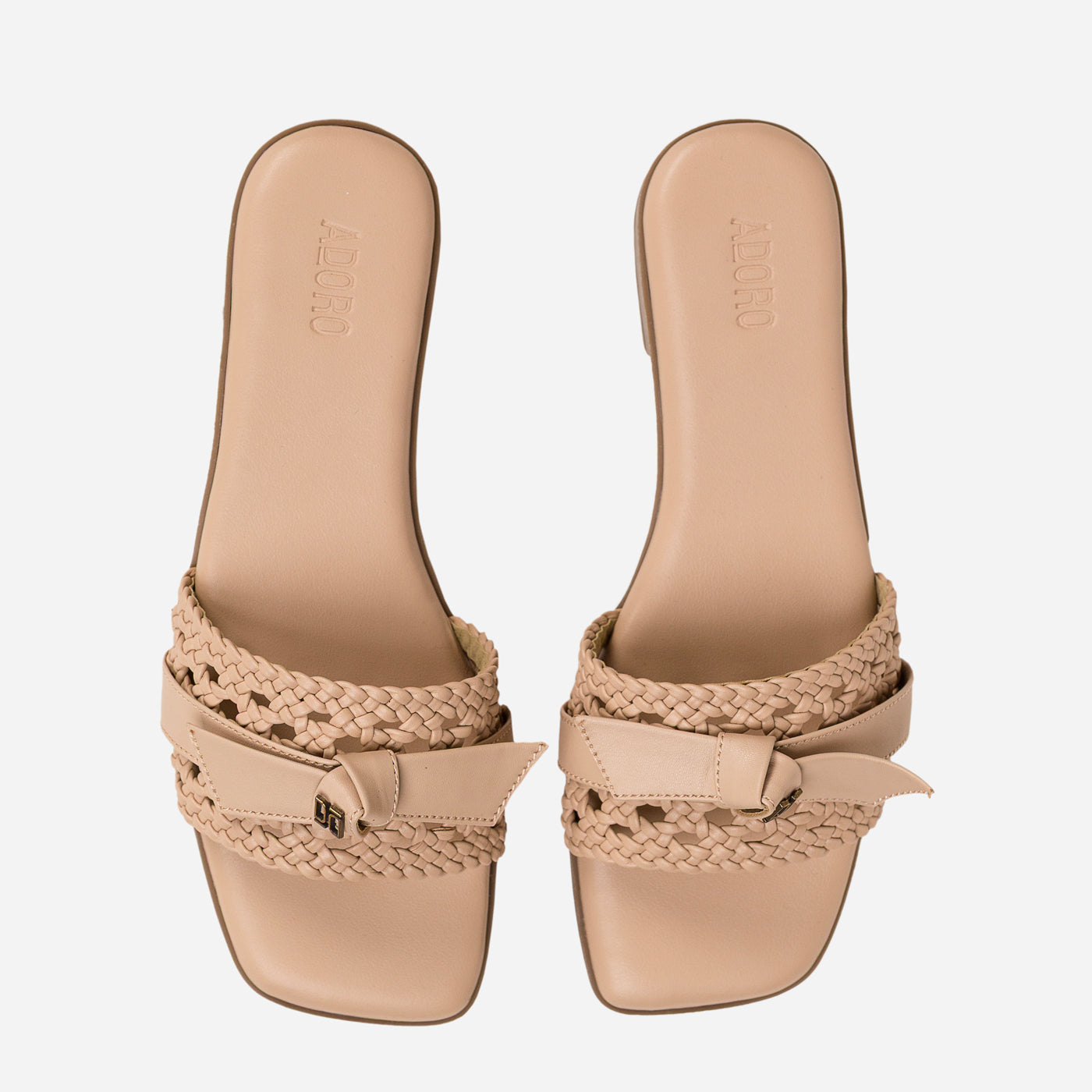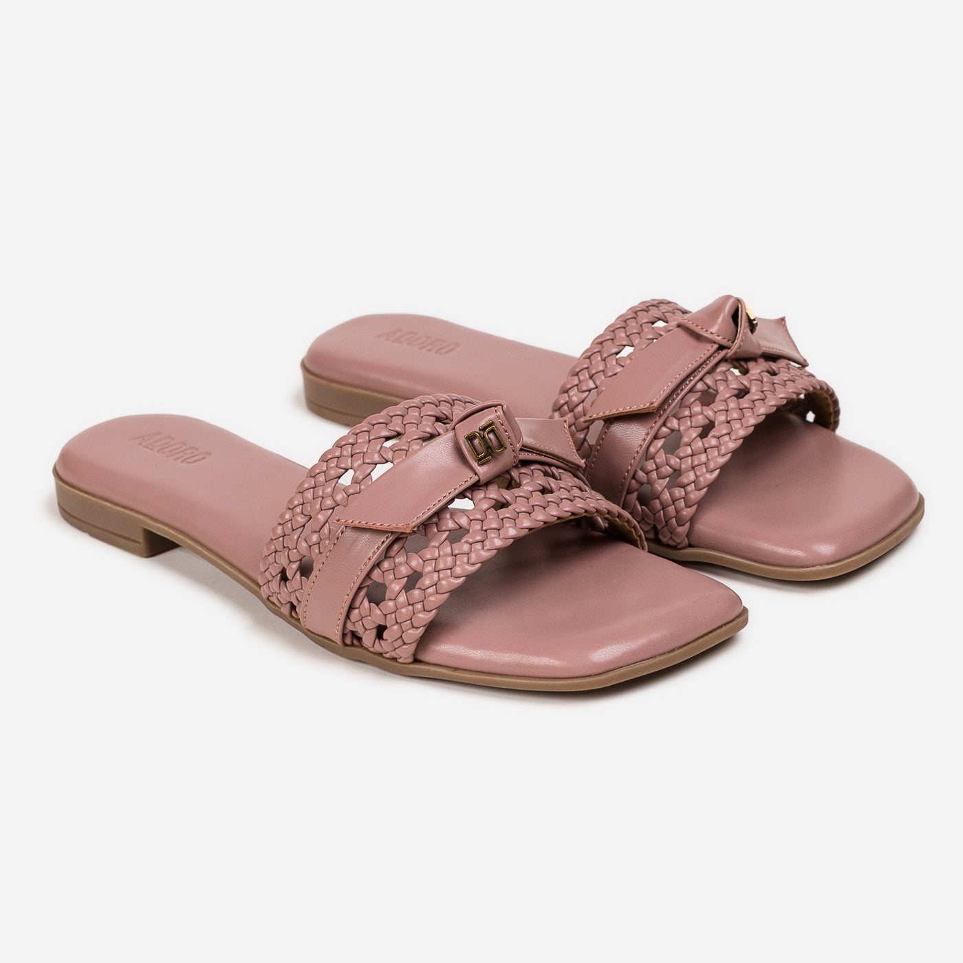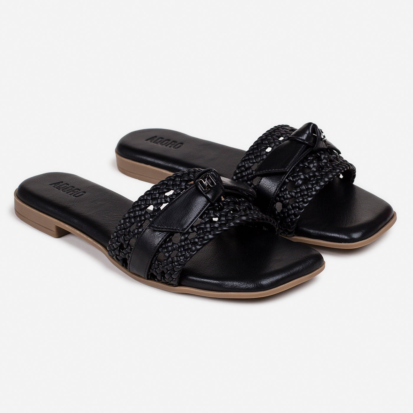 The Serene Weave slides by Adoro are a perfect blend of comfort and sophistication. Featuring an intricately braided strap with a chic buckle accent, these slides bring texture and elegance to casual wear. The slip-on design ensures effortless ease, while the cushioned footbed provides superior comfort for all-day wear. Crafted with a sleek silhouette and a modern square toe, they offer a polished yet relaxed finish that complements both laid-back and semi-formal looks. Whether styled with flowy dresses, tailored pants, or weekend denim, the Serene Weave slides are a versatile choice that adds understated luxury to every step.