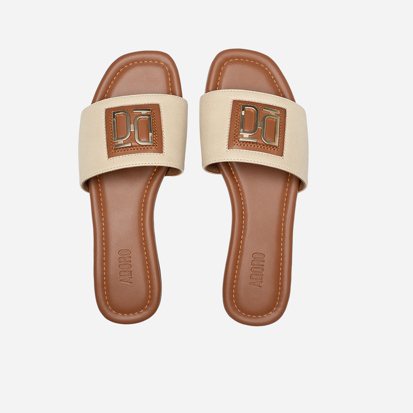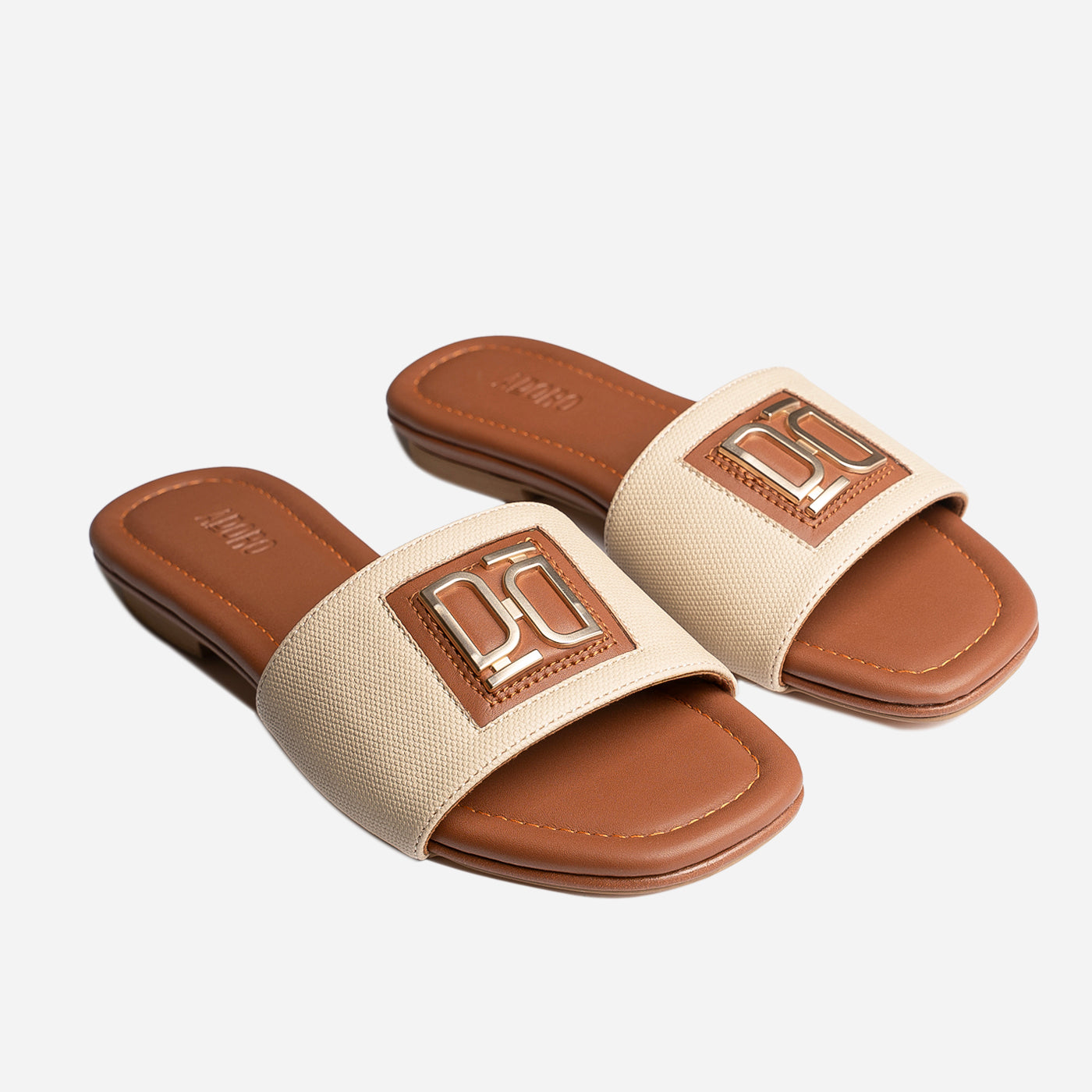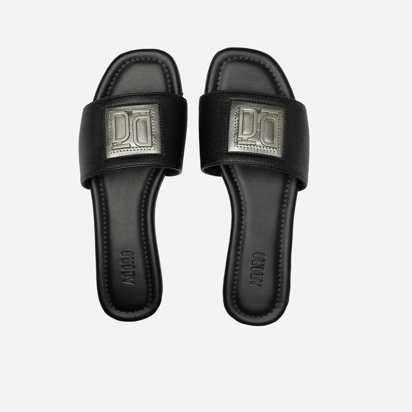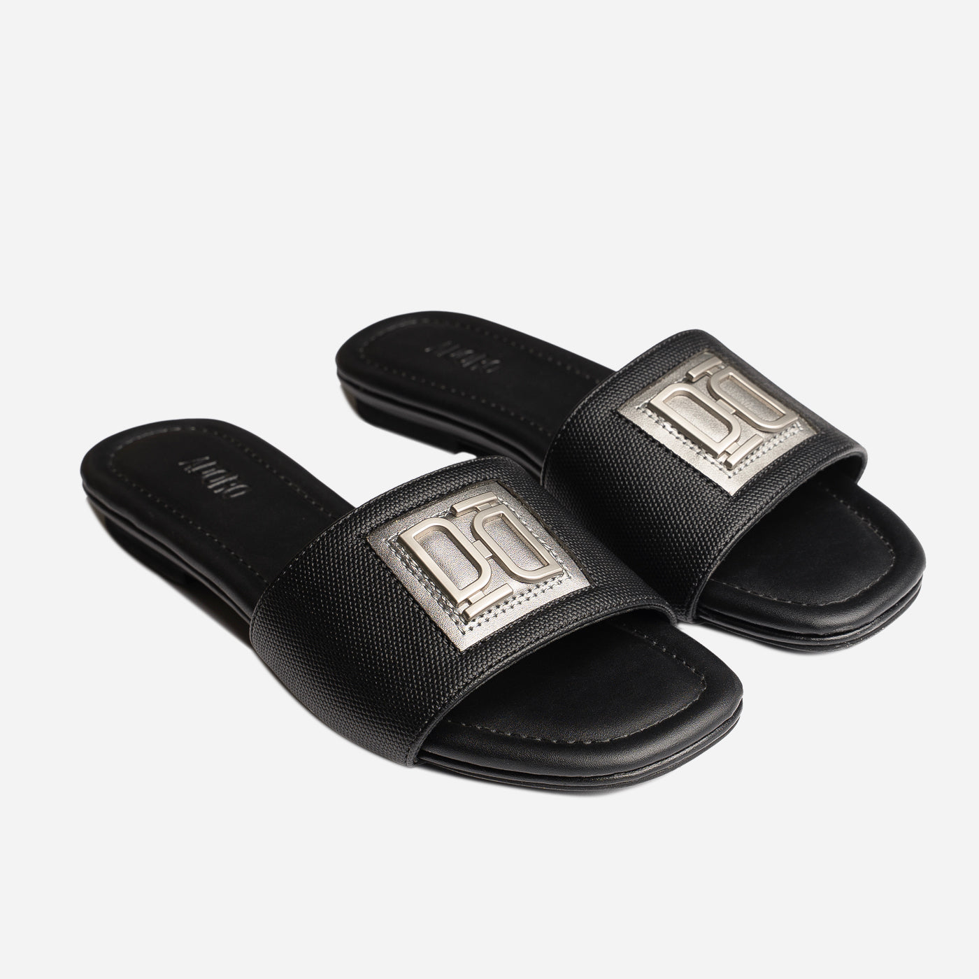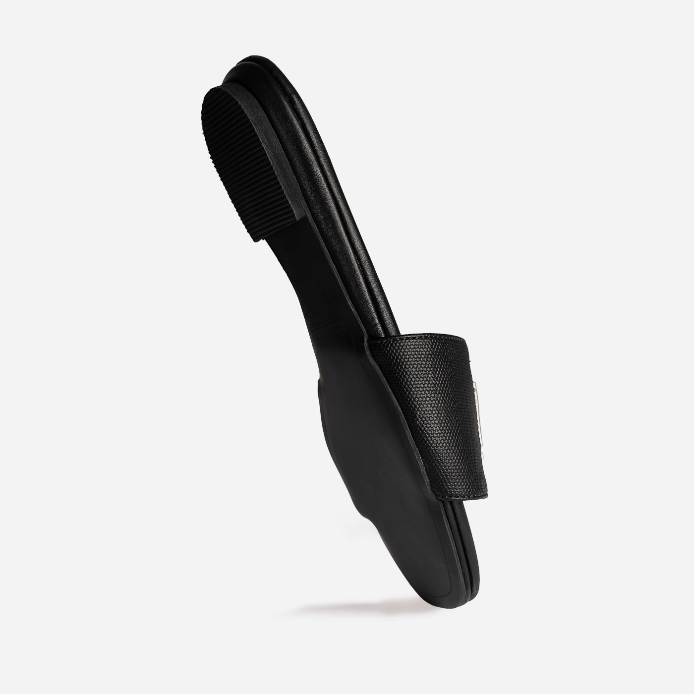 Bold, clean, and effortlessly statement-making these slides feature a sleek textured strap elevated with a striking metallic emblem, giving everyday comfort a premium upgrade. Designed for those who like casual wear with a touch of luxury.