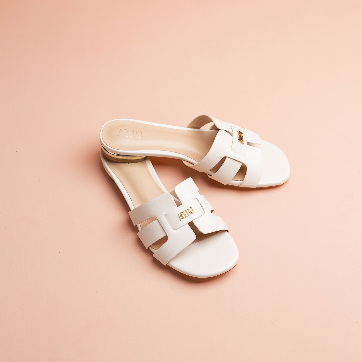 Slip into effortless elegance with these Chic Ease slides — a minimalist wardrobe essential featuring sleek cut-out straps and a polished gold-tone emblem for a refined finish. Perfect for days when comfort meets understated luxury.