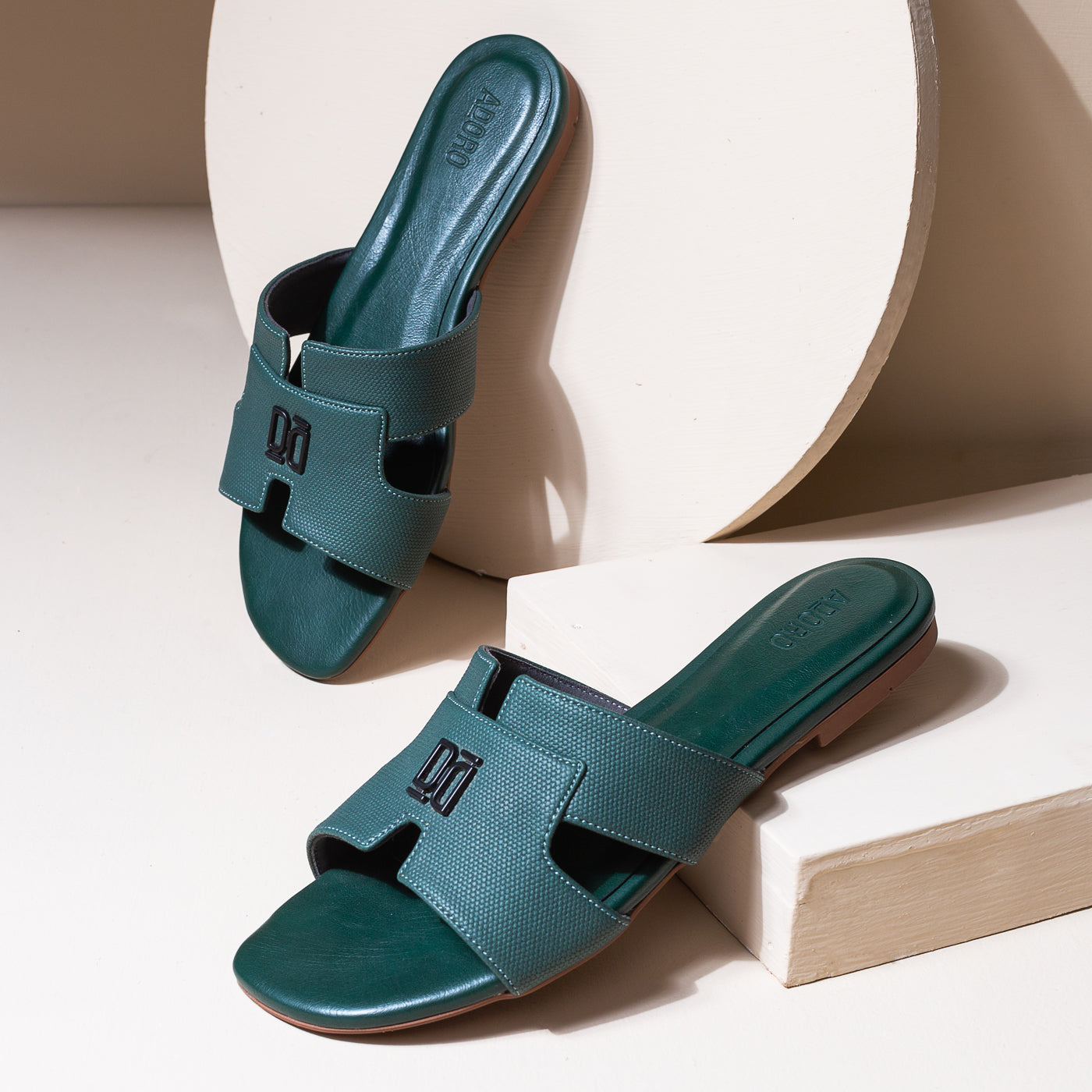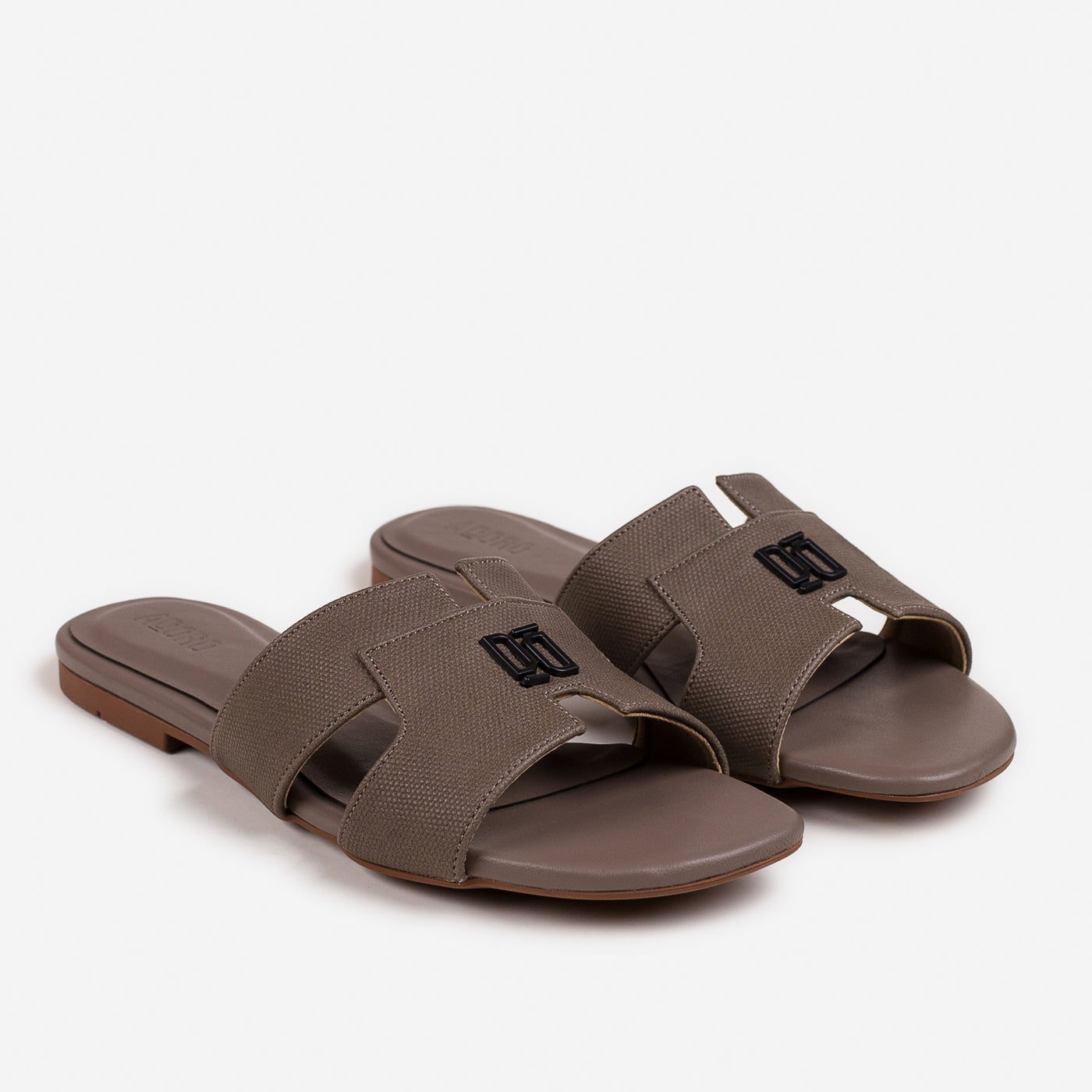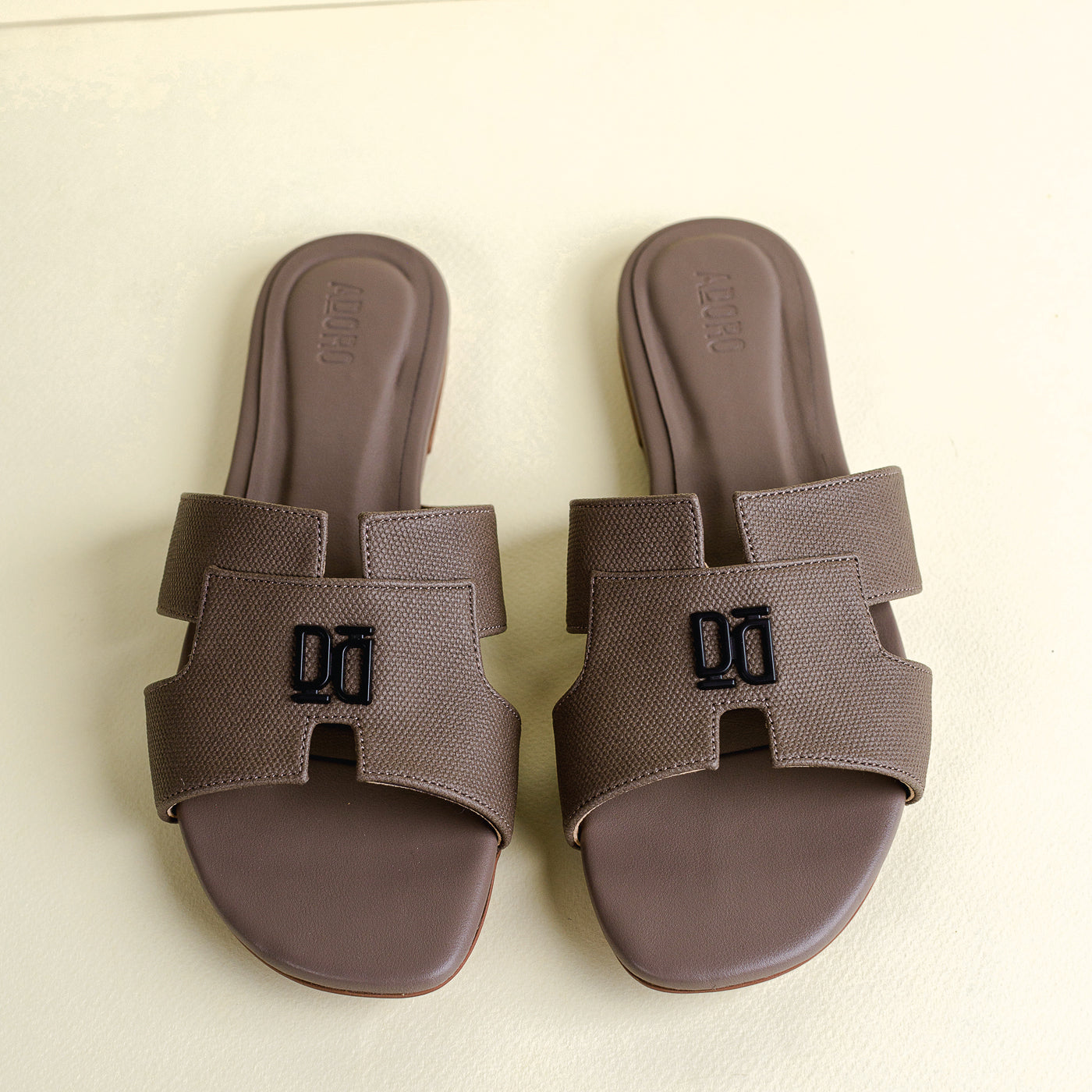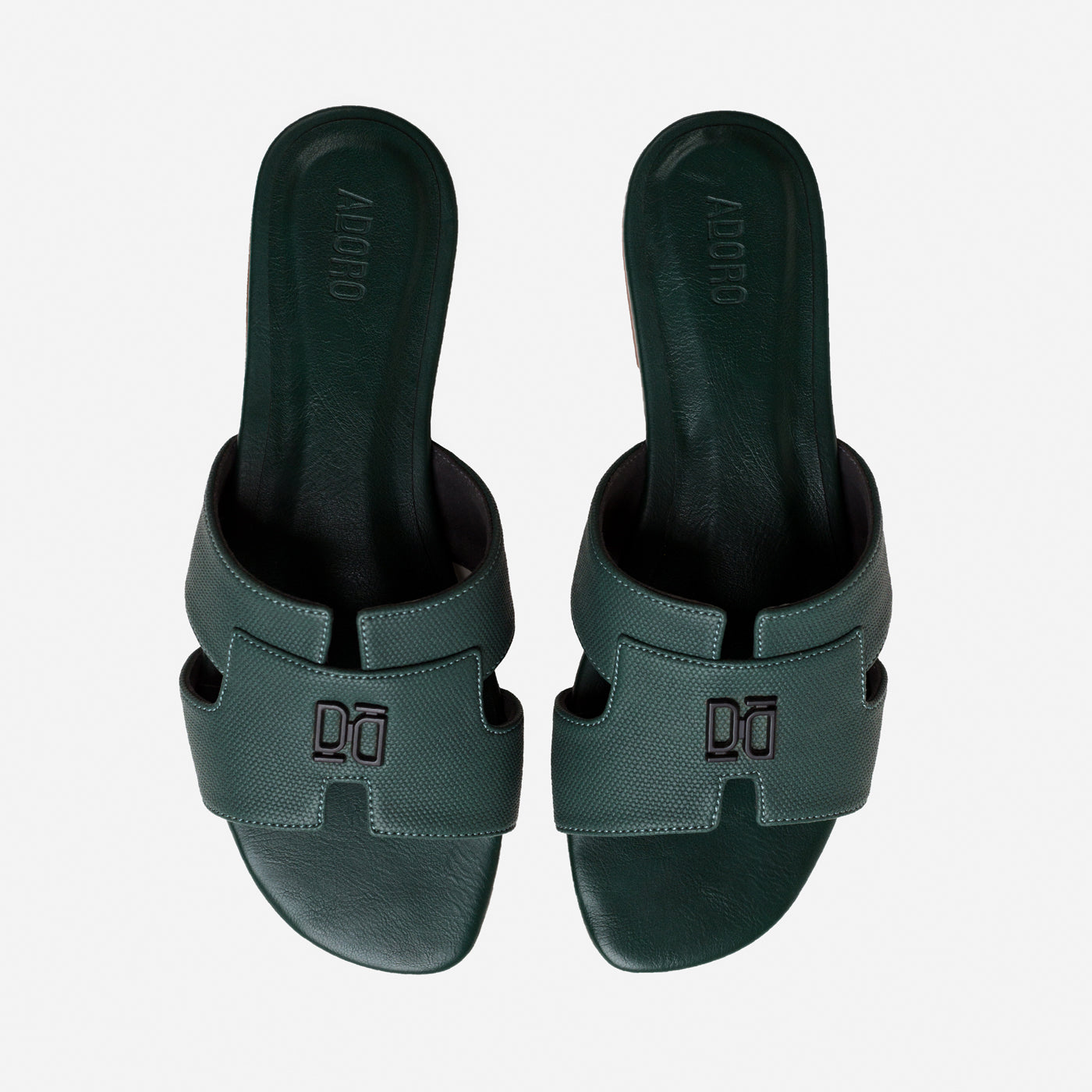 Designed with sculptural precision, the Adoro “Verve” slide blends strength and simplicity in one form. Its broad textured straps offer a grounded, confident profile while the understated monogram detail adds signature refinement. Crafted for all-day ease with a contoured footbed, this versatile pair complements tailored ensembles and relaxed edits alike—proof that minimalism can still make a statement.