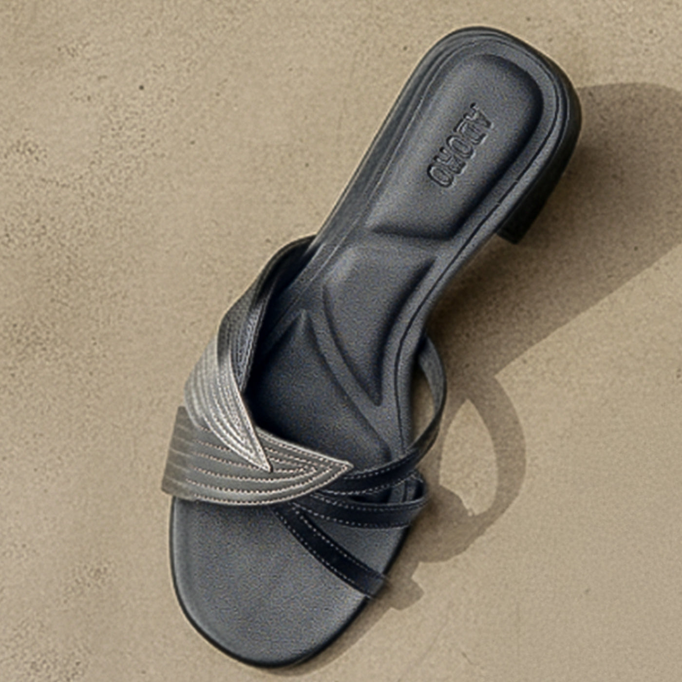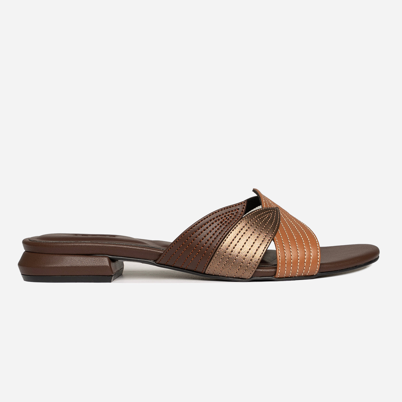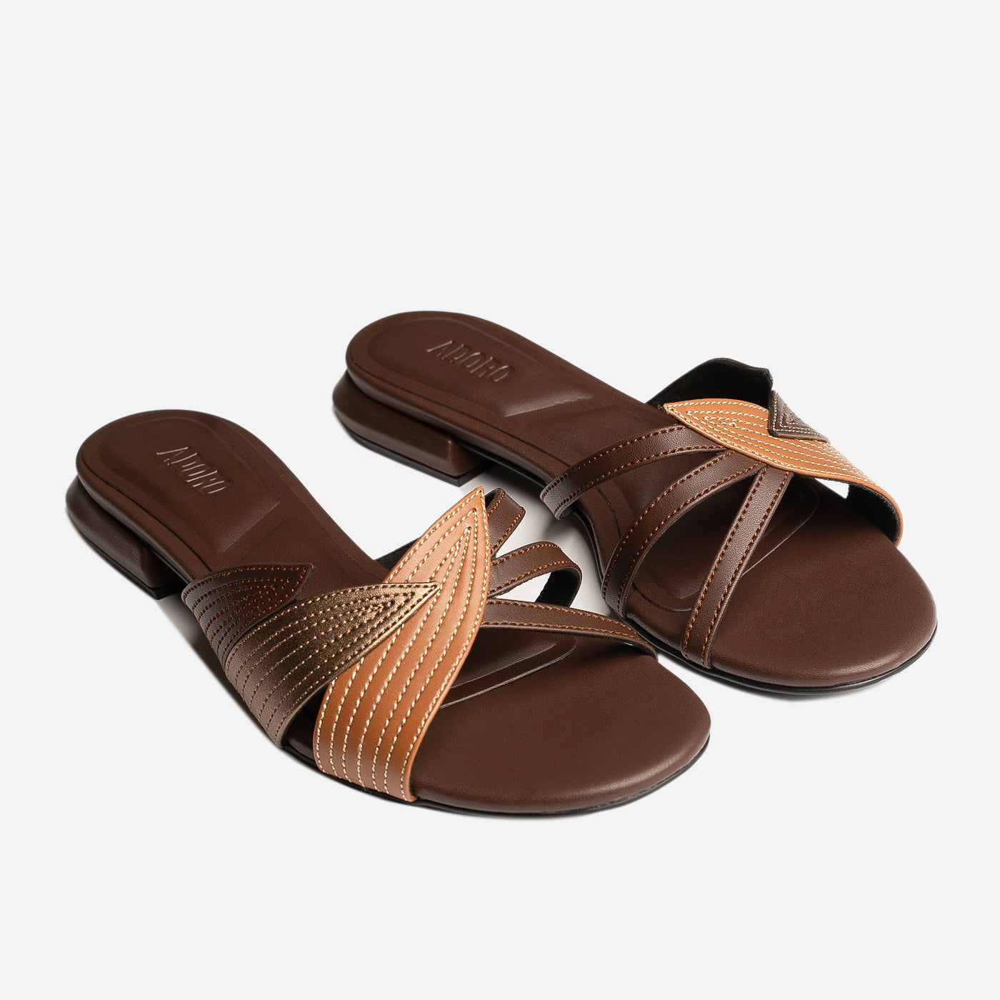 - Design: Layered straps with stitched detailing