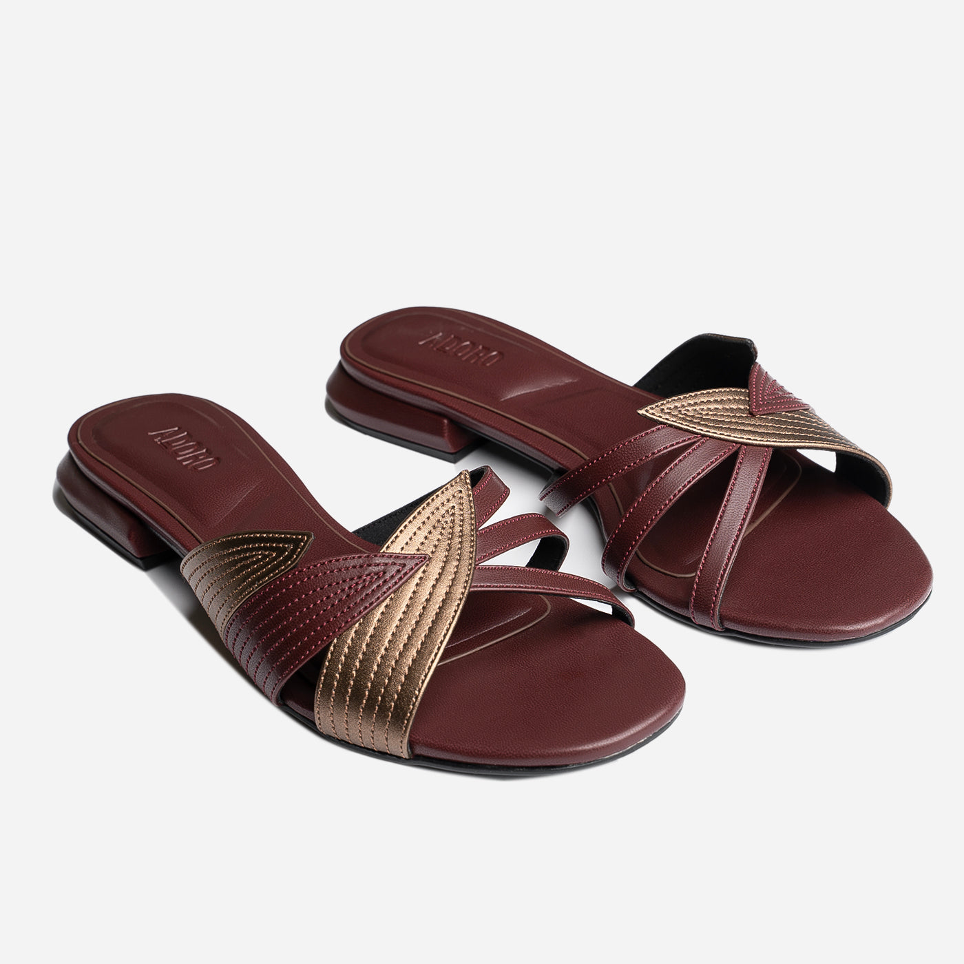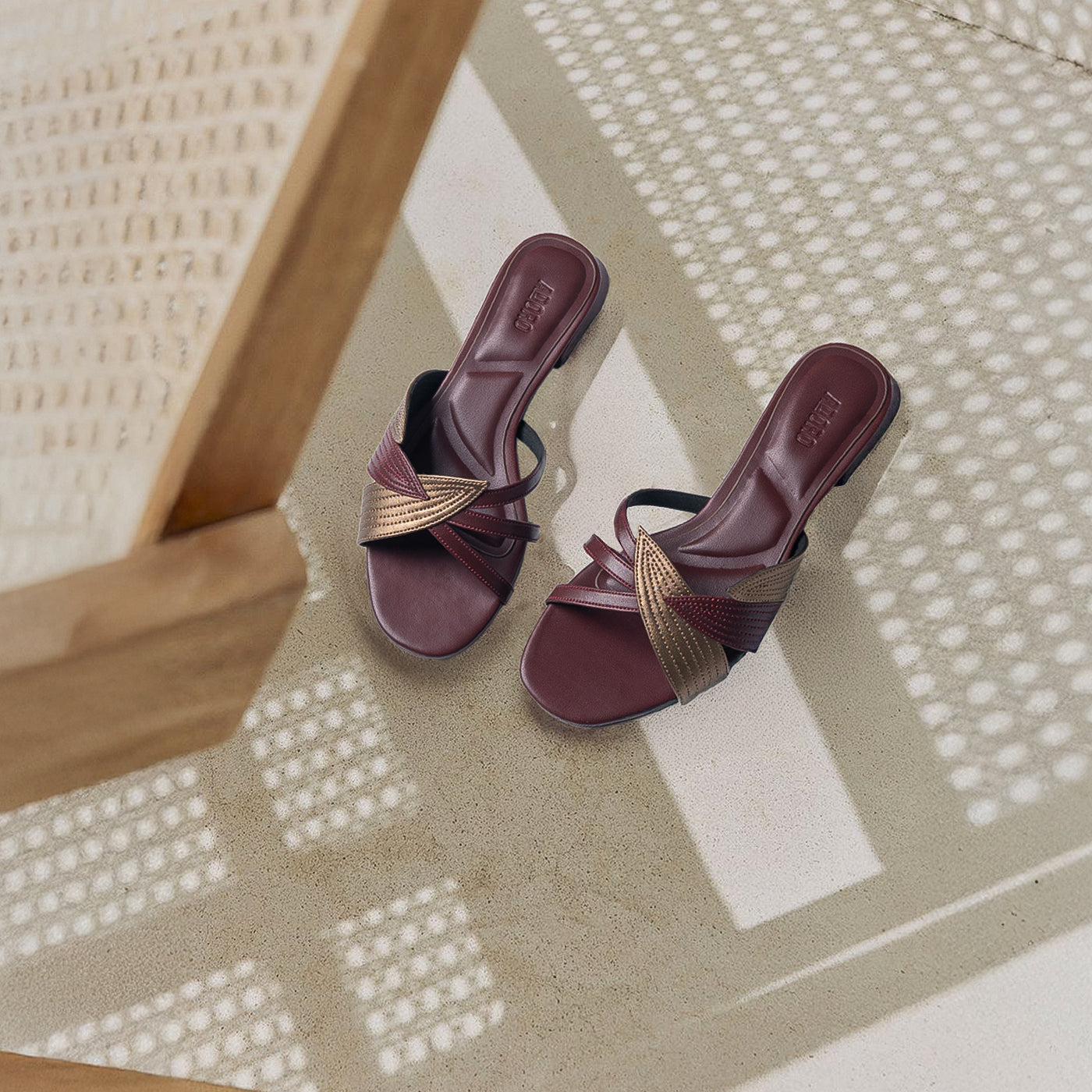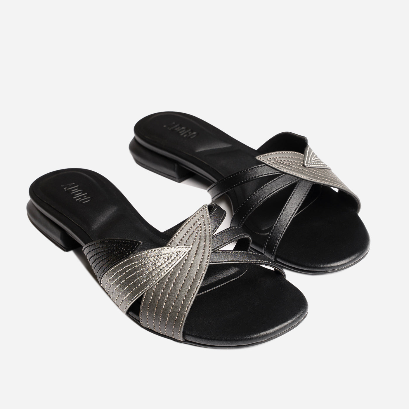 A stylish blend of tradition and modern flair these slip-ons feature elegant overlapping straps with intricate stitched accents, adding a refined touch to your everyday look. Lightweight and effortlessly chic, they bring comfort and charm to every step.
