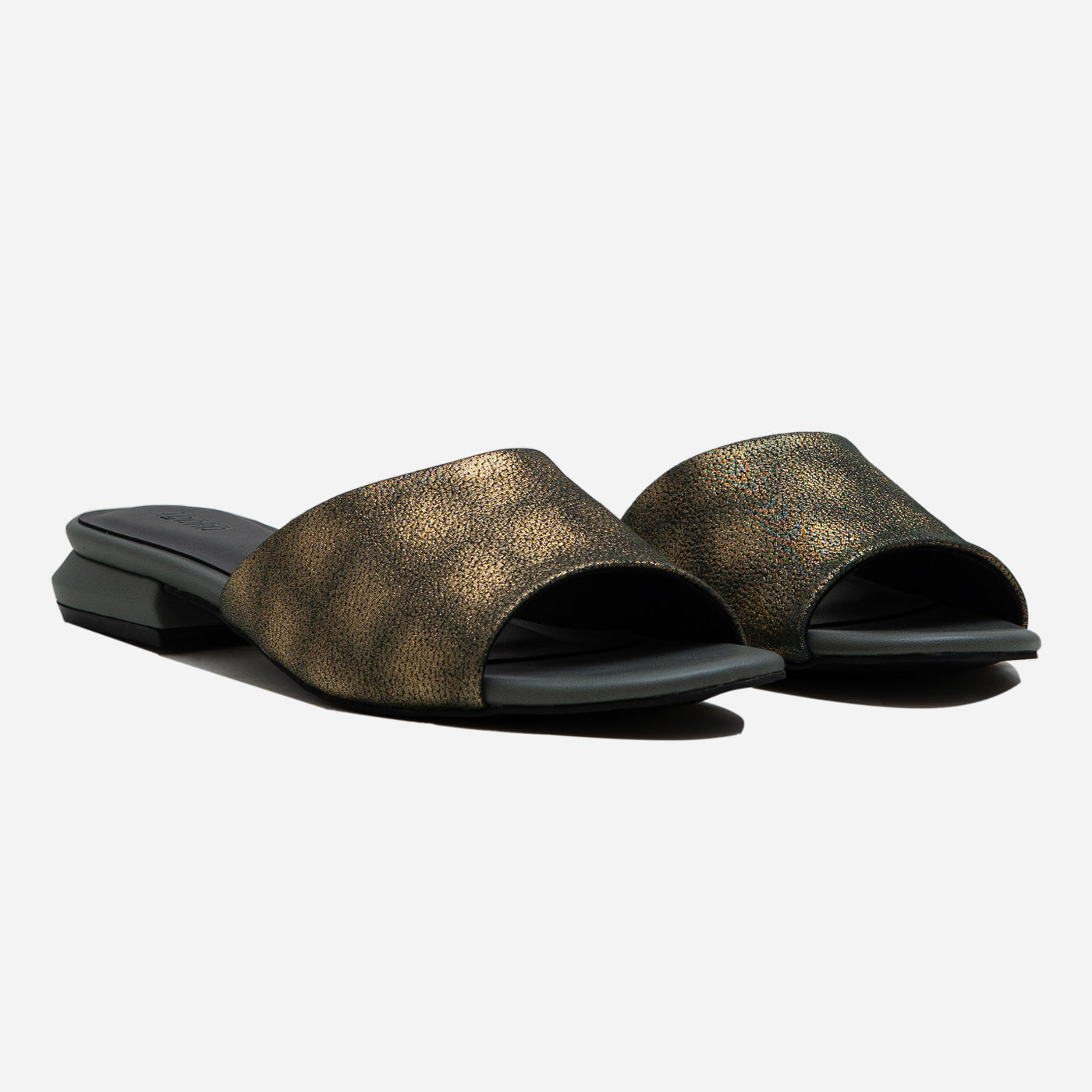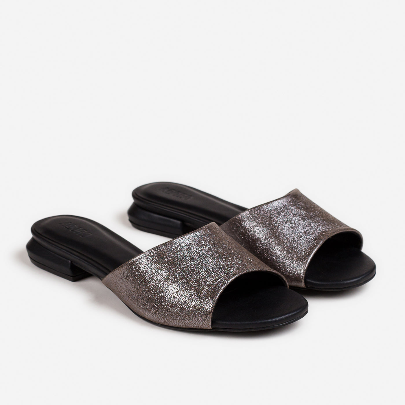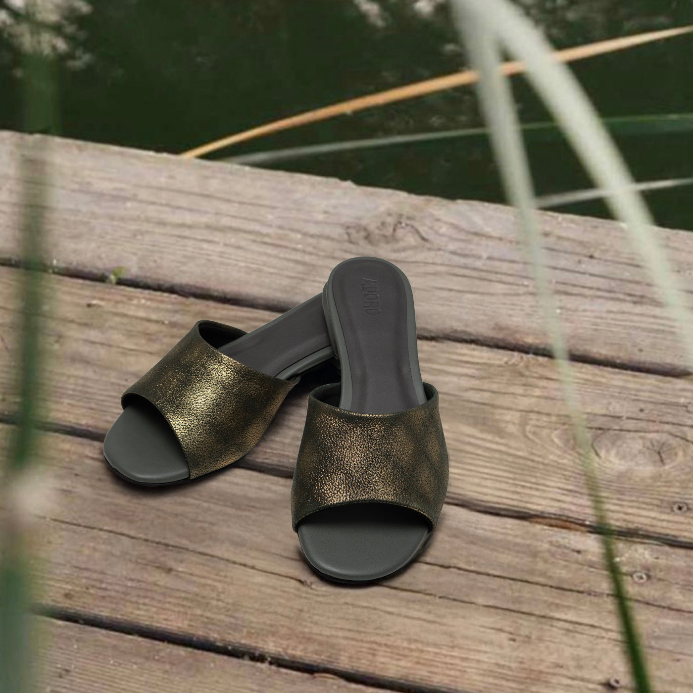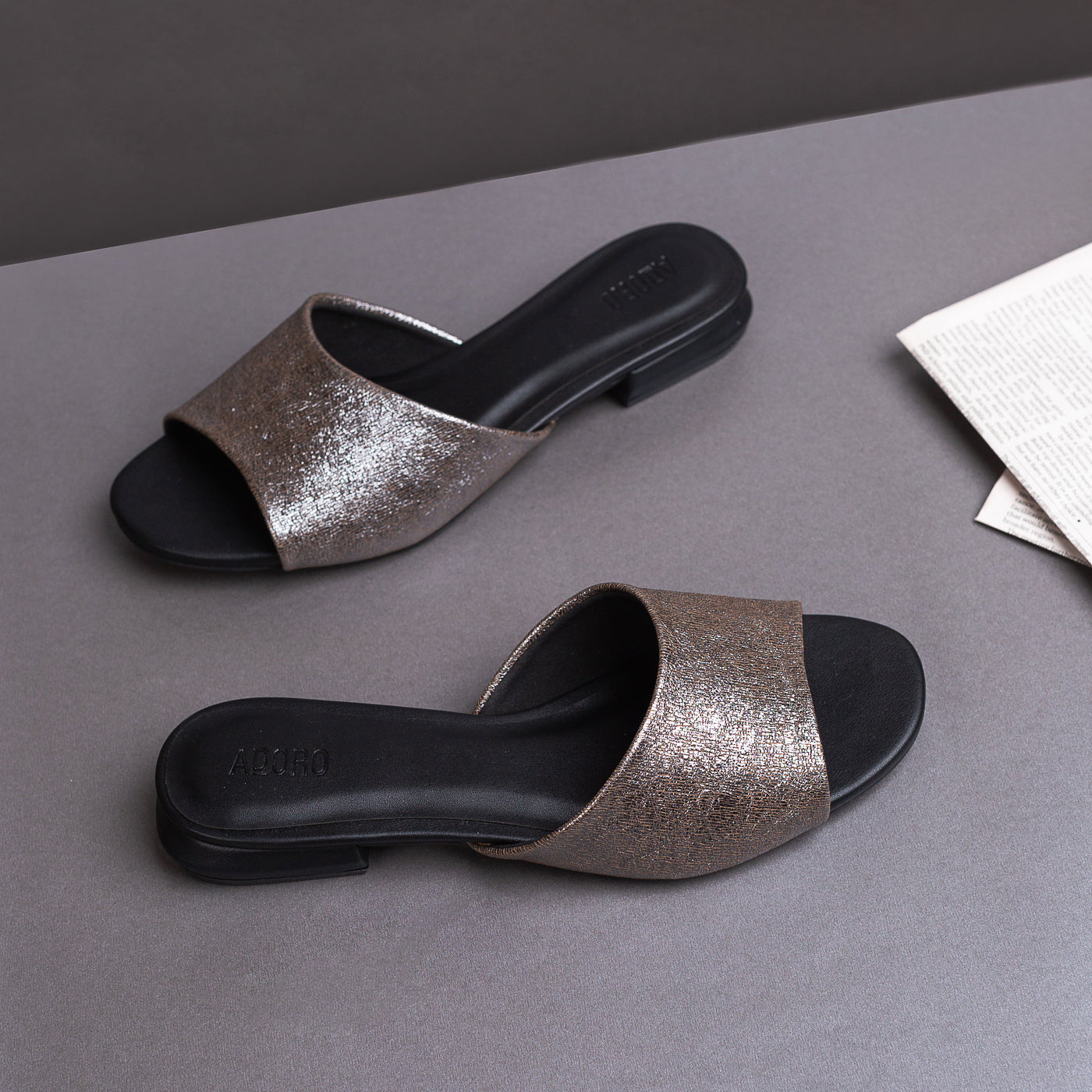 Shine with understated elegance in Adoro’s "Dusk Shimmer" Slides. A shimmering synthetic upper and open round toe give these flats a polished, versatile look. Set on a sleek geometric heel and finished with a padded insole, they offer a stylish yet comfortable fit. From brunch dates to evening strolls, these slides are designed to keep you glowing all day.