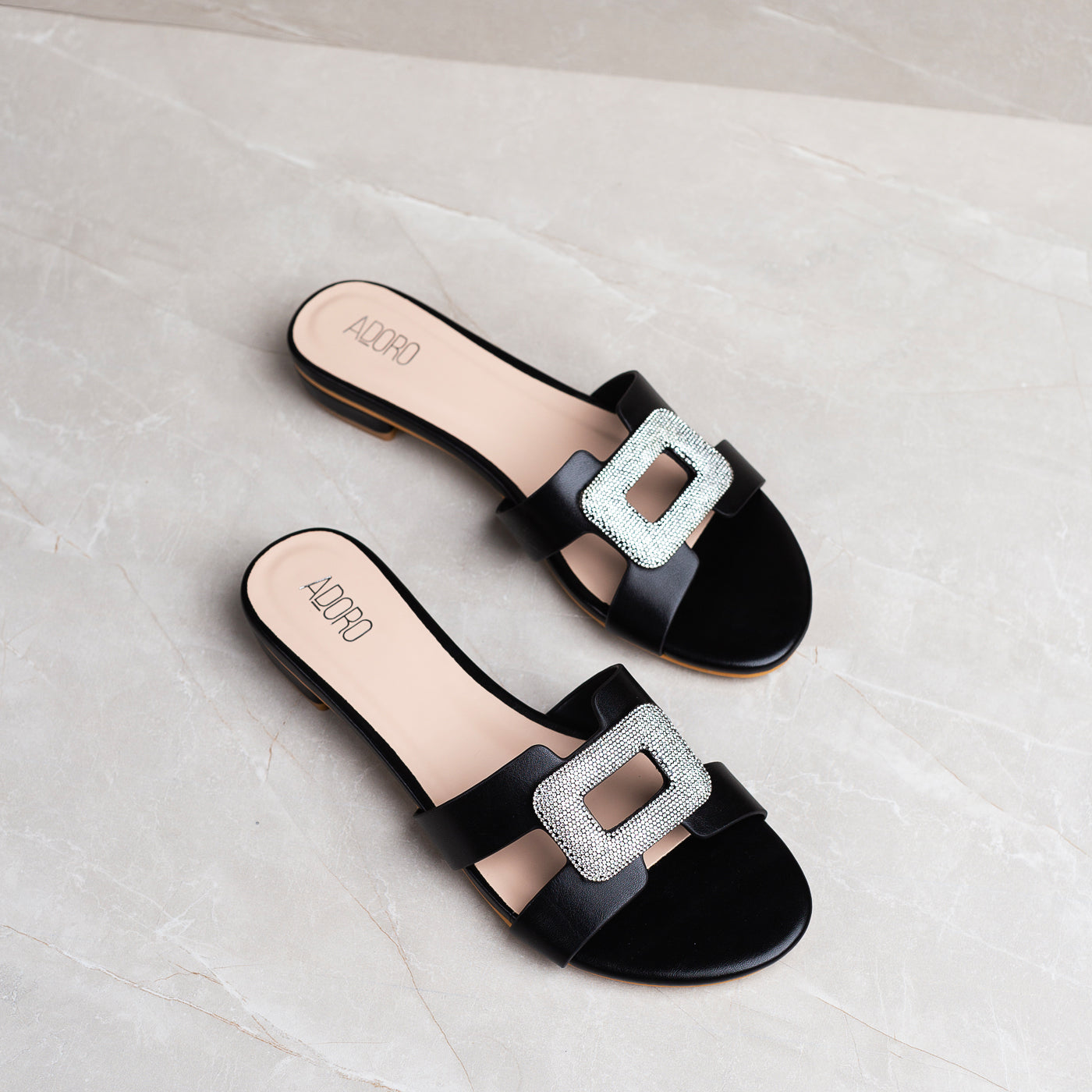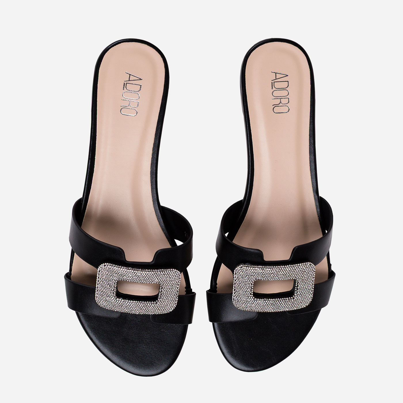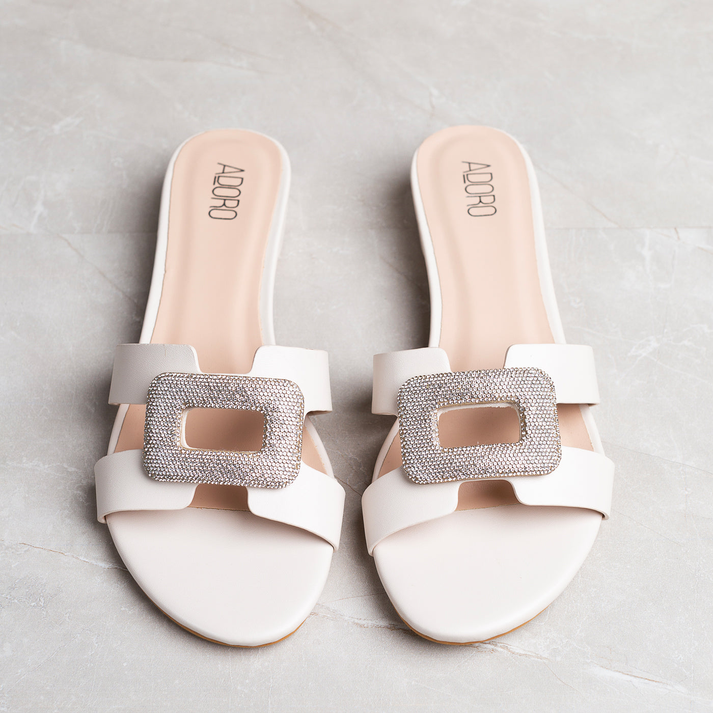Add a touch of sparkle to your everyday style with these Crystal Charm slides — designed to combine chic elegance with effortless wear. The dual-strap silhouette topped with shimmering square buckles brings instant glamour to casual and semi-dressy looks.