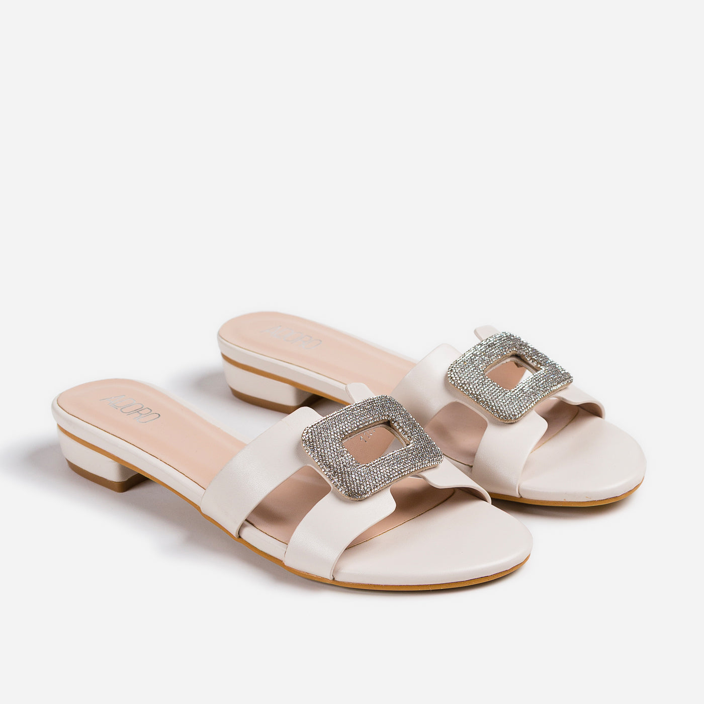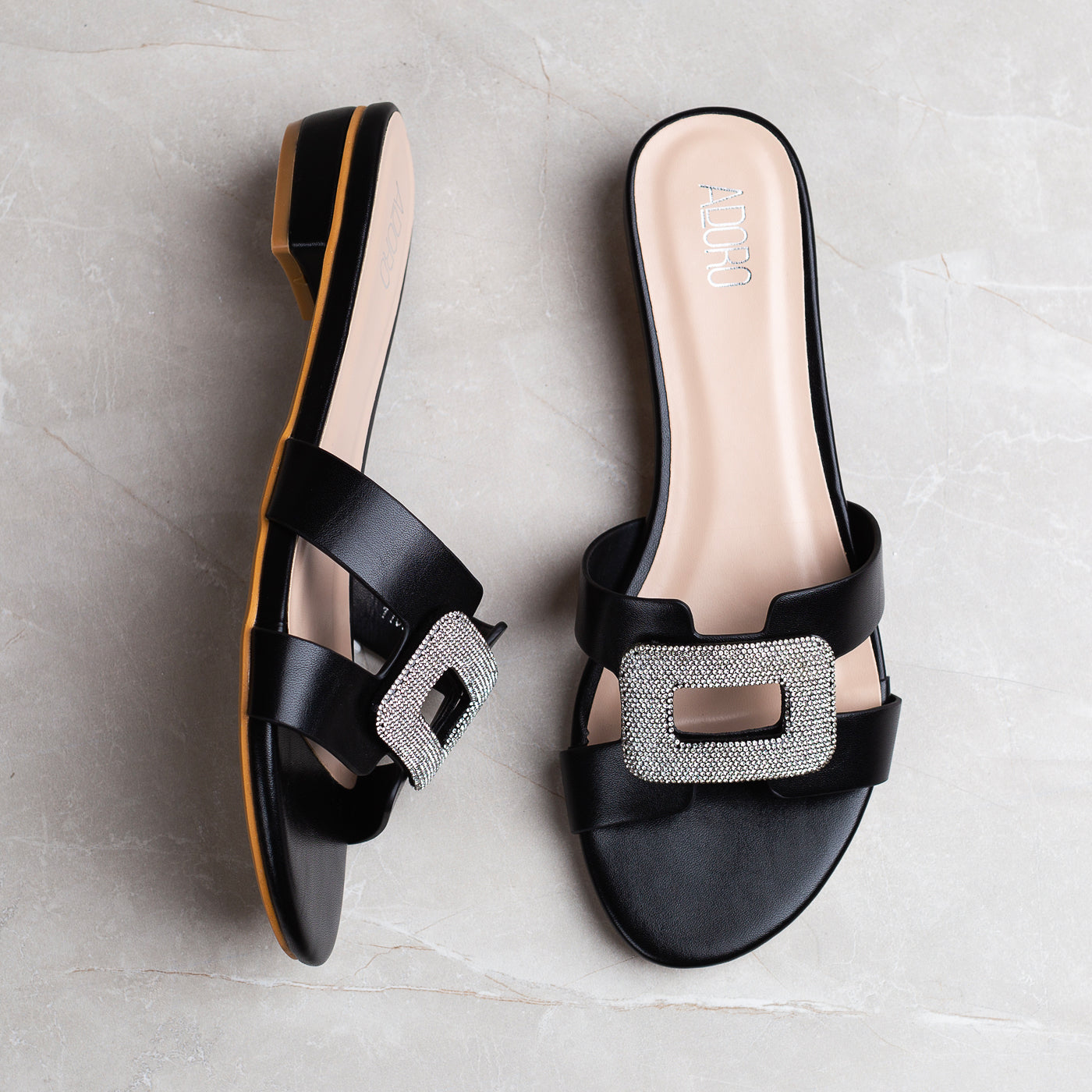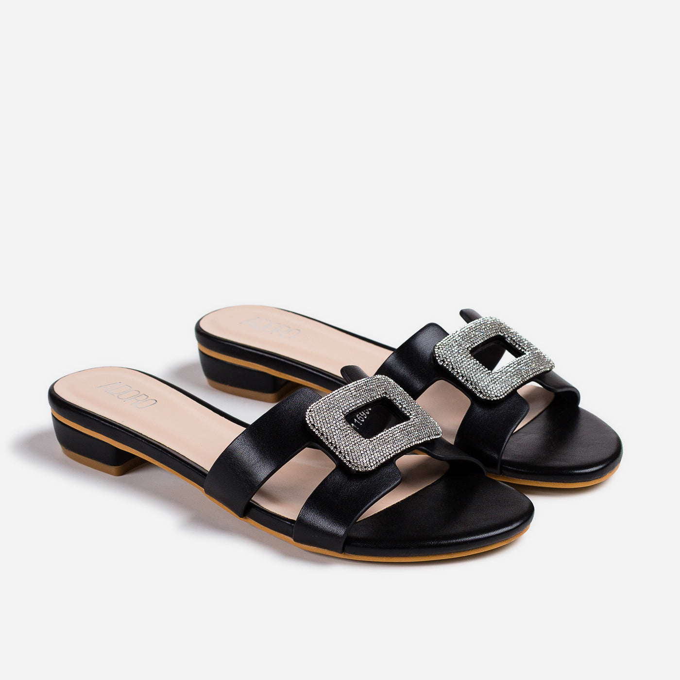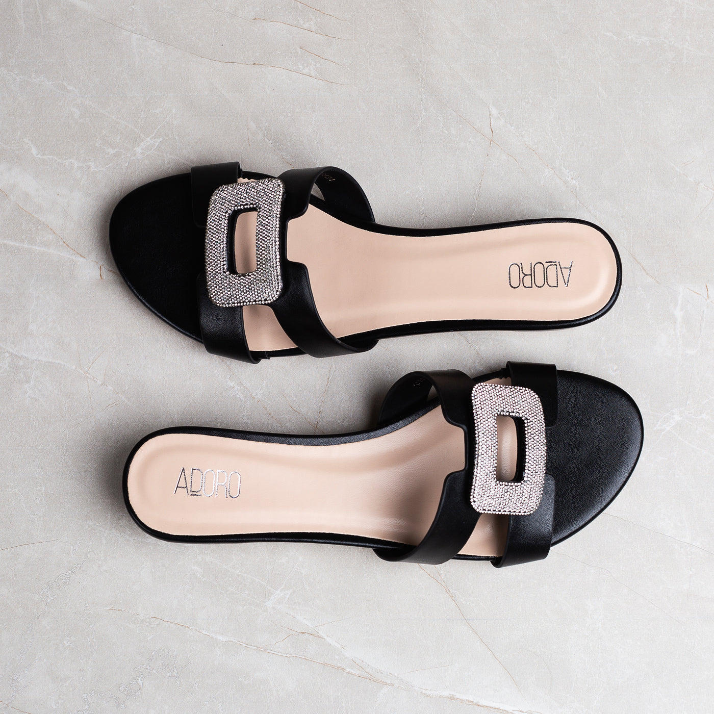 Add a touch of sparkle to your everyday style with these Crystal Charm slides — designed to combine chic elegance with effortless wear. The dual-strap silhouette topped with shimmering square buckles brings instant glamour to casual and semi-dressy looks.