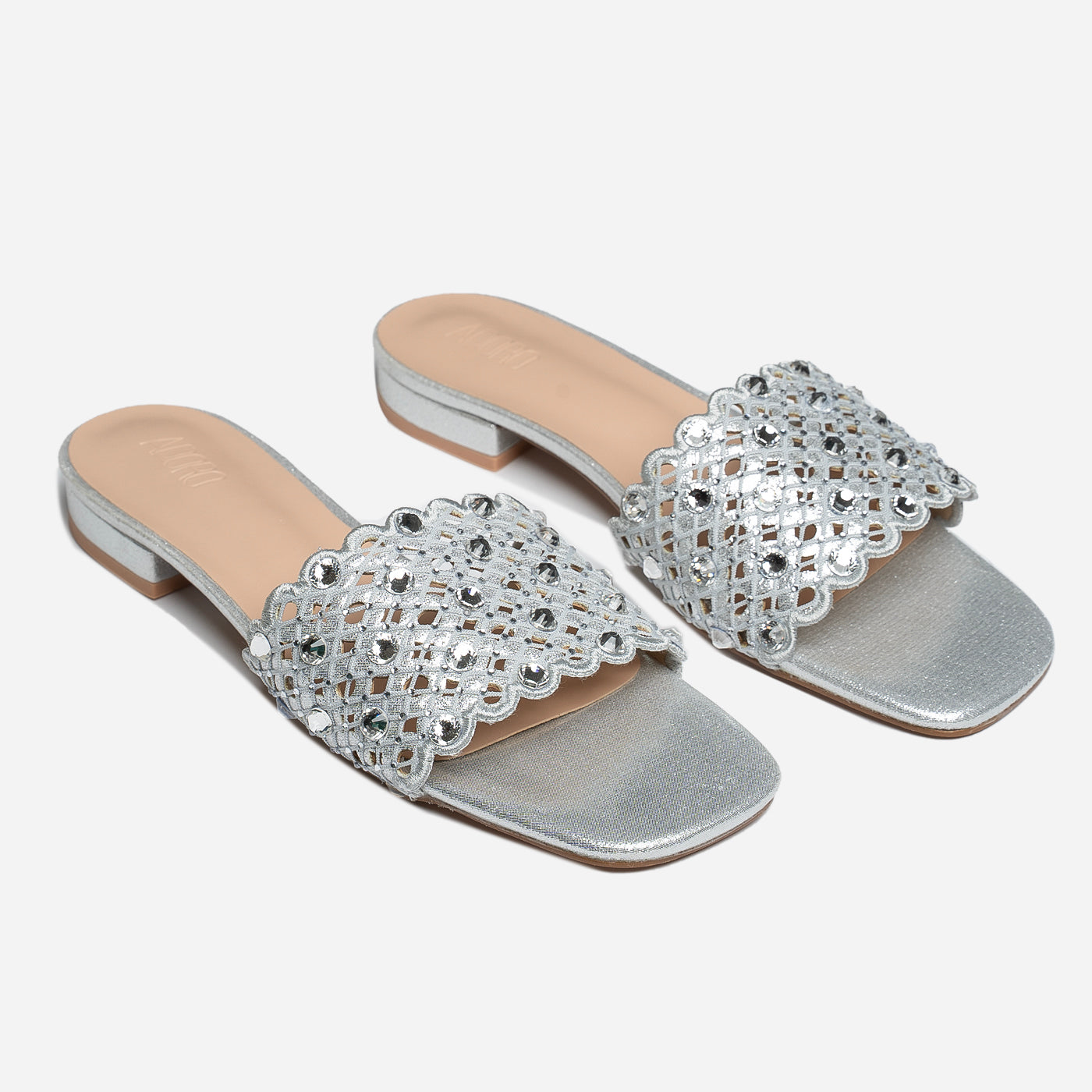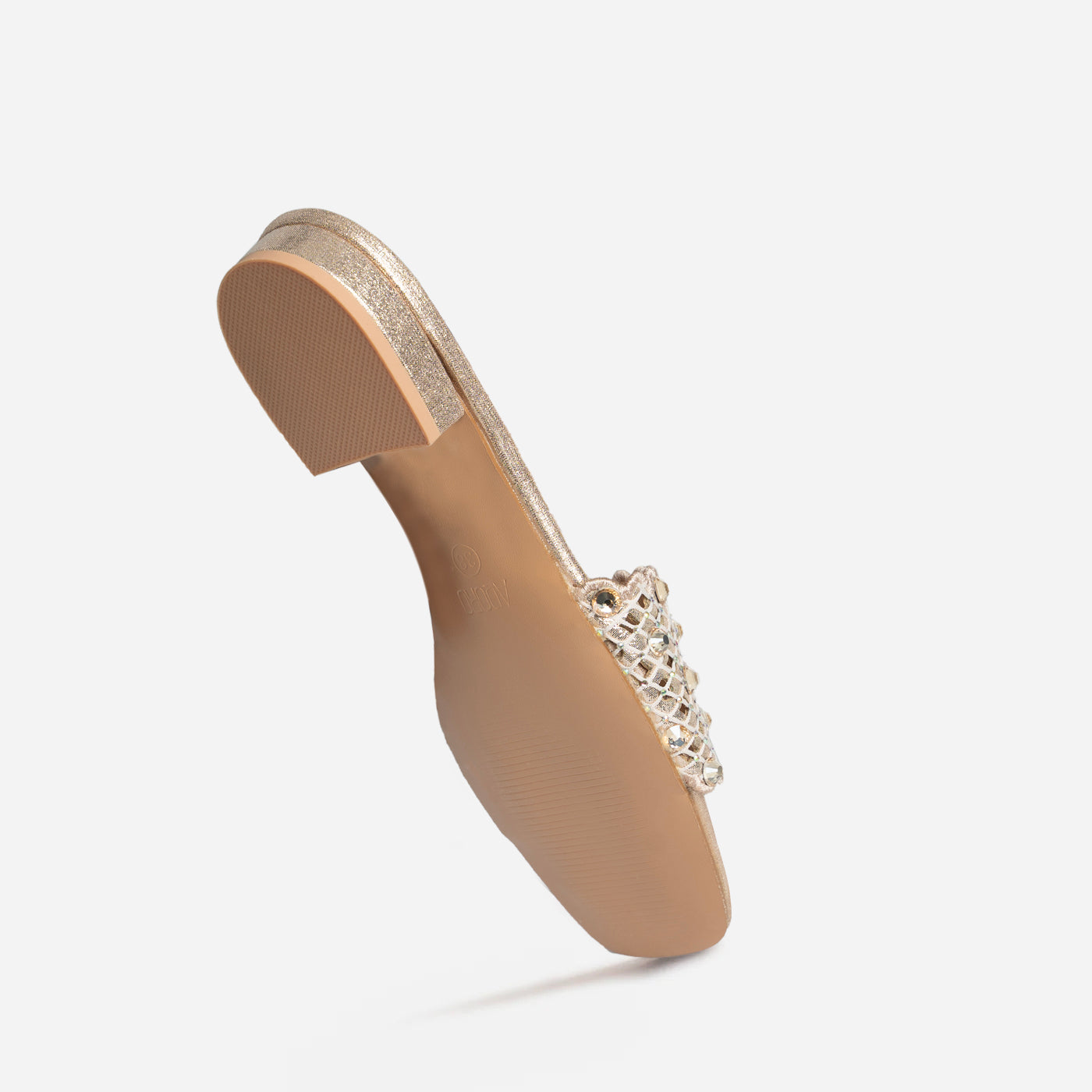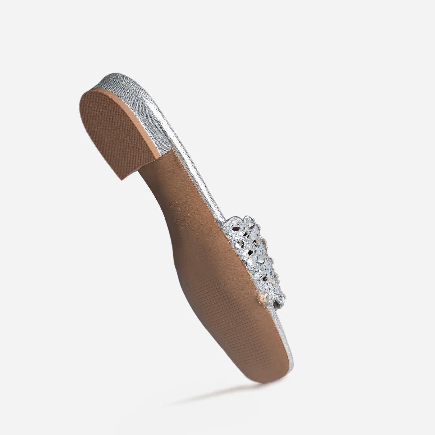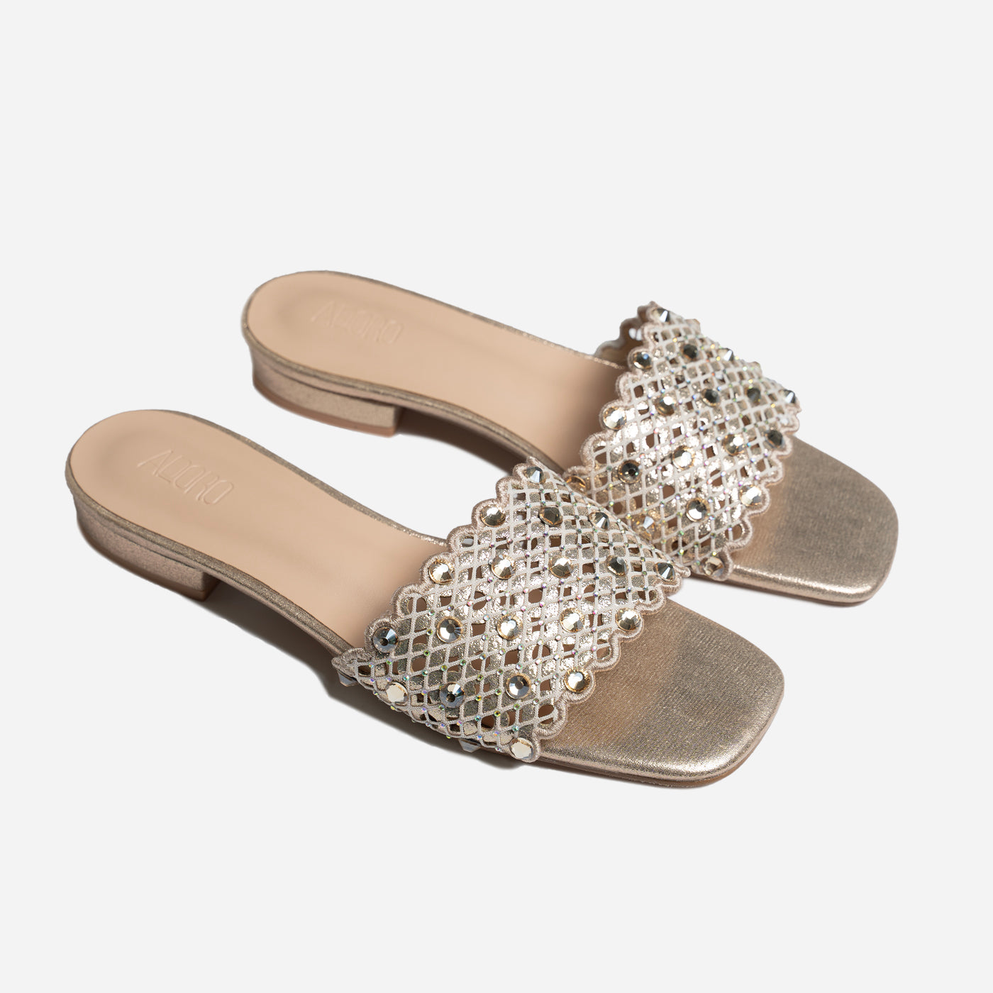 Add a touch of sparkle to your step with these Embellished Slip-On Slides, designed to blend elegance and ease. The intricate embellished upper brings a luxurious charm, making them perfect for special occasions while offering day-long comfort.