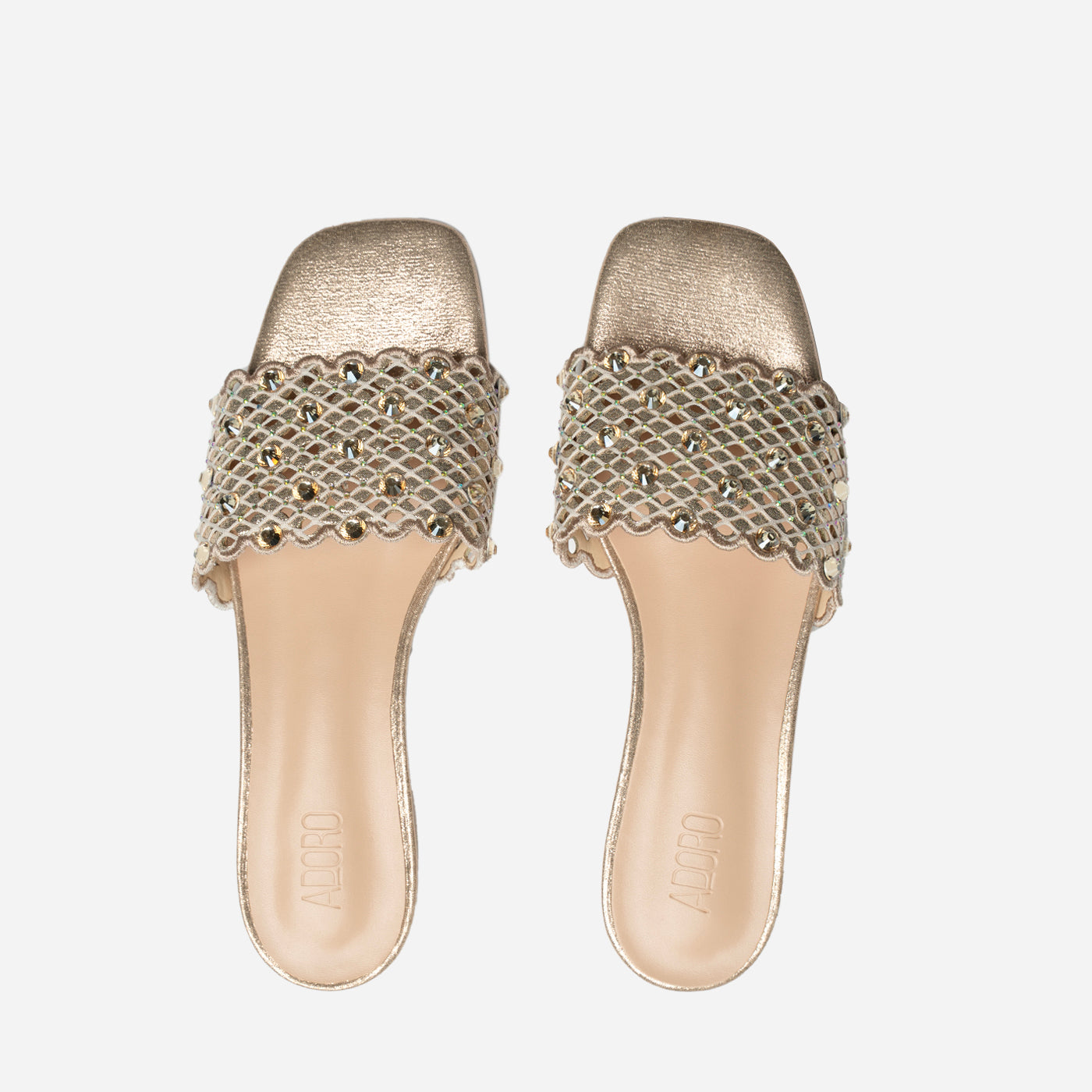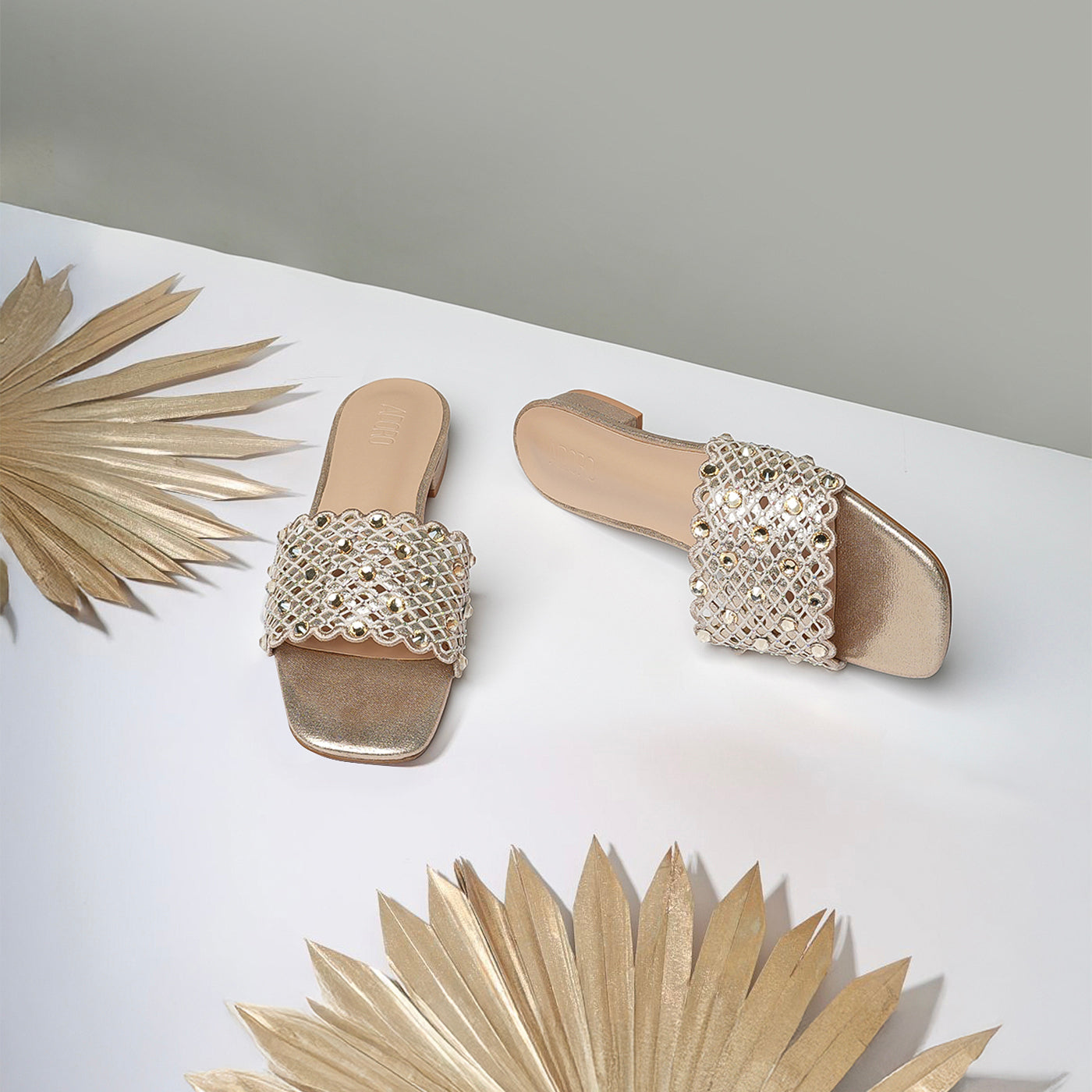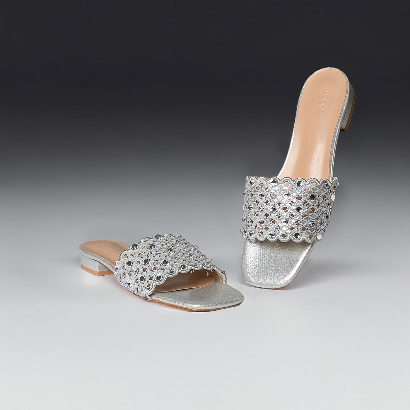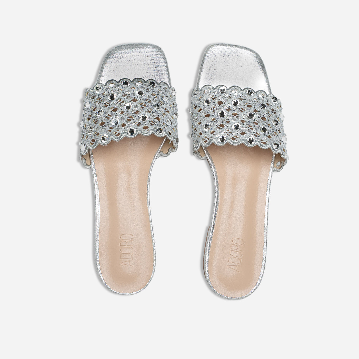 Add a touch of sparkle to your step with these Embellished Slip-On Slides, designed to blend elegance and ease. The intricate embellished upper brings a luxurious charm, making them perfect for special occasions while offering day-long comfort.