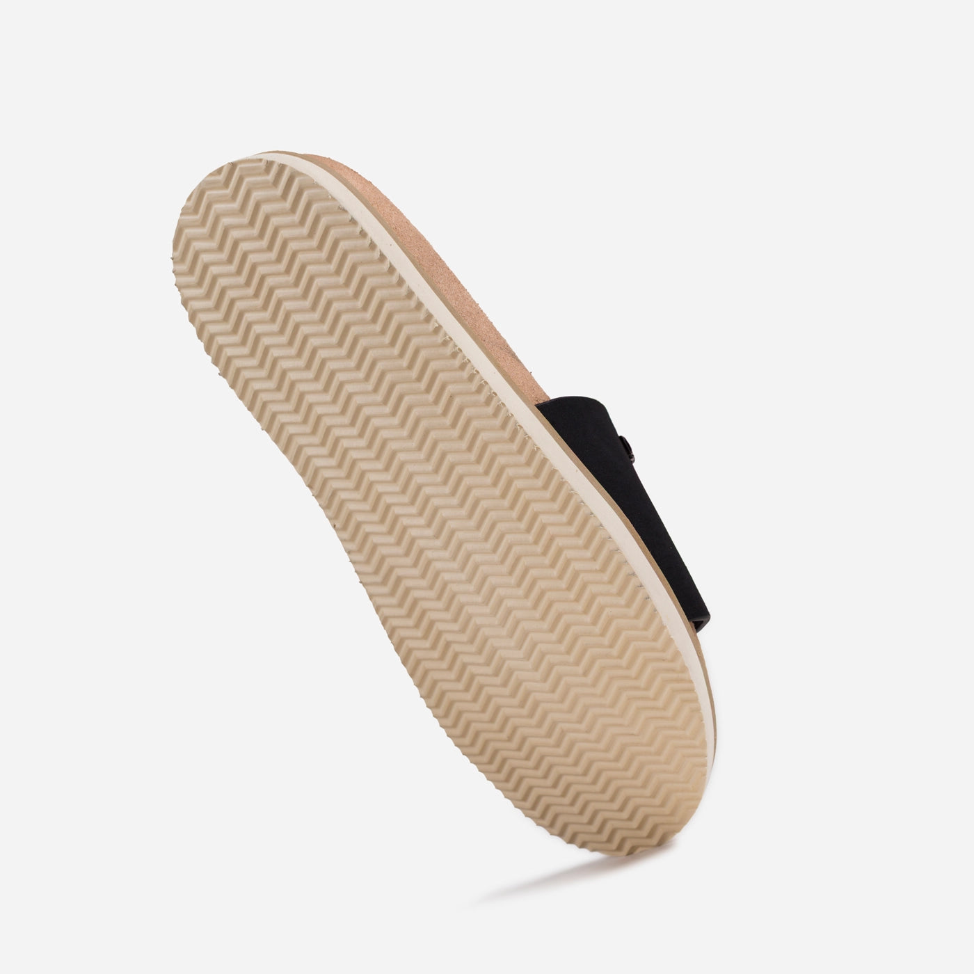 Understated elegance defines these premium single strap slide sandals. Featuring a wide faux suede upper in sophisticated Colors, they offer effortless slip on convenience with refined minimalist appeal. The cushioned tan footbed provides superior comfort, while the contrast stitching and lightweight sole create a polished finish for this versatile everyday essential.