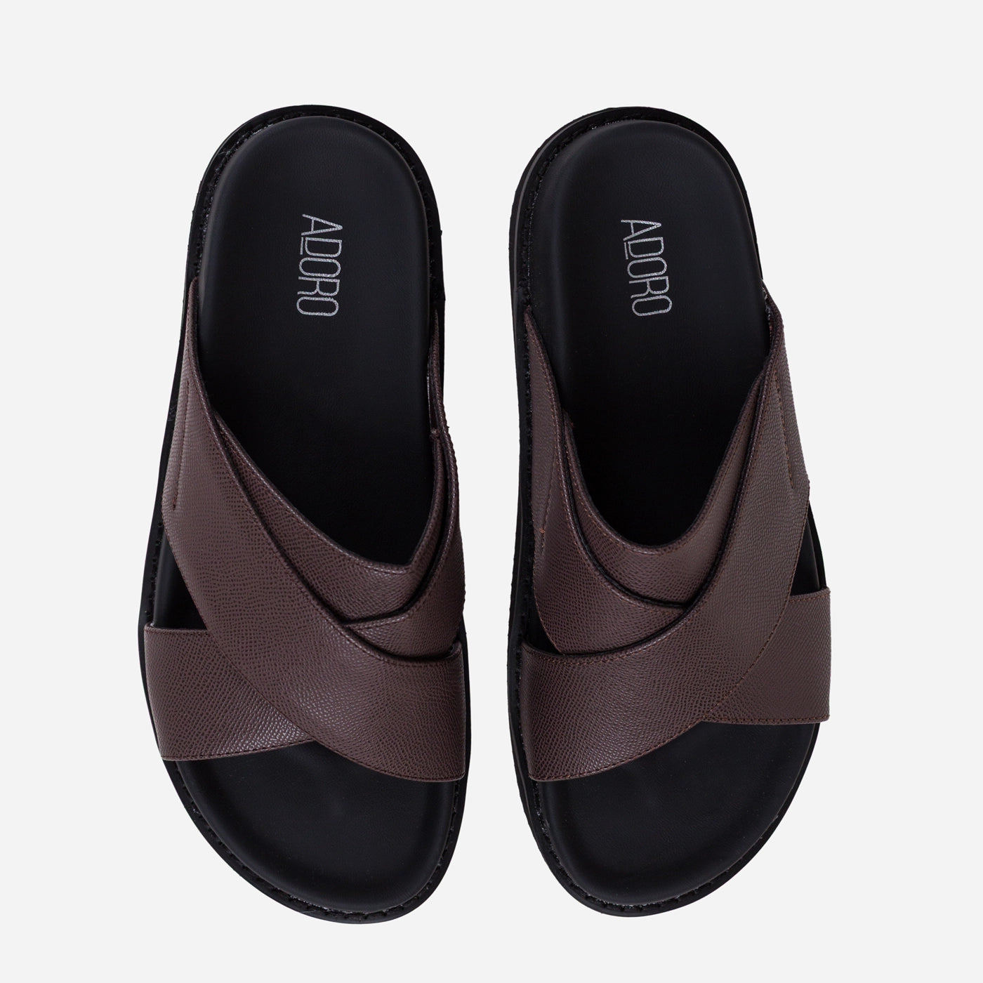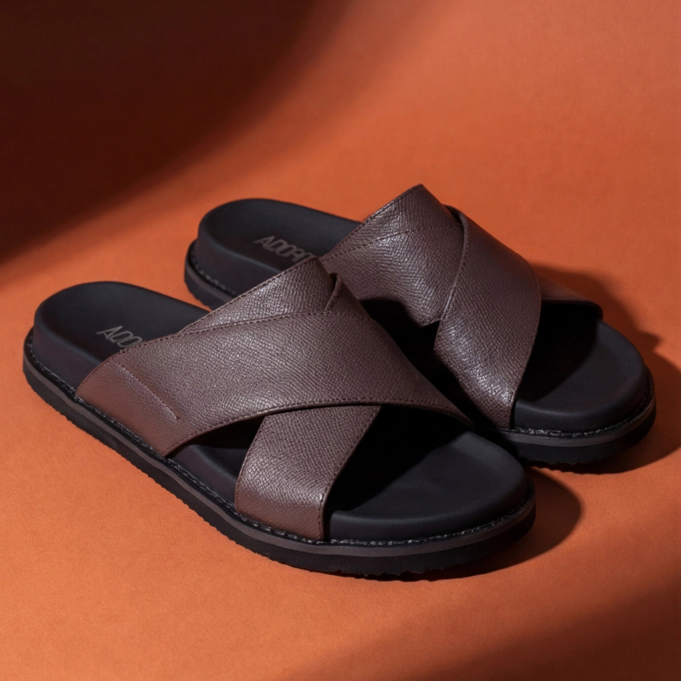 Clean, minimal, and easy to wear, these everyday sandals are designed for all day comfort with a refined look. Featuring broad Criss cross straps in textured faux leather, they offer a secure fit while keeping the design sleek and modern. The cushioned footbed and flat sole make them perfect for relaxed daily wear without compromising on style.