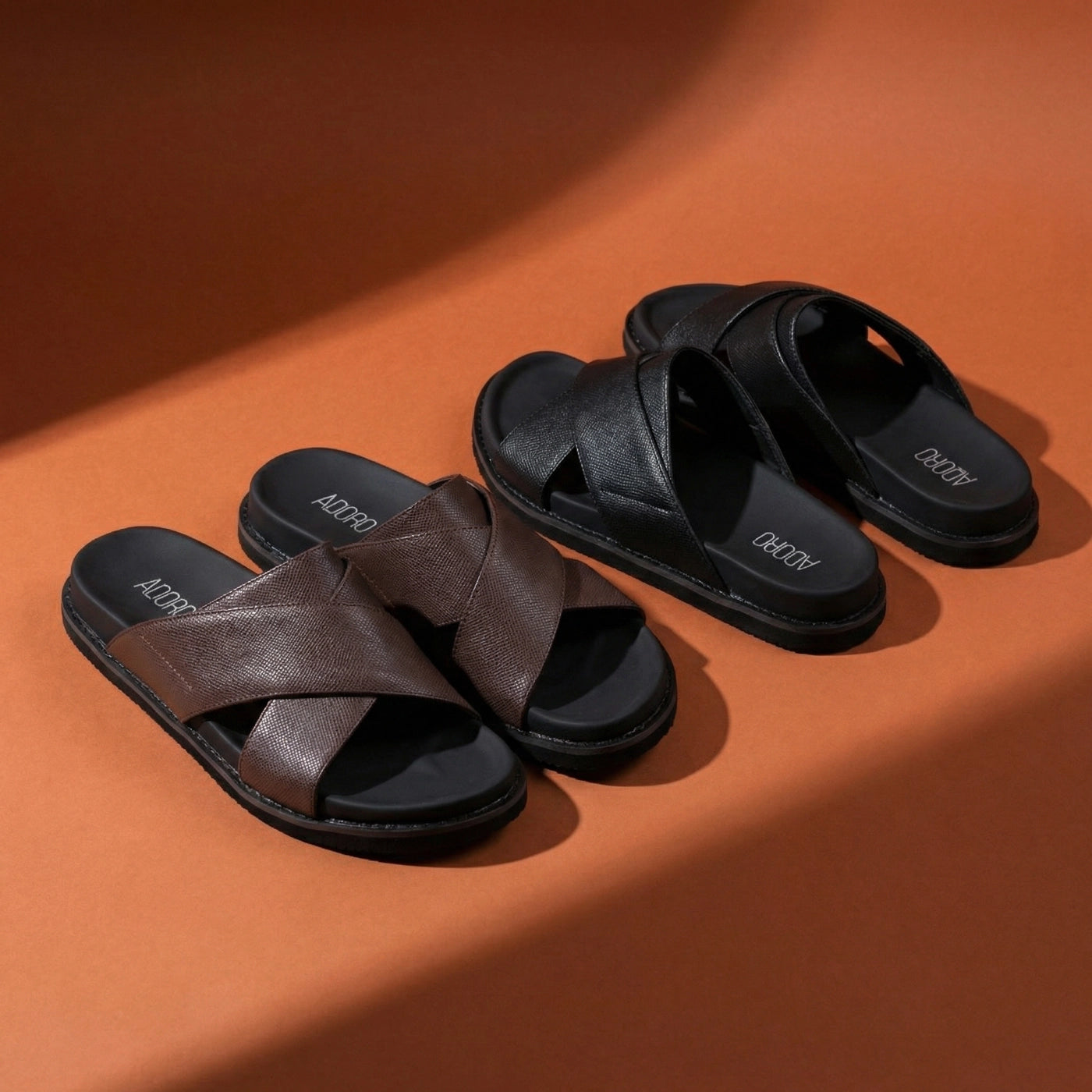 This versatile slide collection features two classic shades warm taupe and deep black. Each pair showcases wide crossover straps with subtle texture and cushioned footbeds for superior comfort. The minimalist aesthetic with clean lines maintains refined simplicity. Perfect for building a foundational summer wardrobe with comfortable, stylish footwear that transitions effortlessly between casual settings and relaxed occasions.